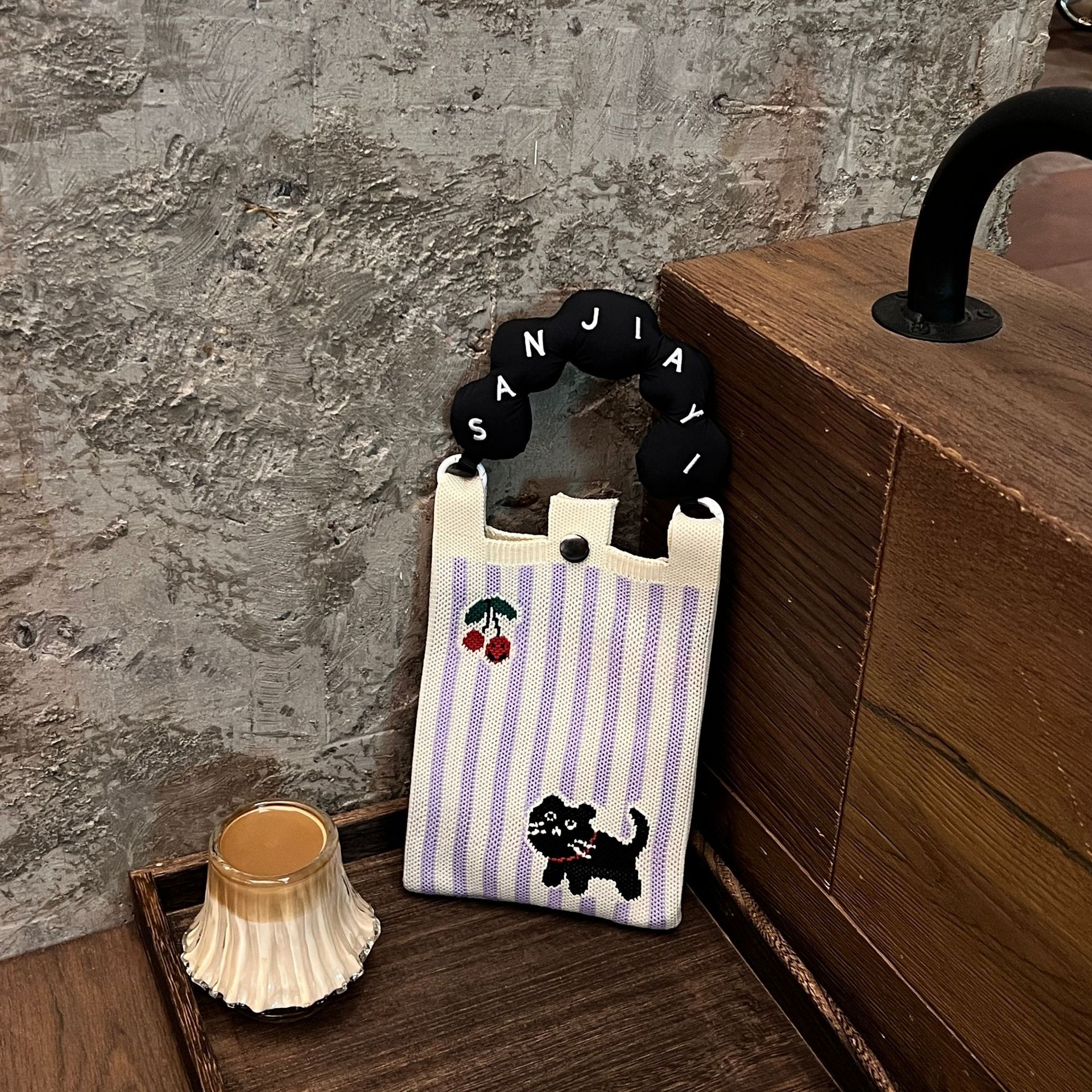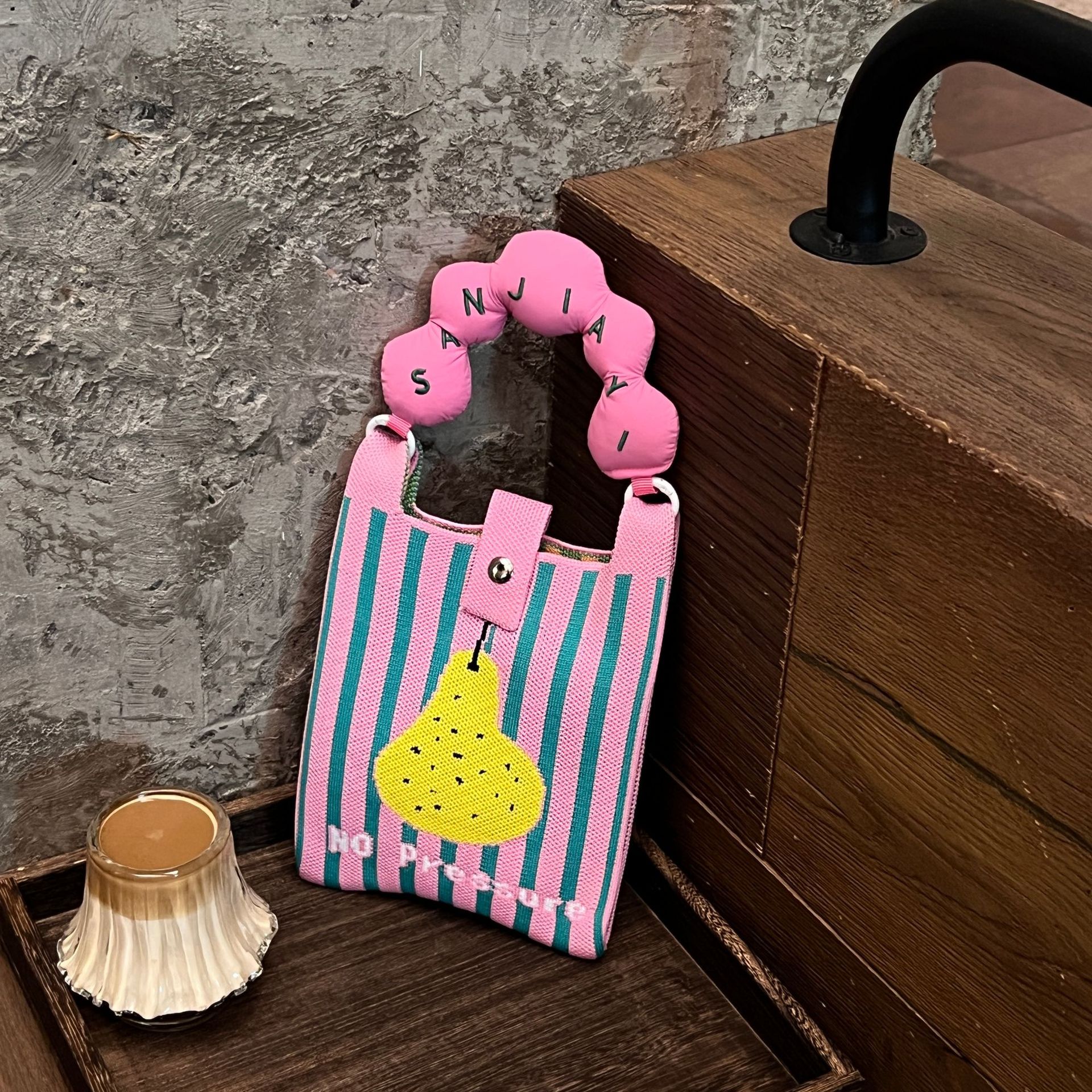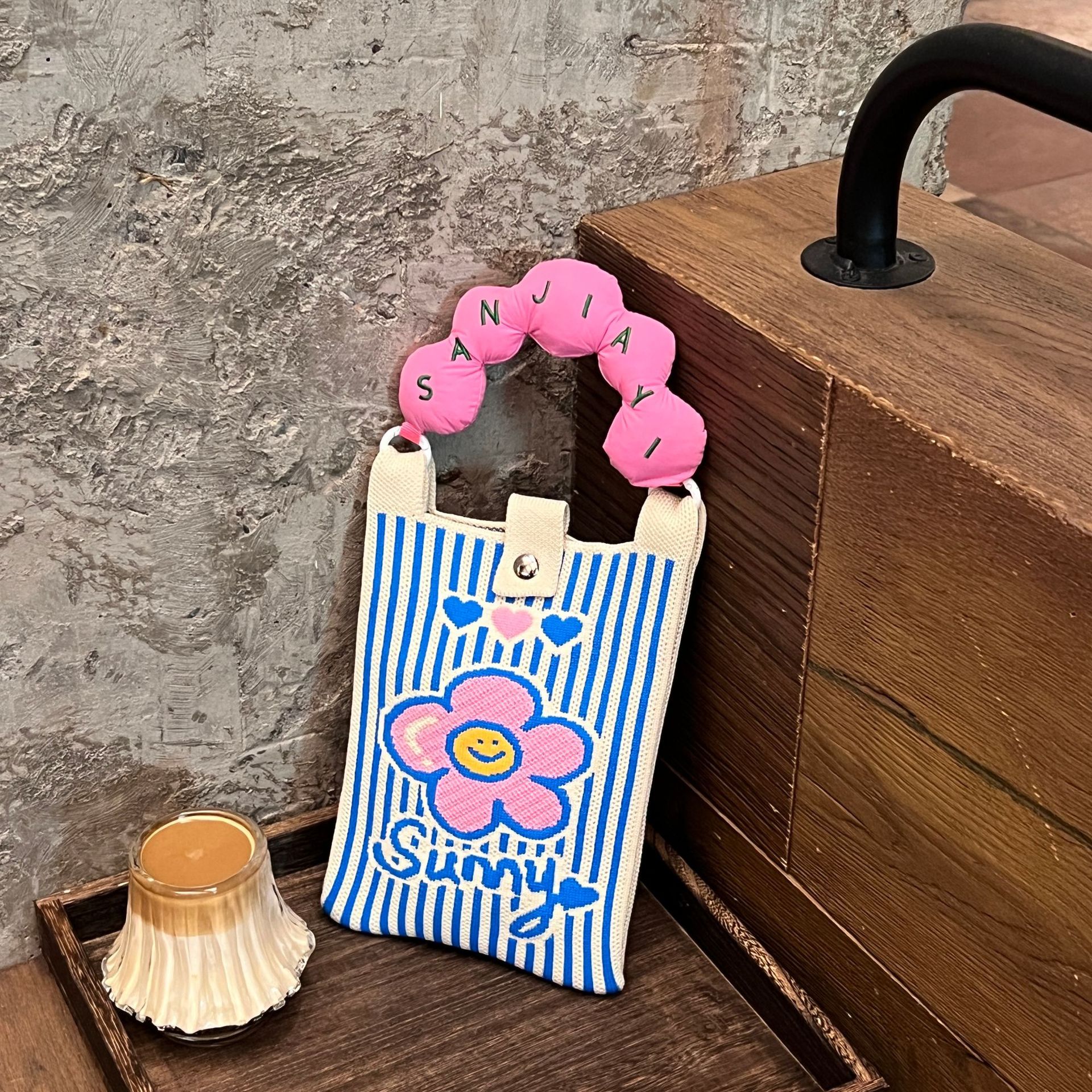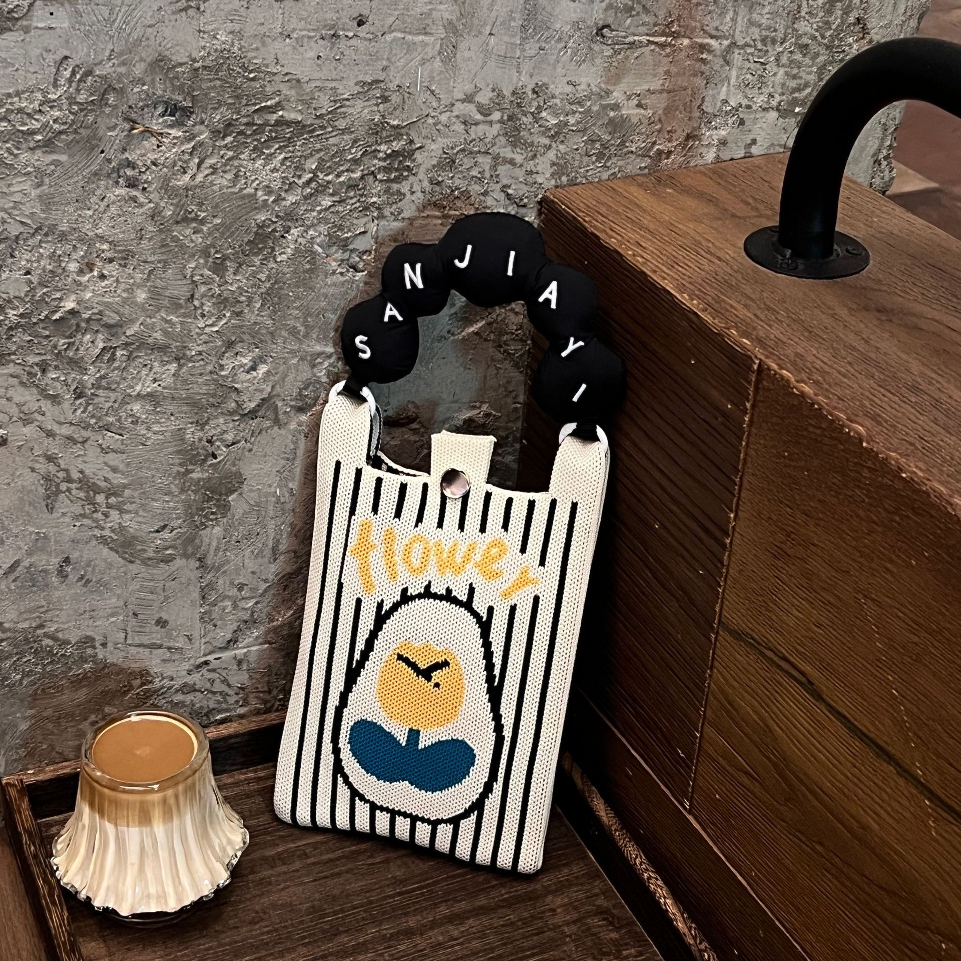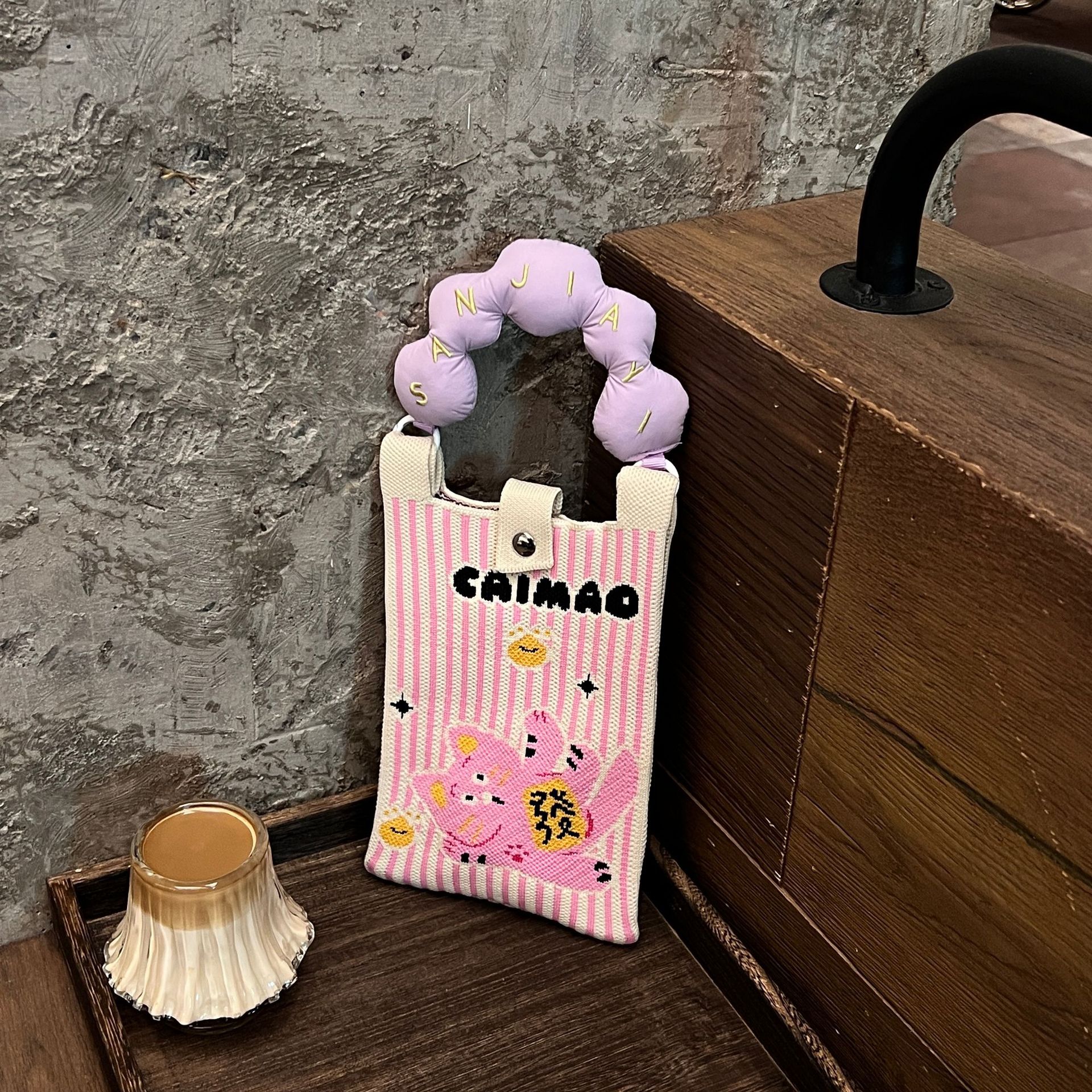 고급 휴대폰 가방, 새로운 만화 니트 가방, 도파민 컬러 핸드백, 틈새 시장, 다용도 숄더 크로스백