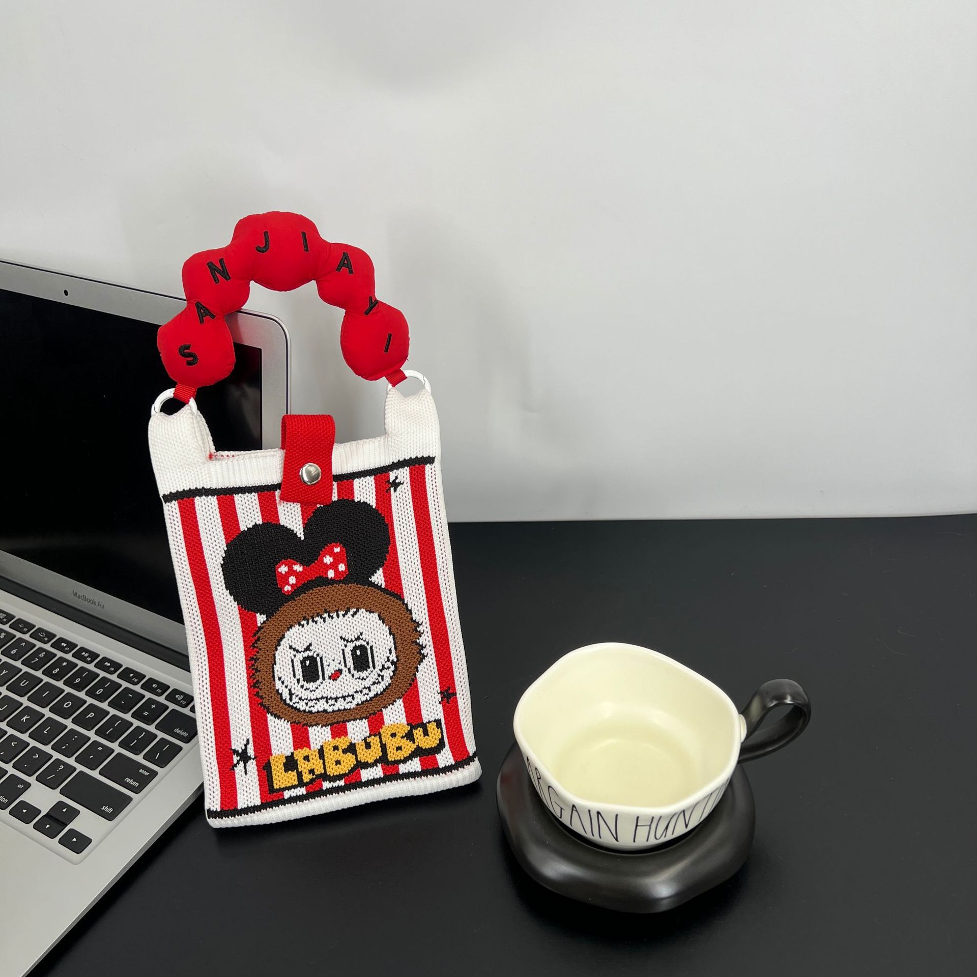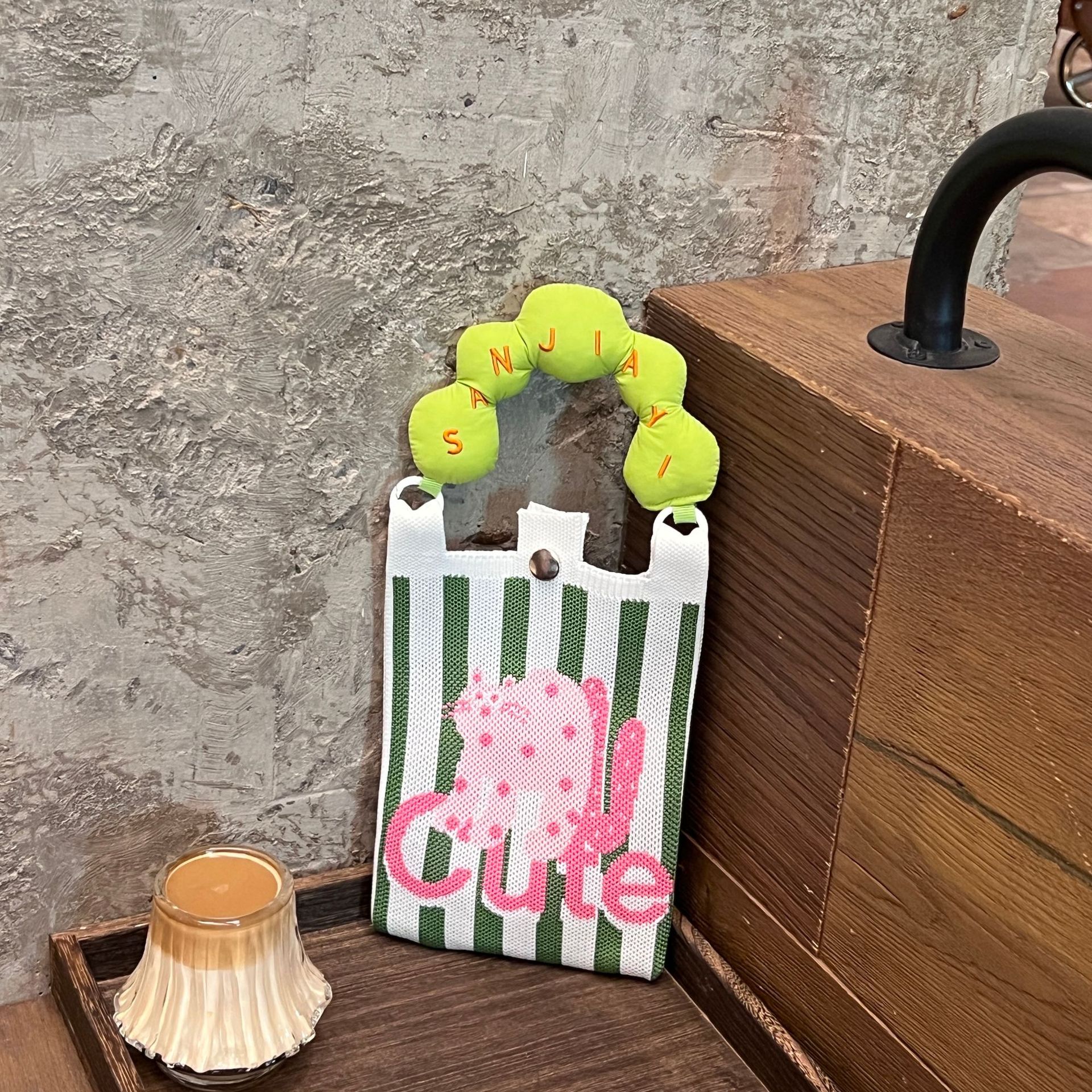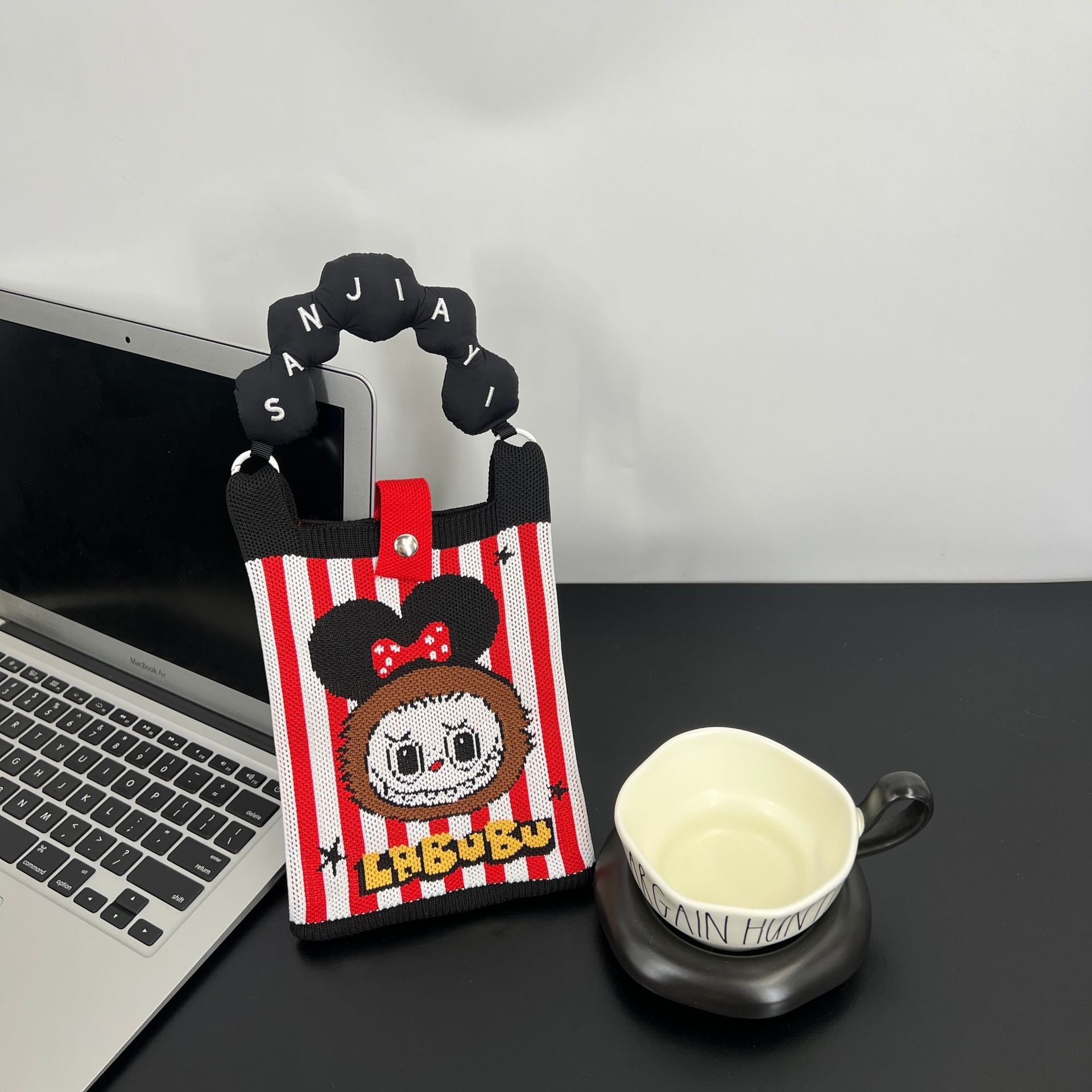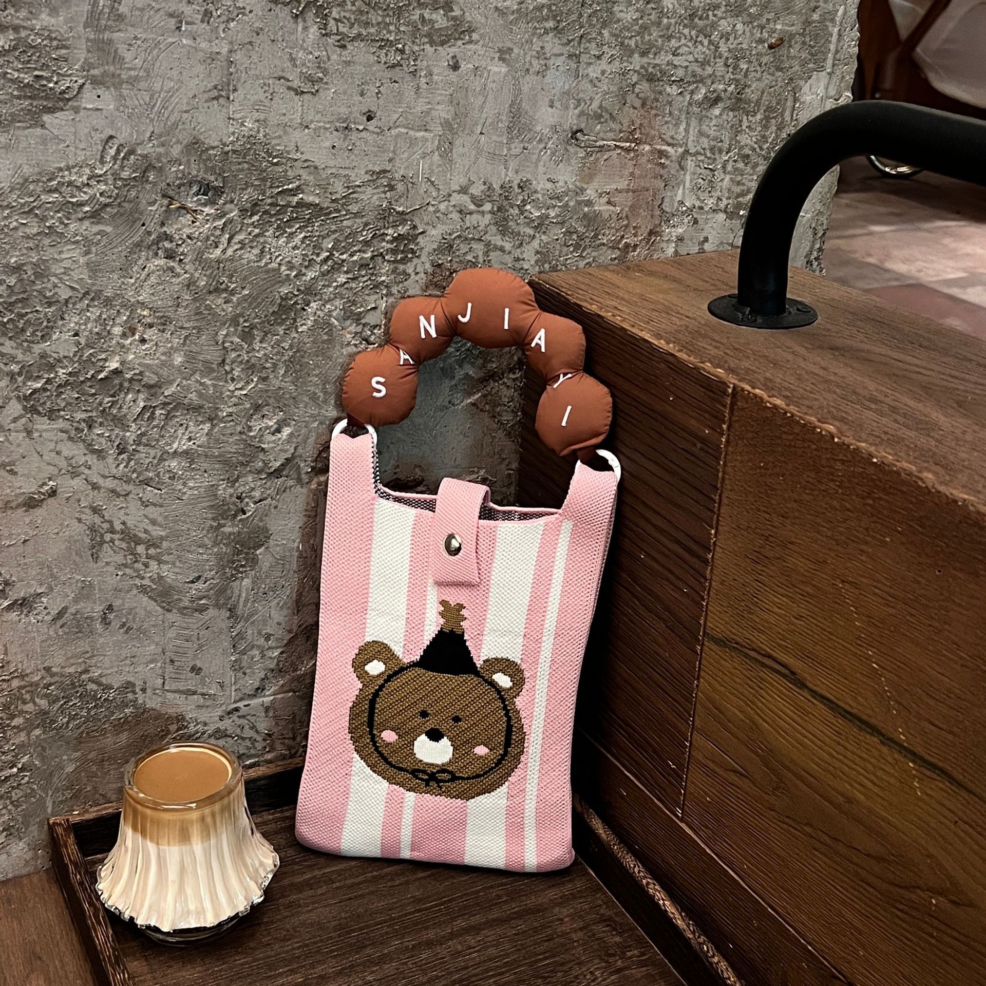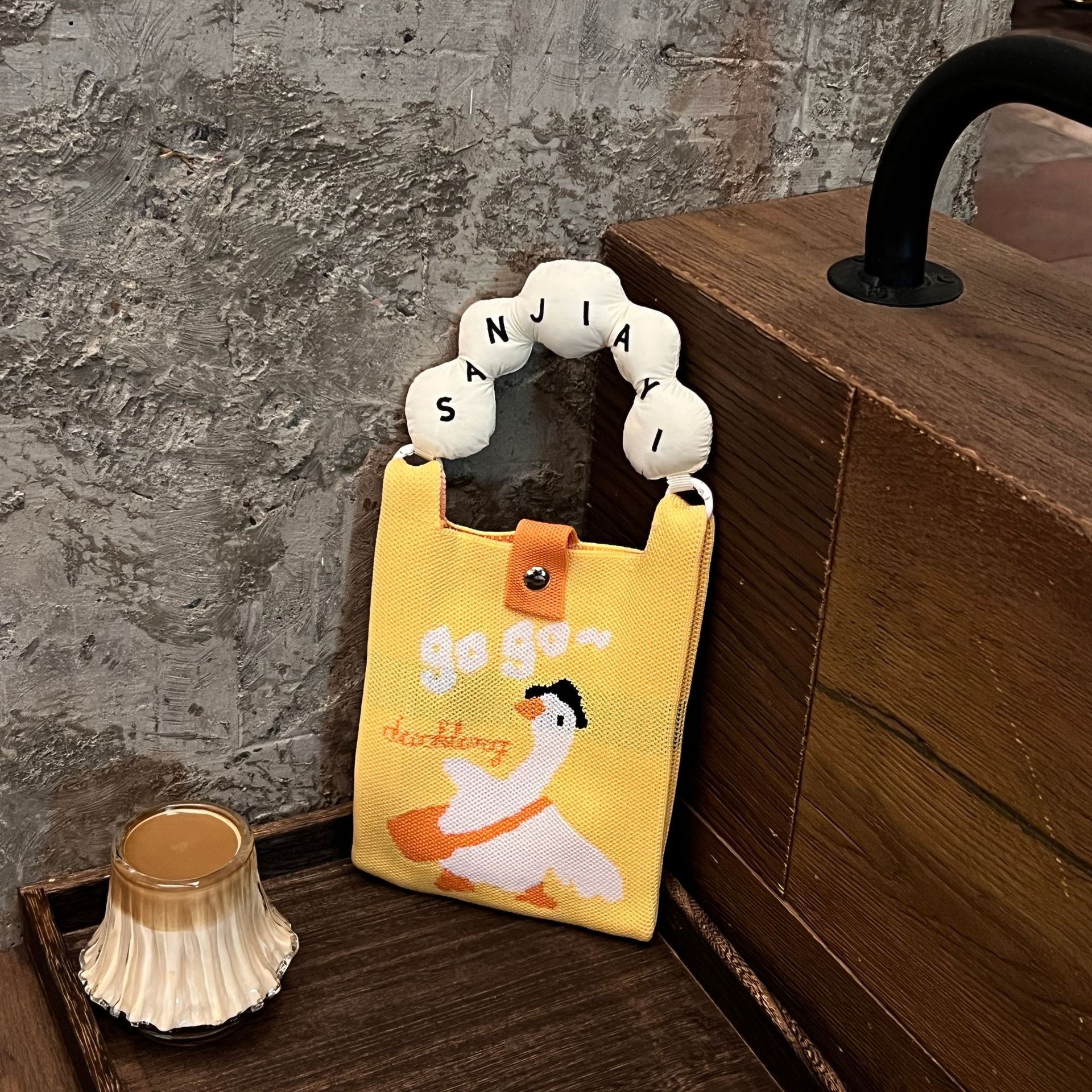 고급 휴대폰 가방, 새로운 만화 니트 가방, 도파민 컬러 핸드백, 틈새 시장, 다용도 숄더 크로스백