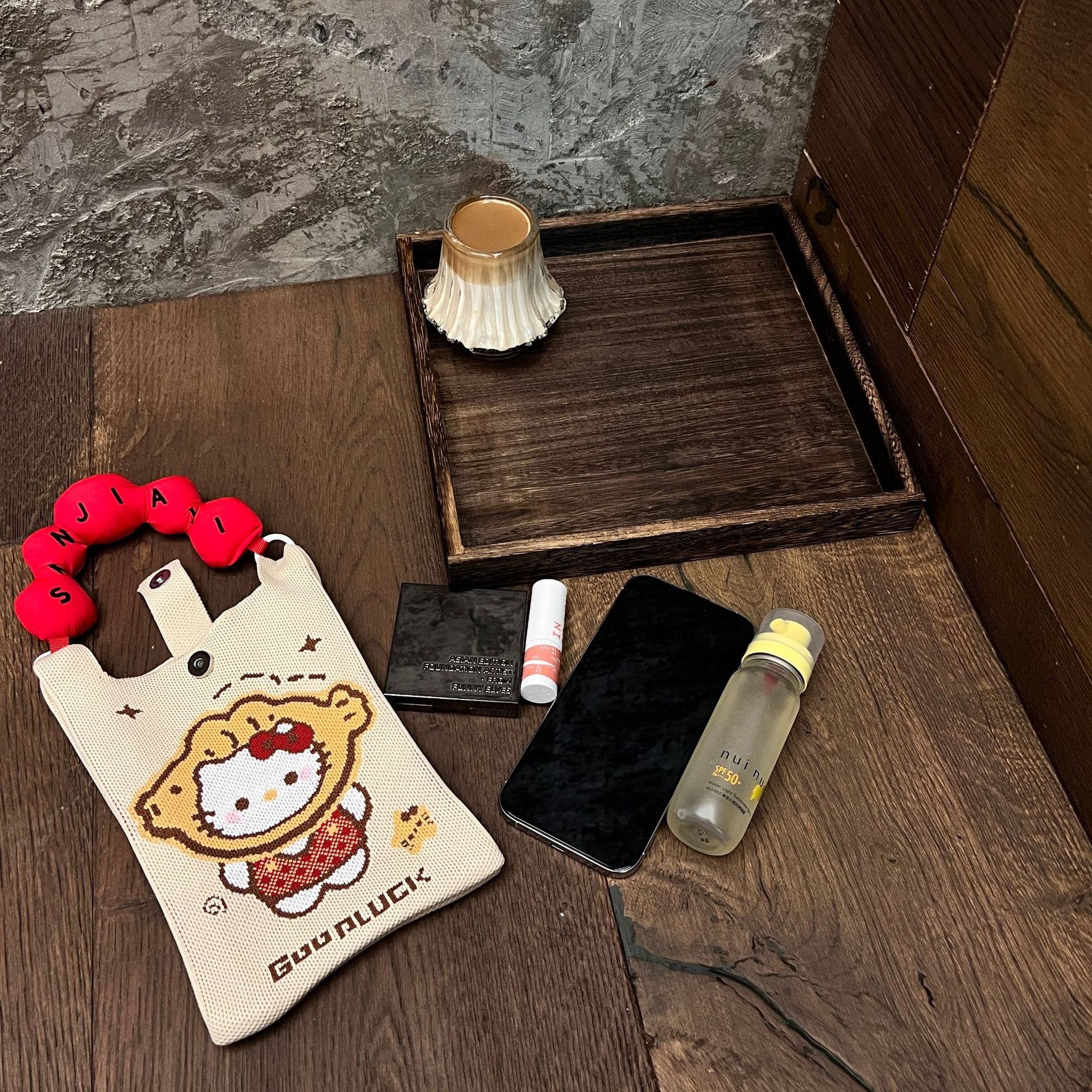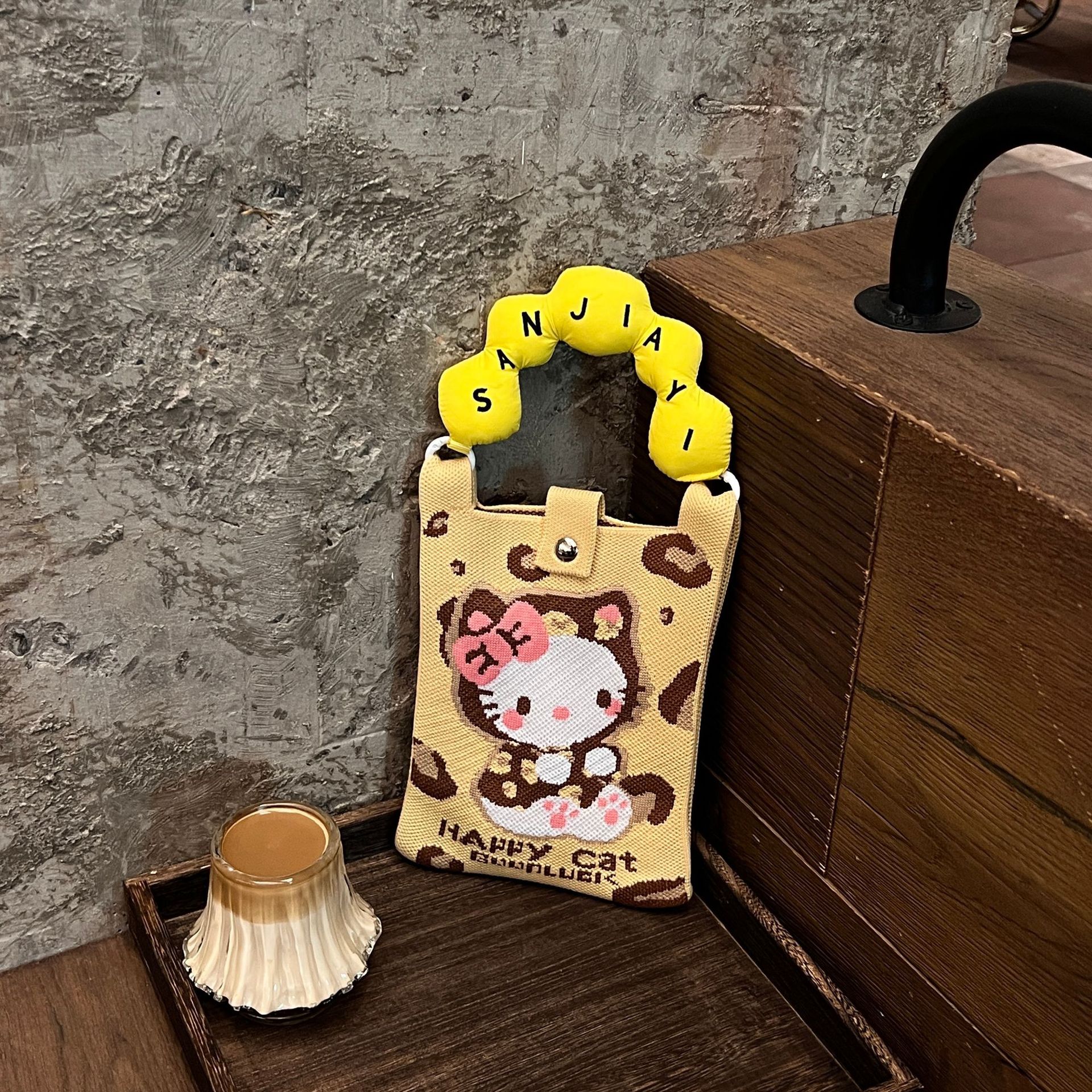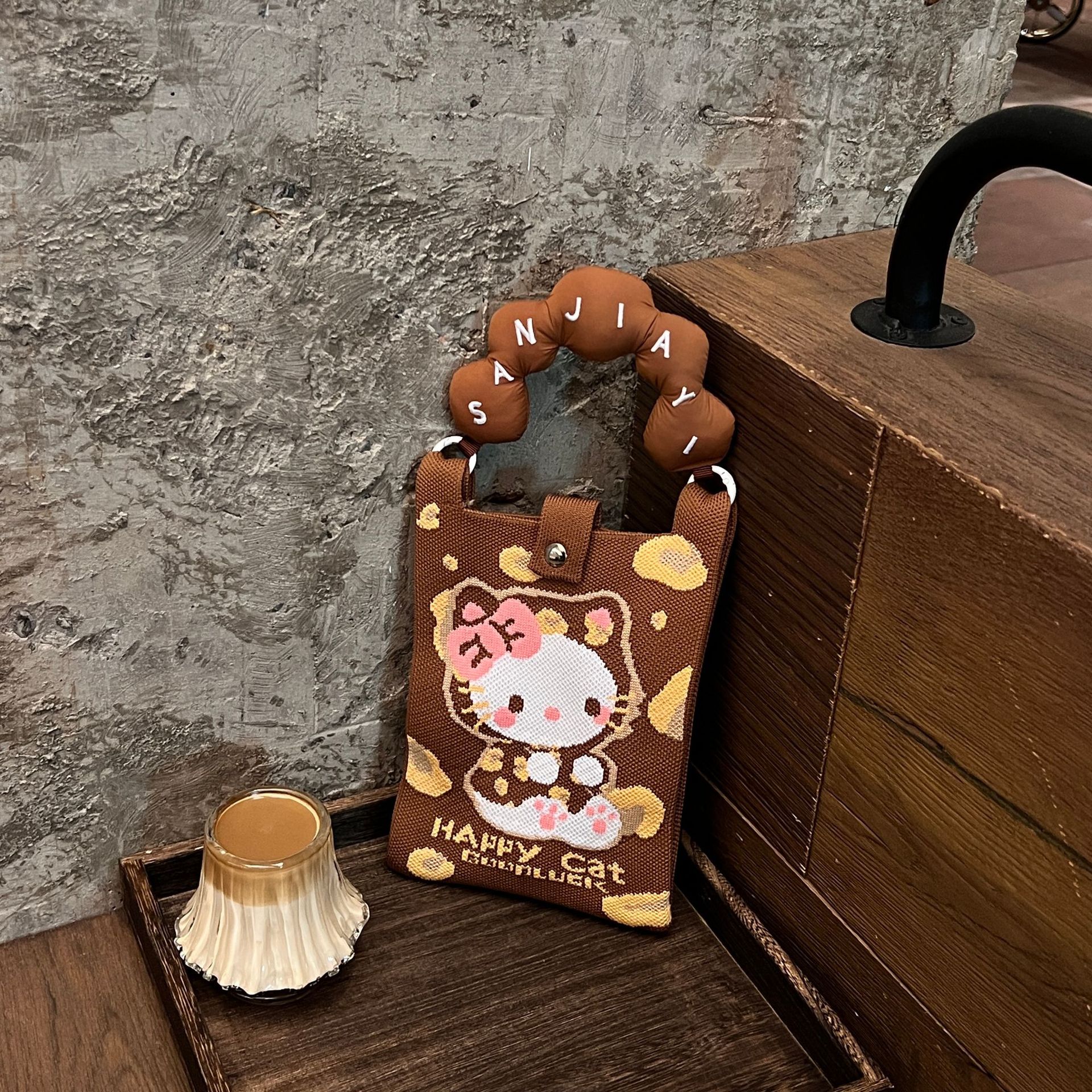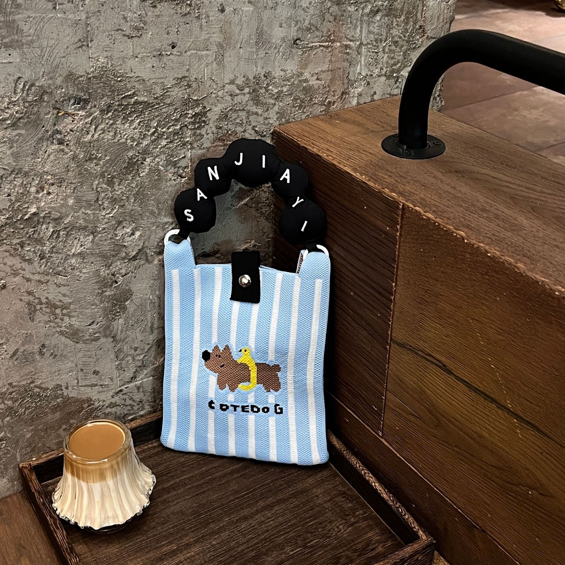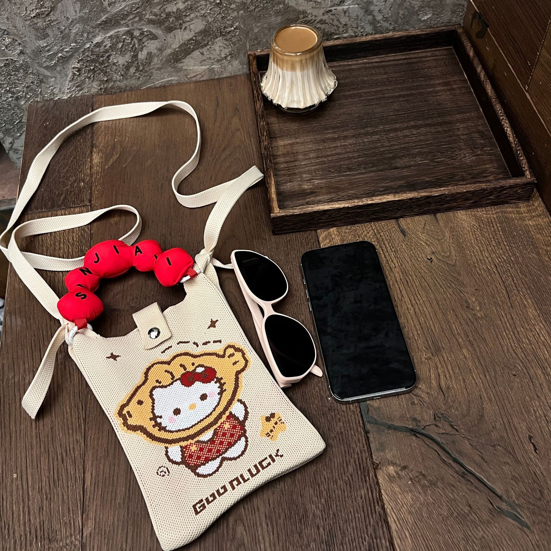 고급 휴대폰 가방, 새로운 만화 니트 가방, 도파민 컬러 핸드백, 틈새 시장, 다용도 숄더 크로스백