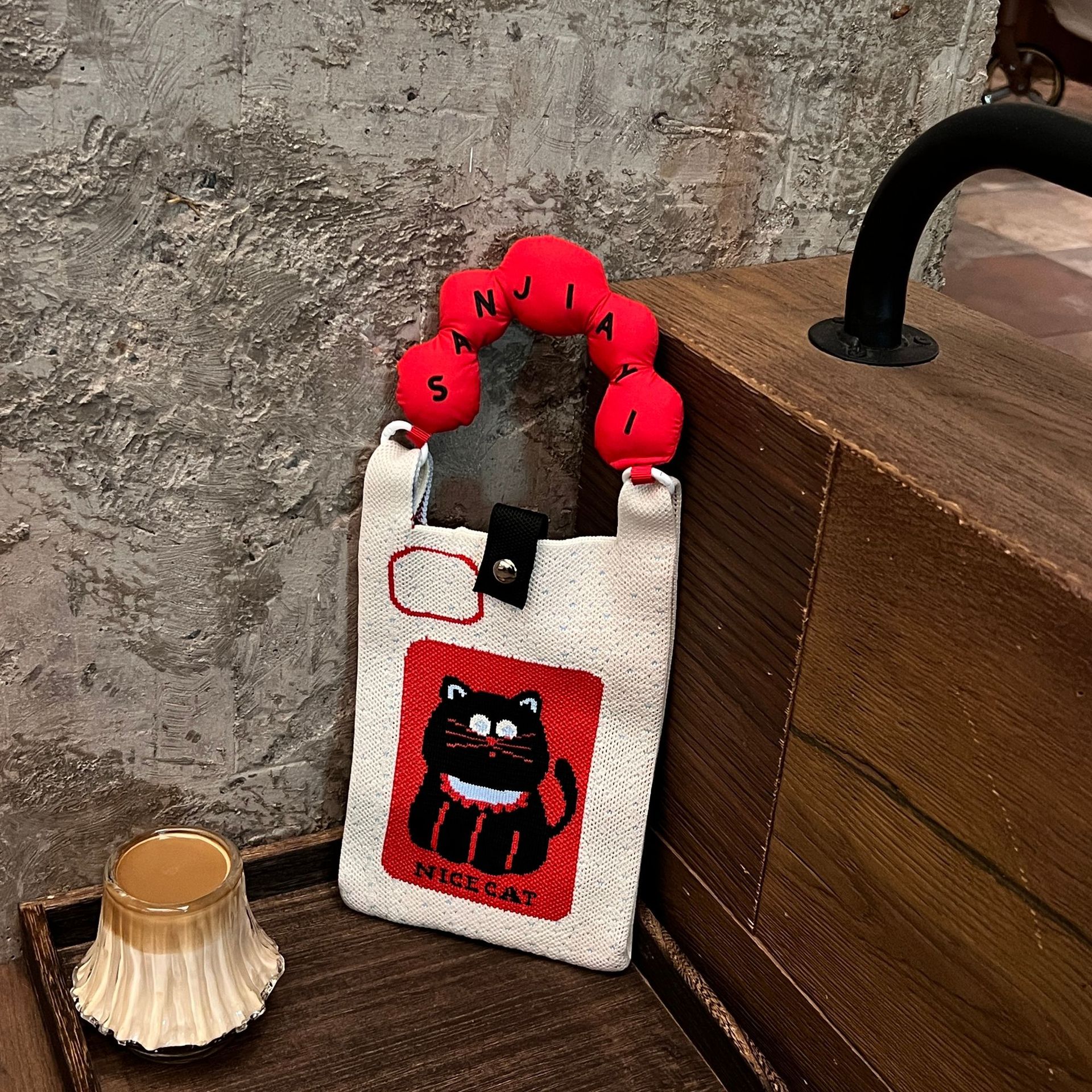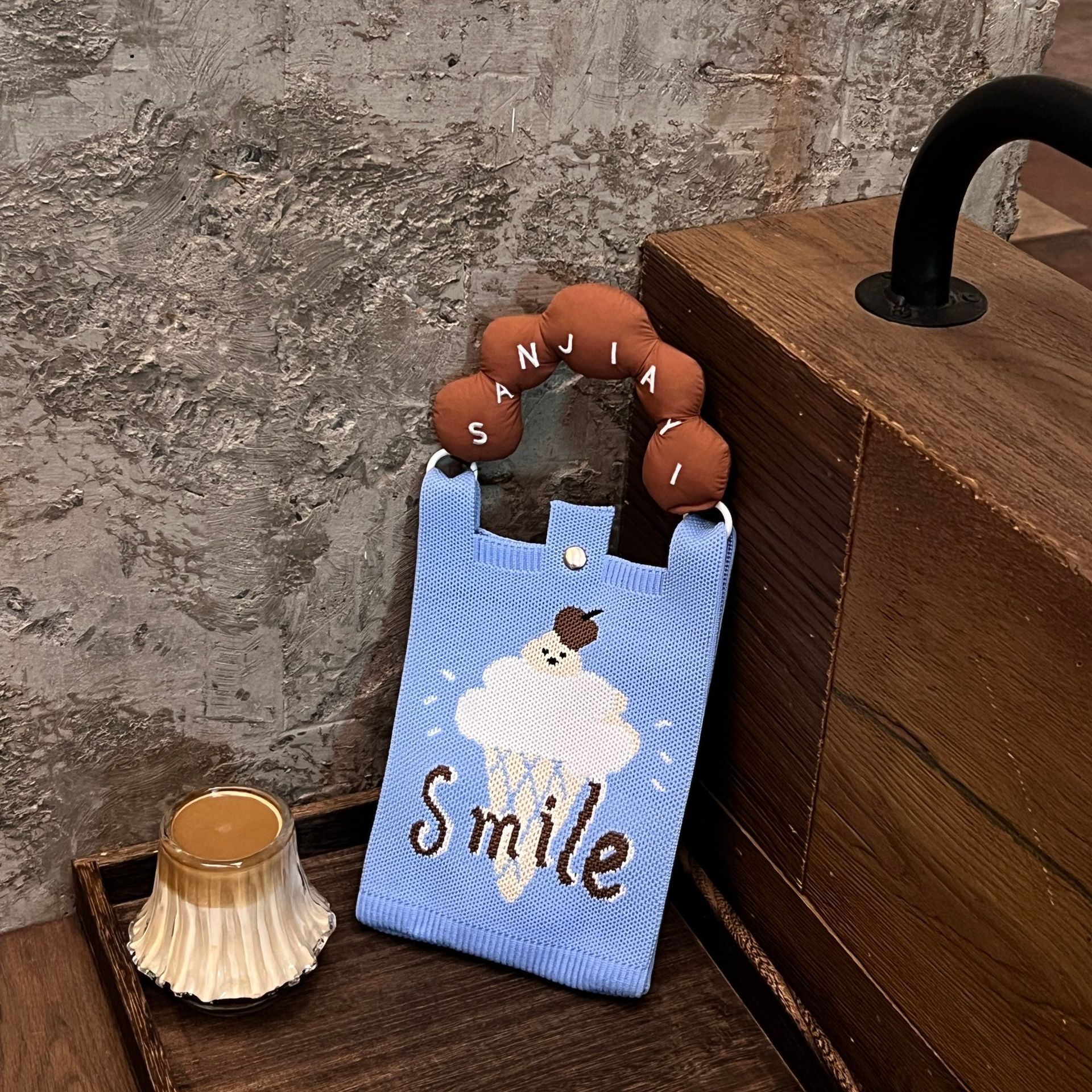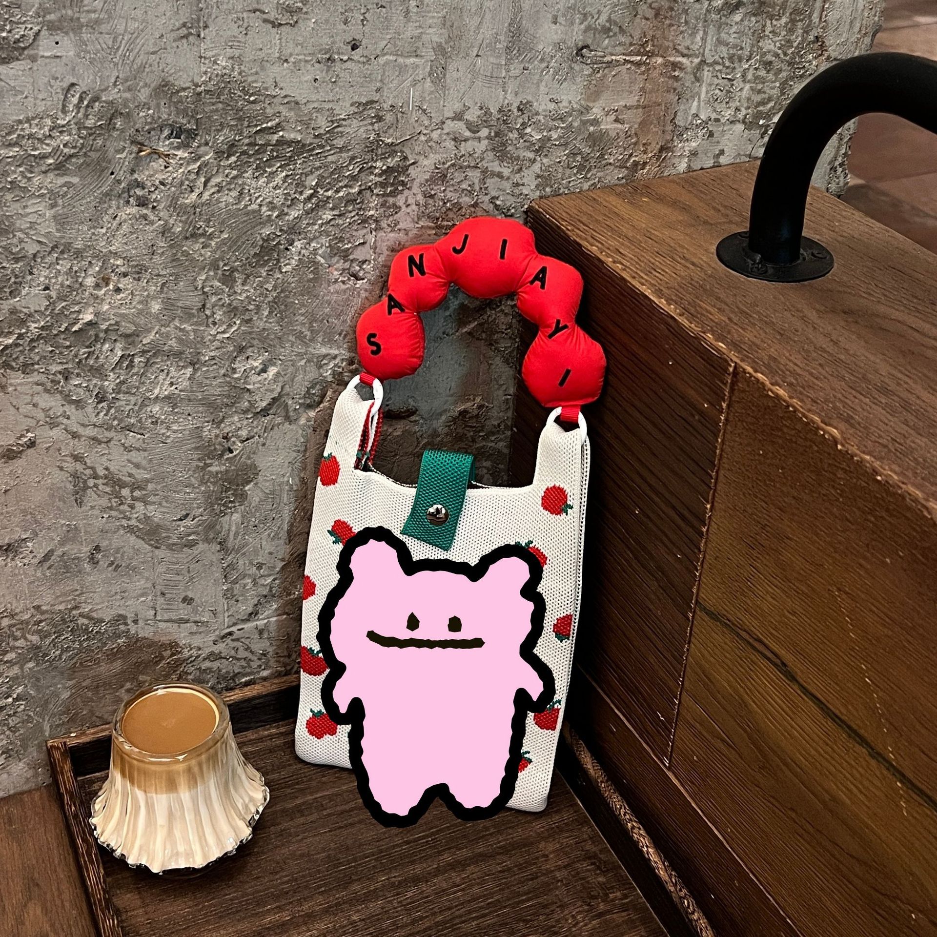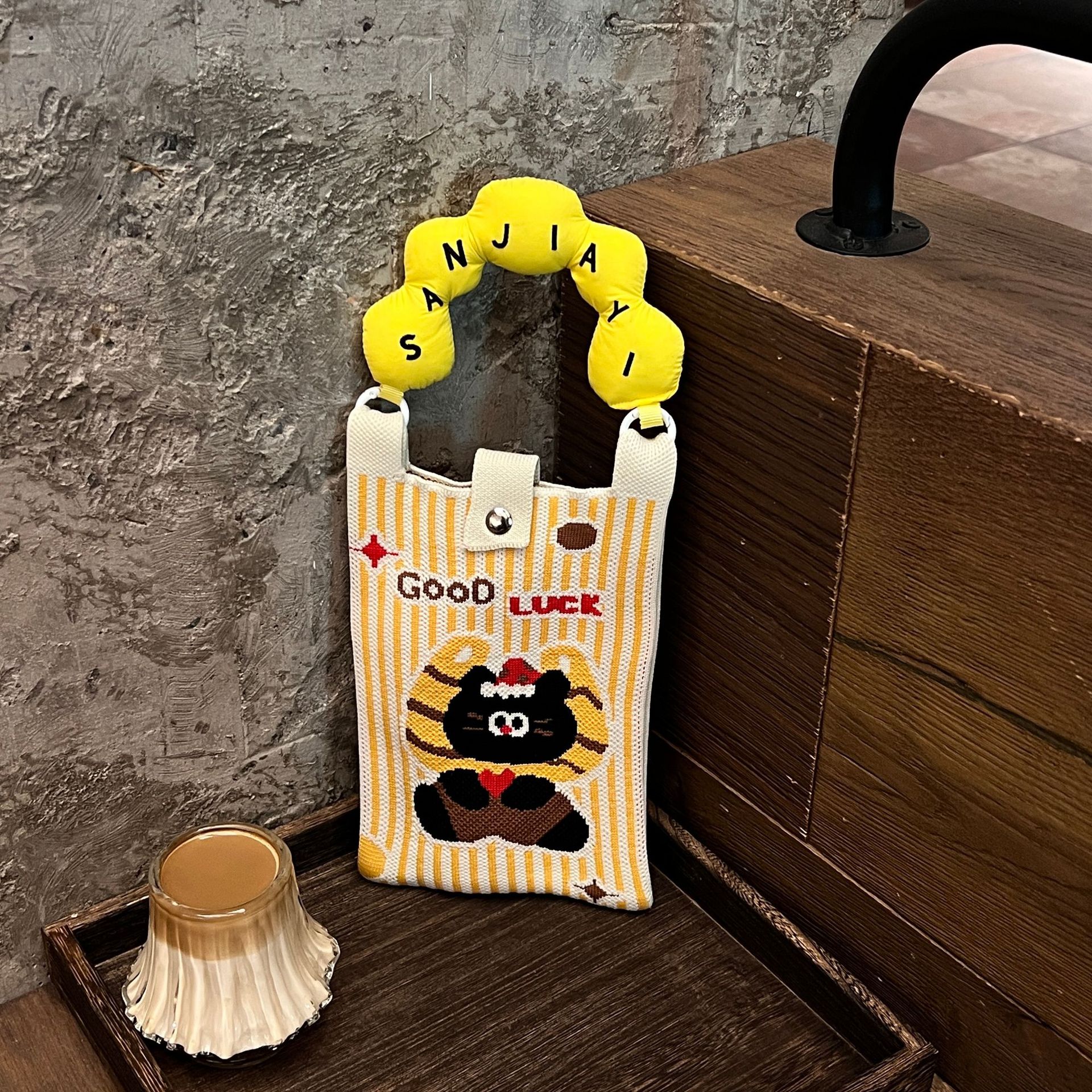 고급 휴대폰 가방, 새로운 만화 니트 가방, 도파민 컬러 핸드백, 틈새 시장, 다용도 숄더 크로스백스토어 가기