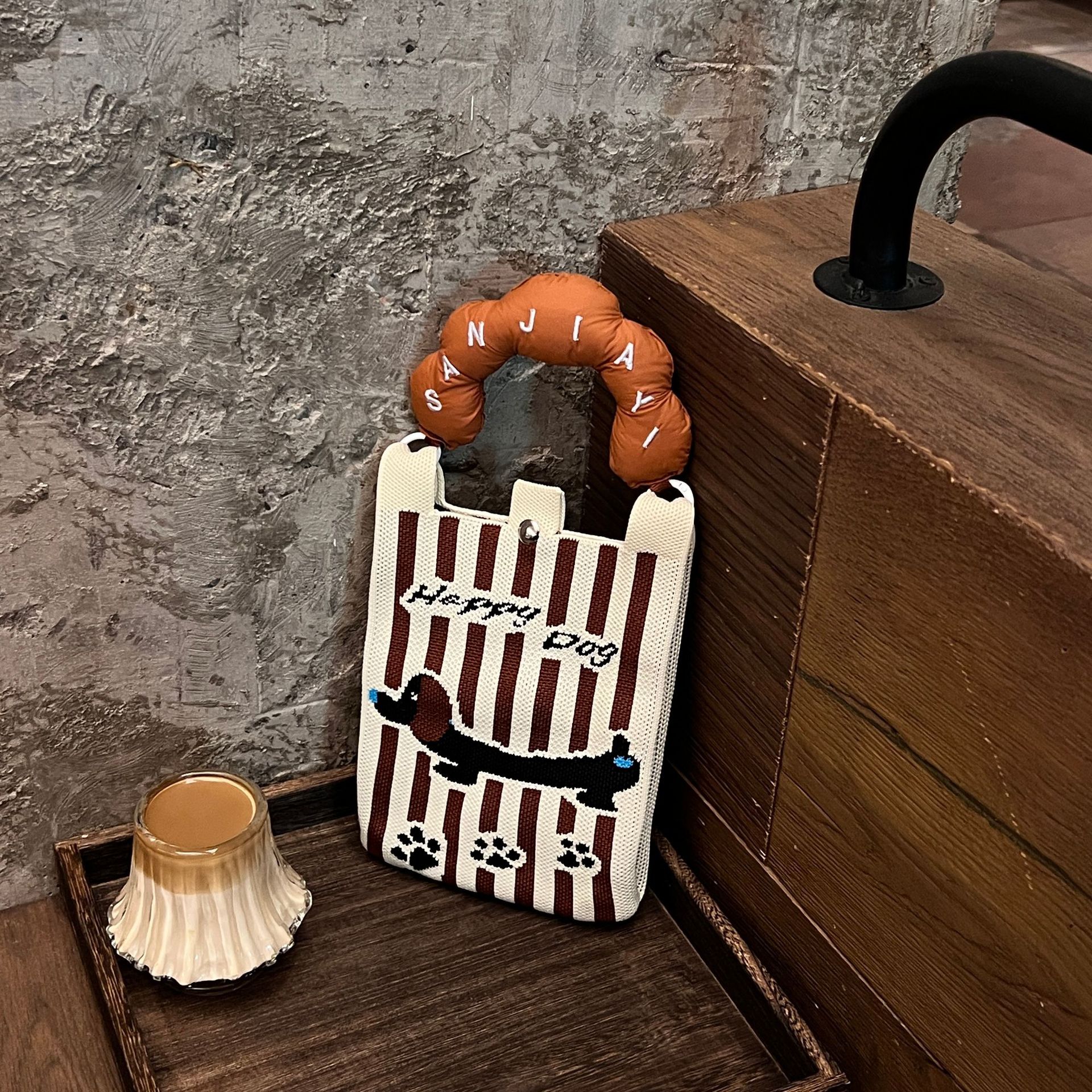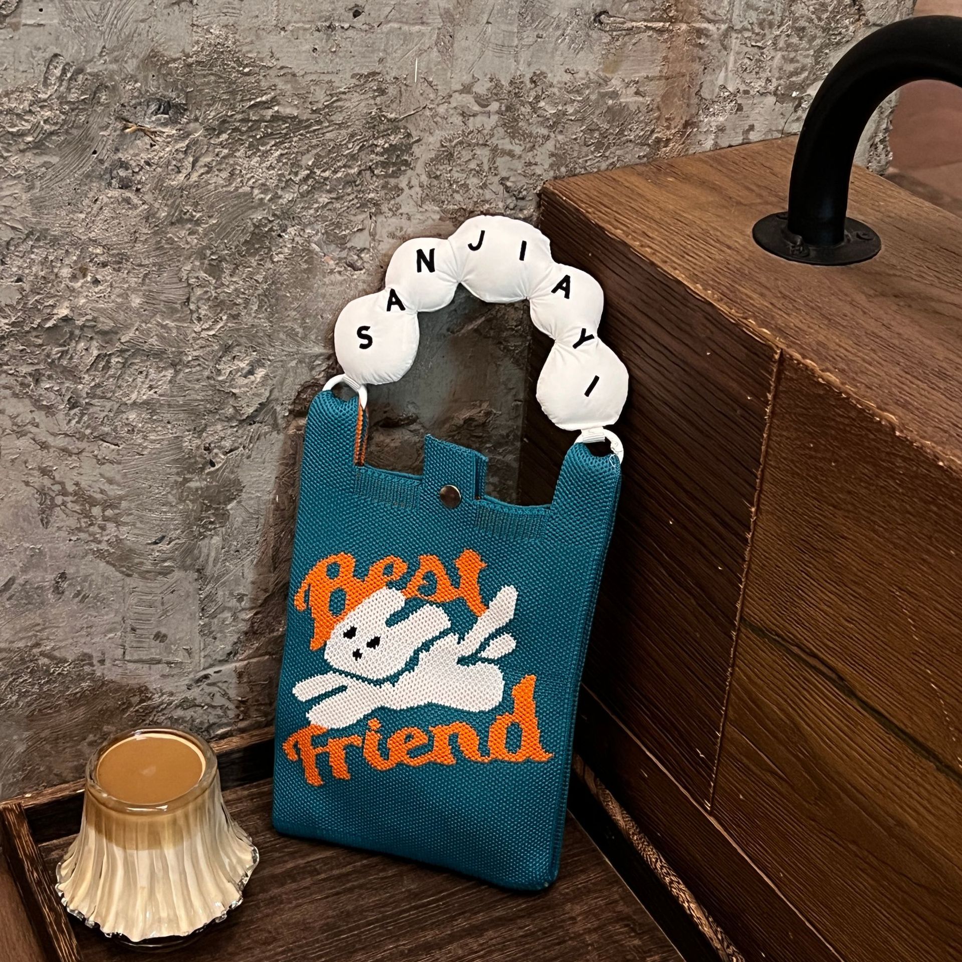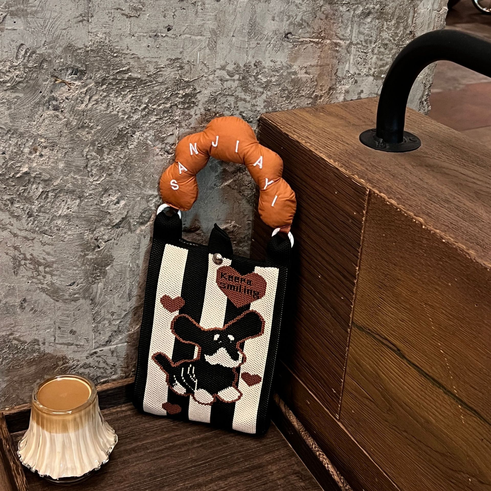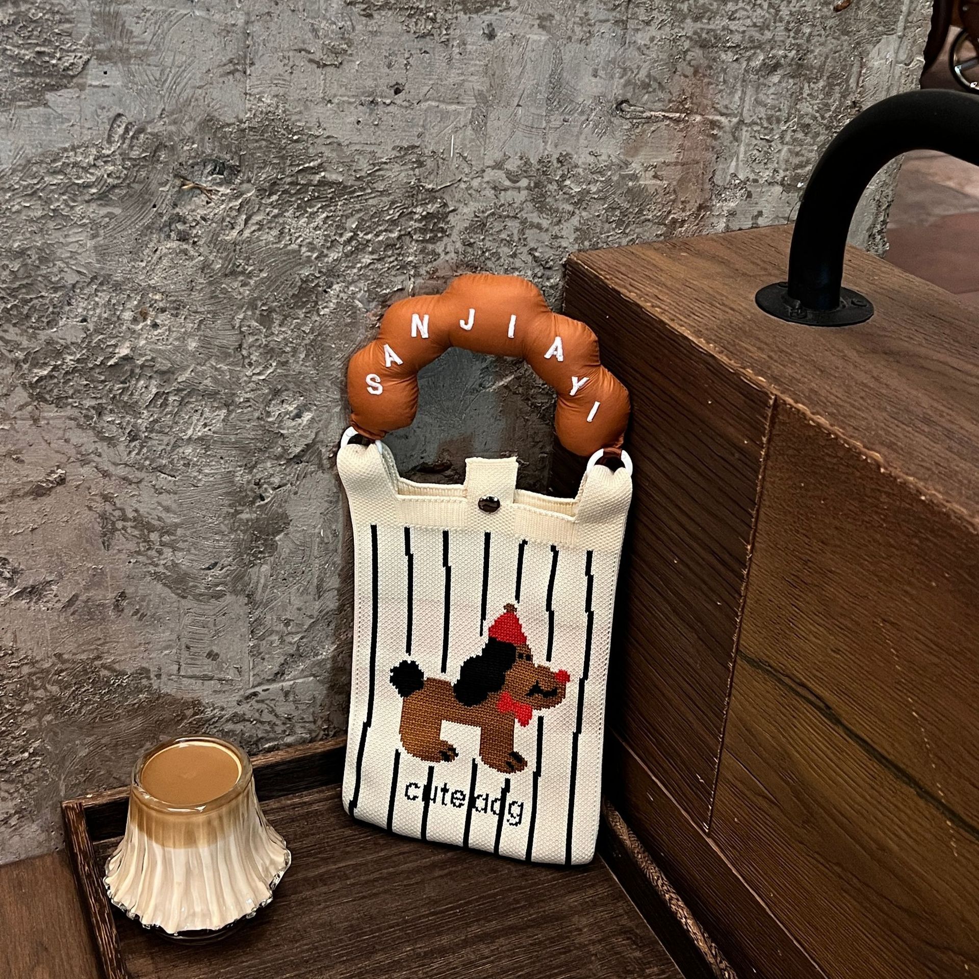고급 휴대폰 가방, 새로운 만화 니트 가방, 도파민 컬러 핸드백, 틈새 시장, 다용도 숄더 크로스백스토어 가기