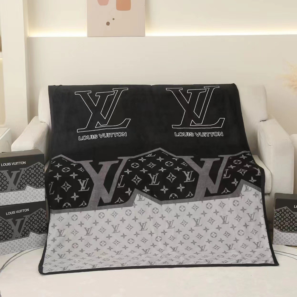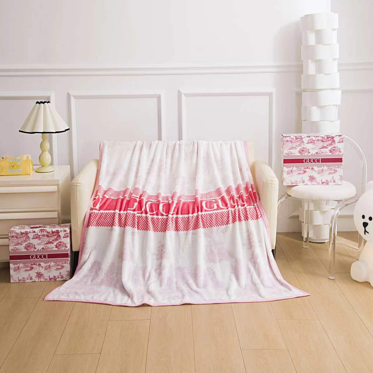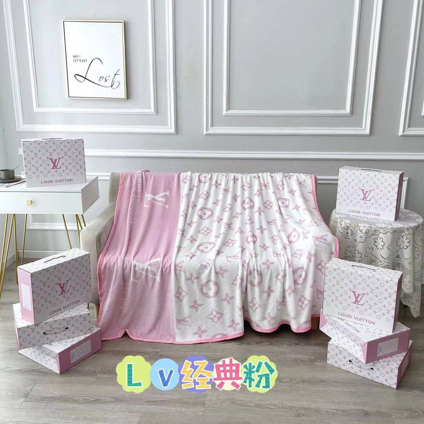 대외 무역 인기 트렌디 브랜드 담요, 사무실 낮잠 담요, 골드 에칭 벨벳, 팔레 벨벳 빅 브랜드 담요스토어 가기