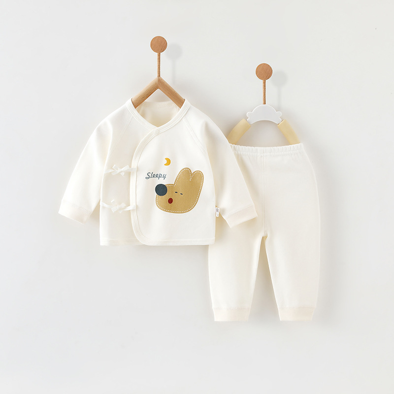 아기 아기 세트 봄과 가을 새로운 순수 면화 유형 A 투피스 신생아 세트 남성과 여성 아기 잠옷 도매스토어 가기