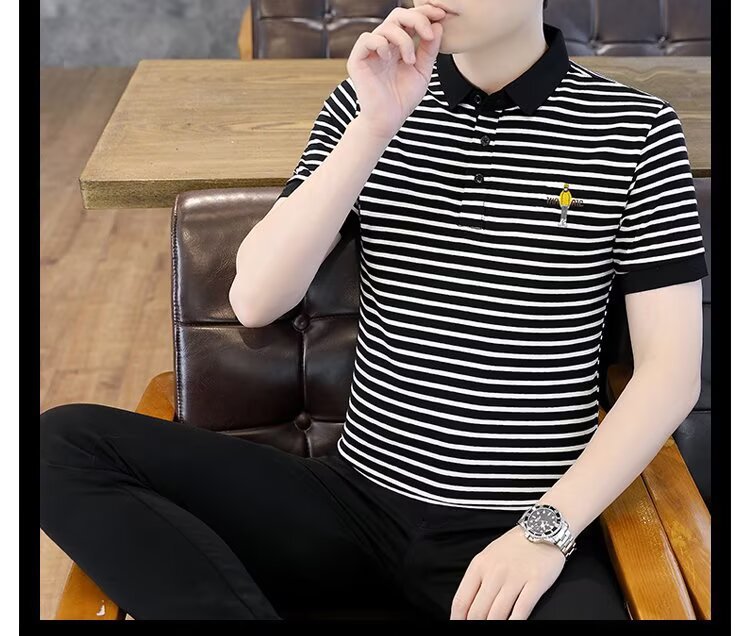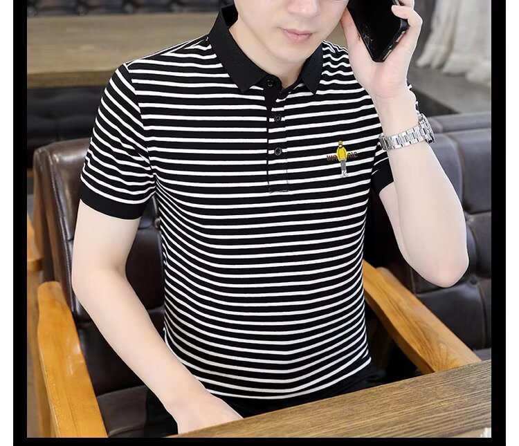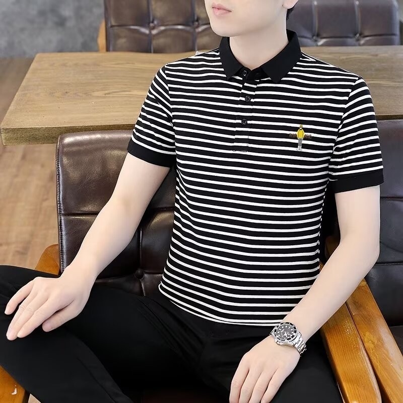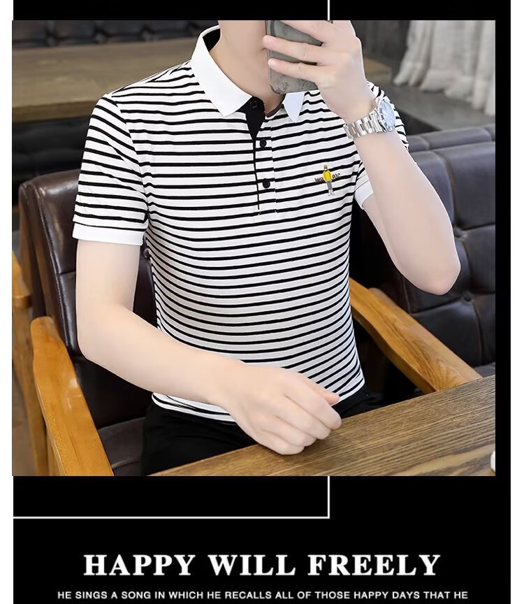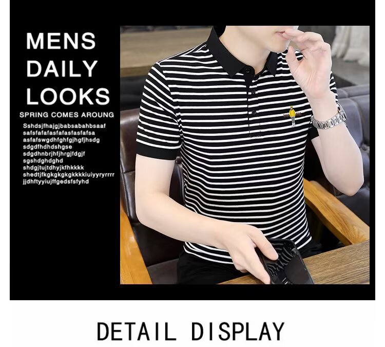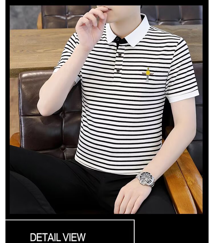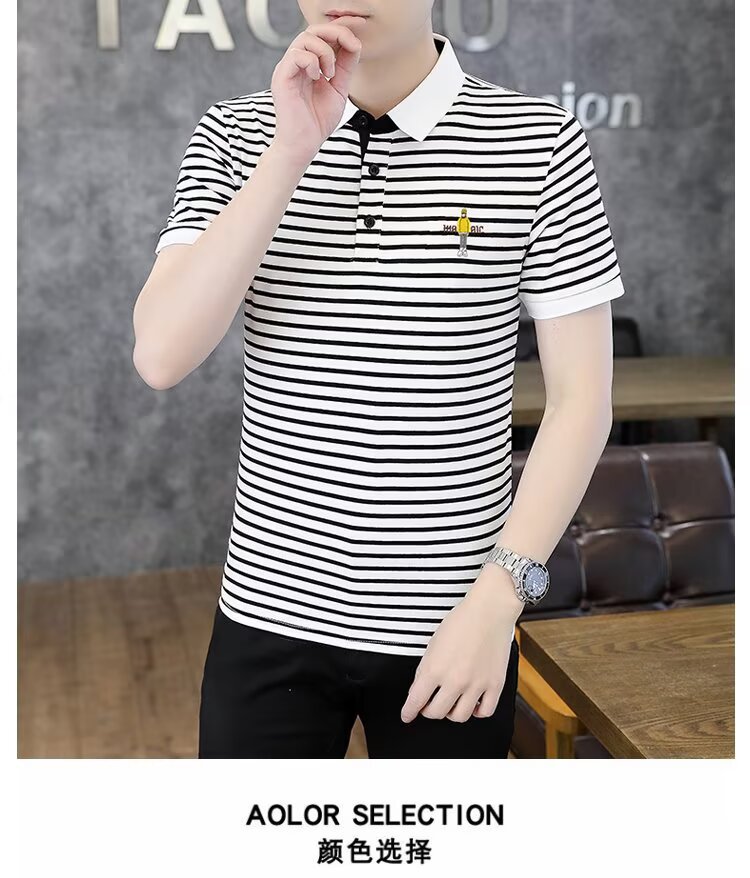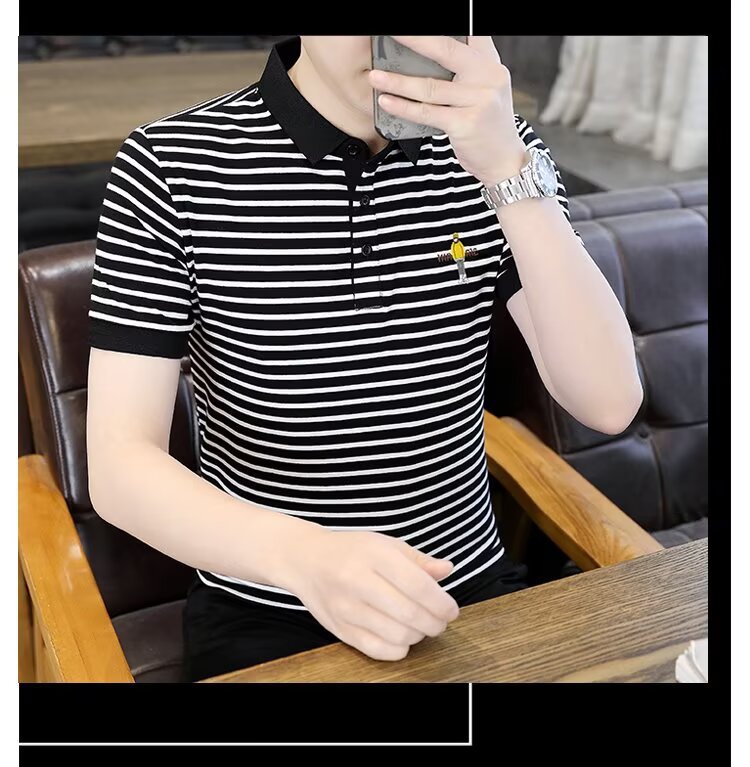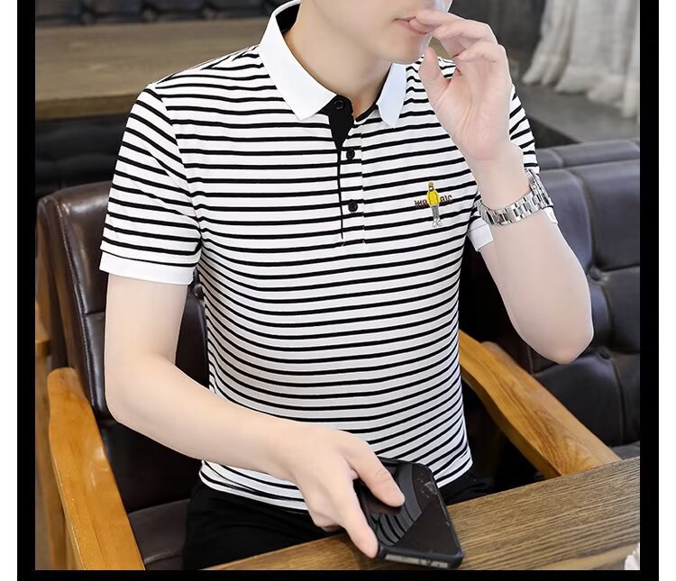 남성용 반팔 폴로 셔츠 2025 여름 신작 라펠 티셔츠 남성용 트렌디 슬림 반팔 티셔츠 남성용 탑 의류