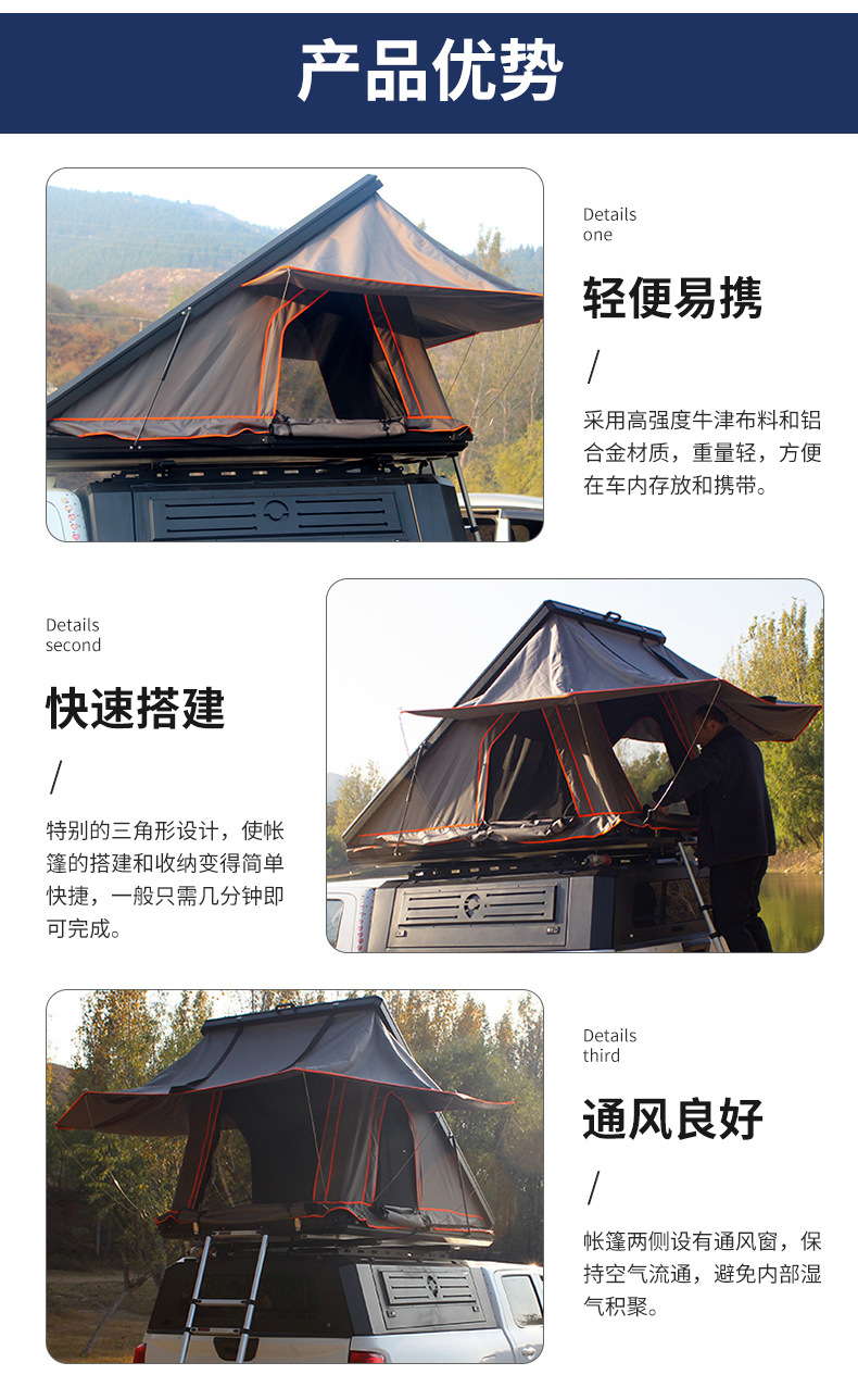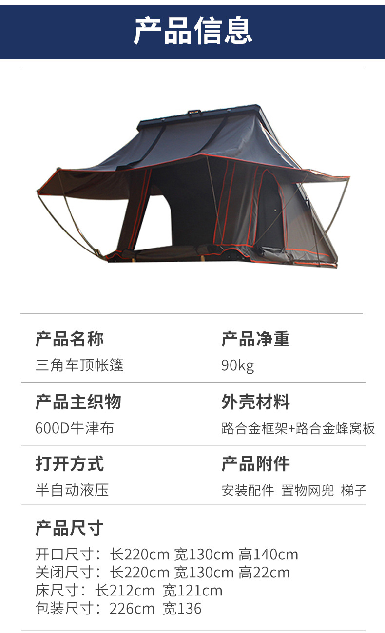 루프탑텐트, 하드탑, 합금 자동차 삼각형 접이식 헬리콥터 반자동 유압텐트, 야외 자율주행 캠핑스토어 가기