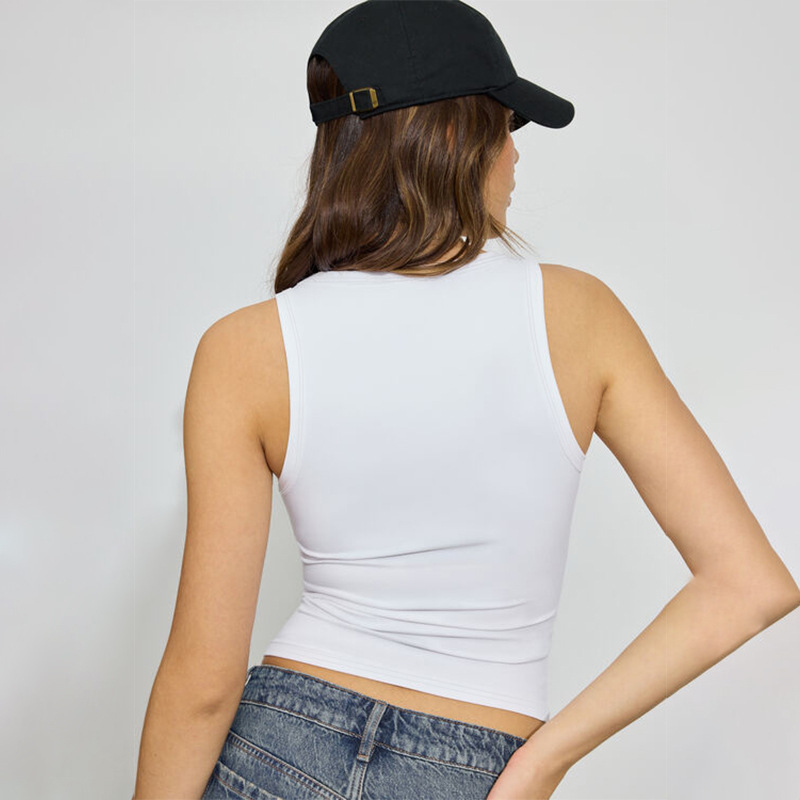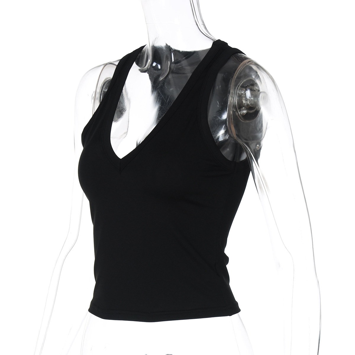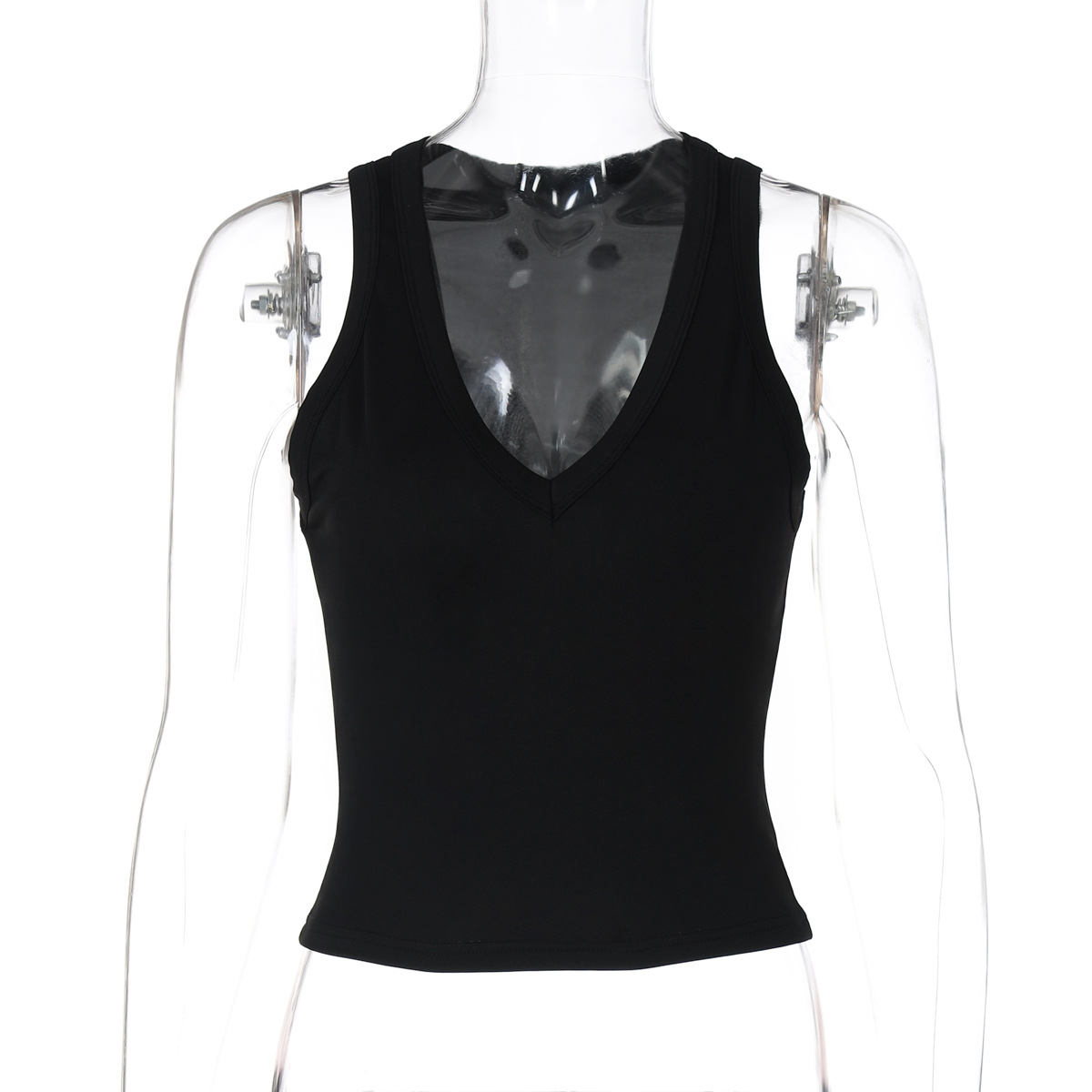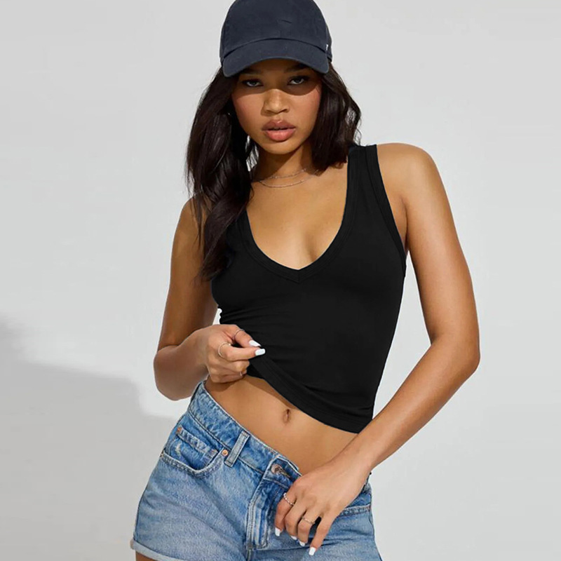 유럽과 미국의 국경 간 여성 의류 2025 여름 새로운 아마존 솔리드 컬러 민소매 캐주얼 v 넥 조끼 탑 여성 도매스토어 가기