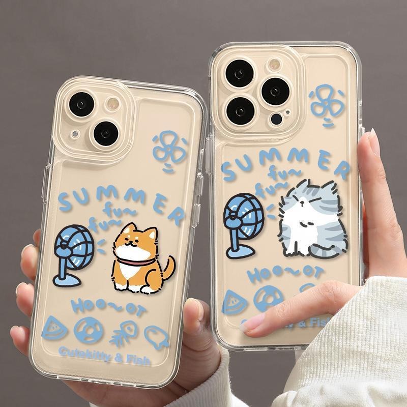 블로잉 팬 새끼 고양이와 강아지 iPhone16Plus 휴대폰 케이스 15promax Apple 14pro 낙하 방지 13 새로운 스타일