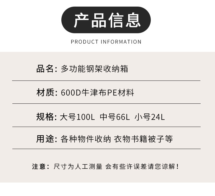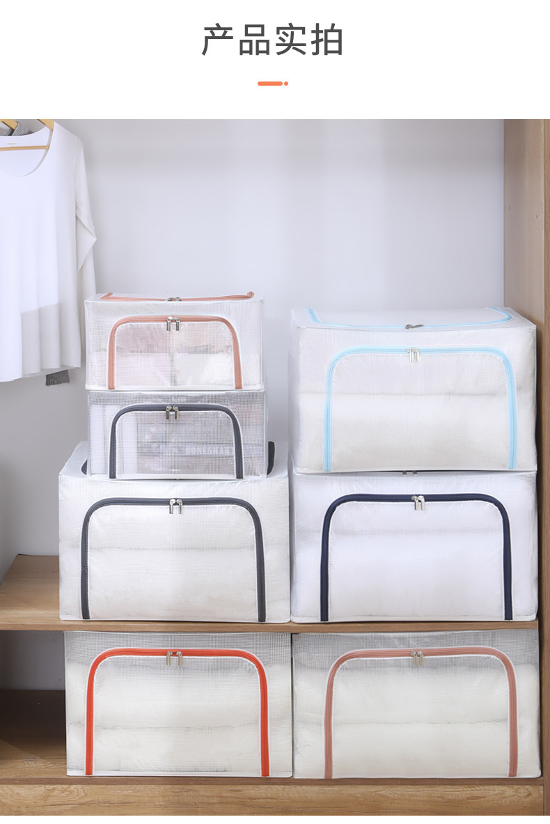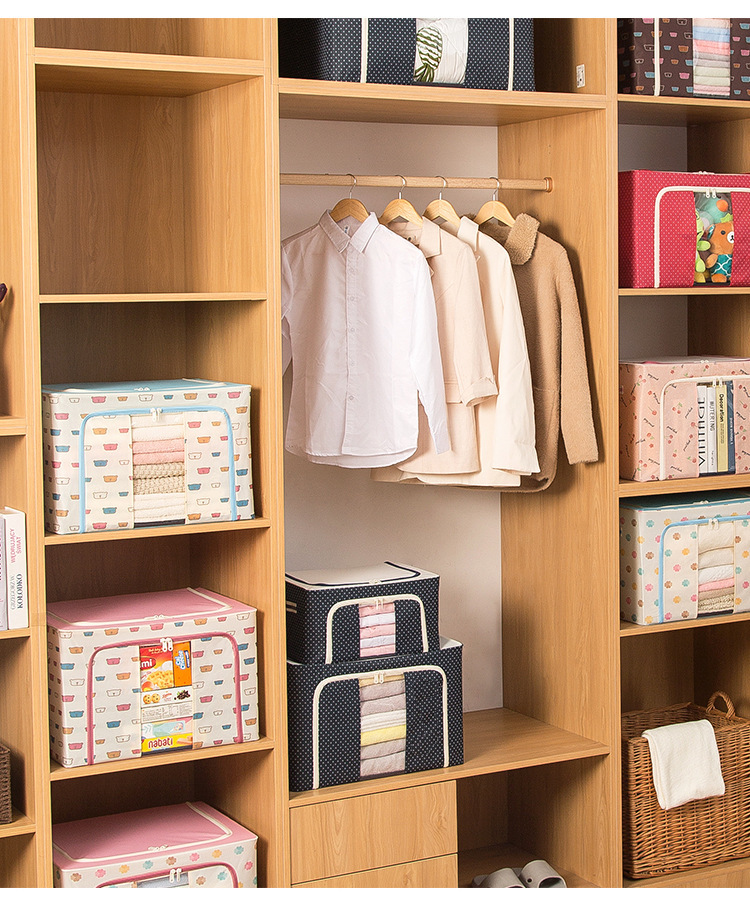 맞춤형 옥스포드 천 보관 상자, 다양한 색상의 접이식 천으로 된 의류 정리함, 이불 보관 상자(강철 프레임 포함)스토어 가기