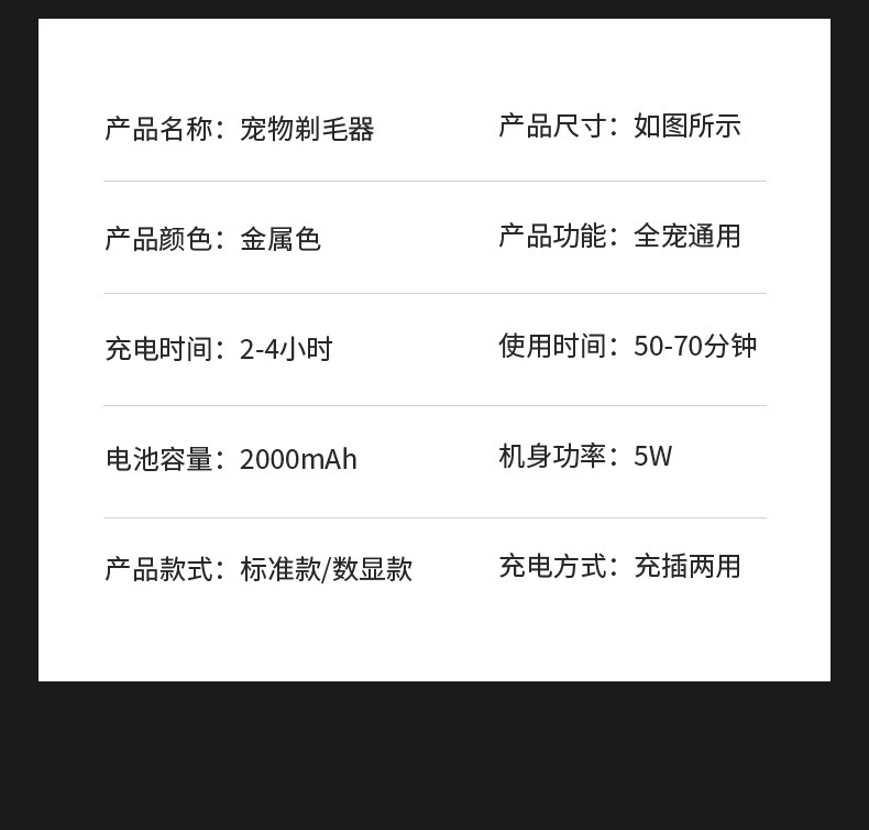 • 업그레이드 버전 + 미용 도구 + 예비 칼날 + 발털
