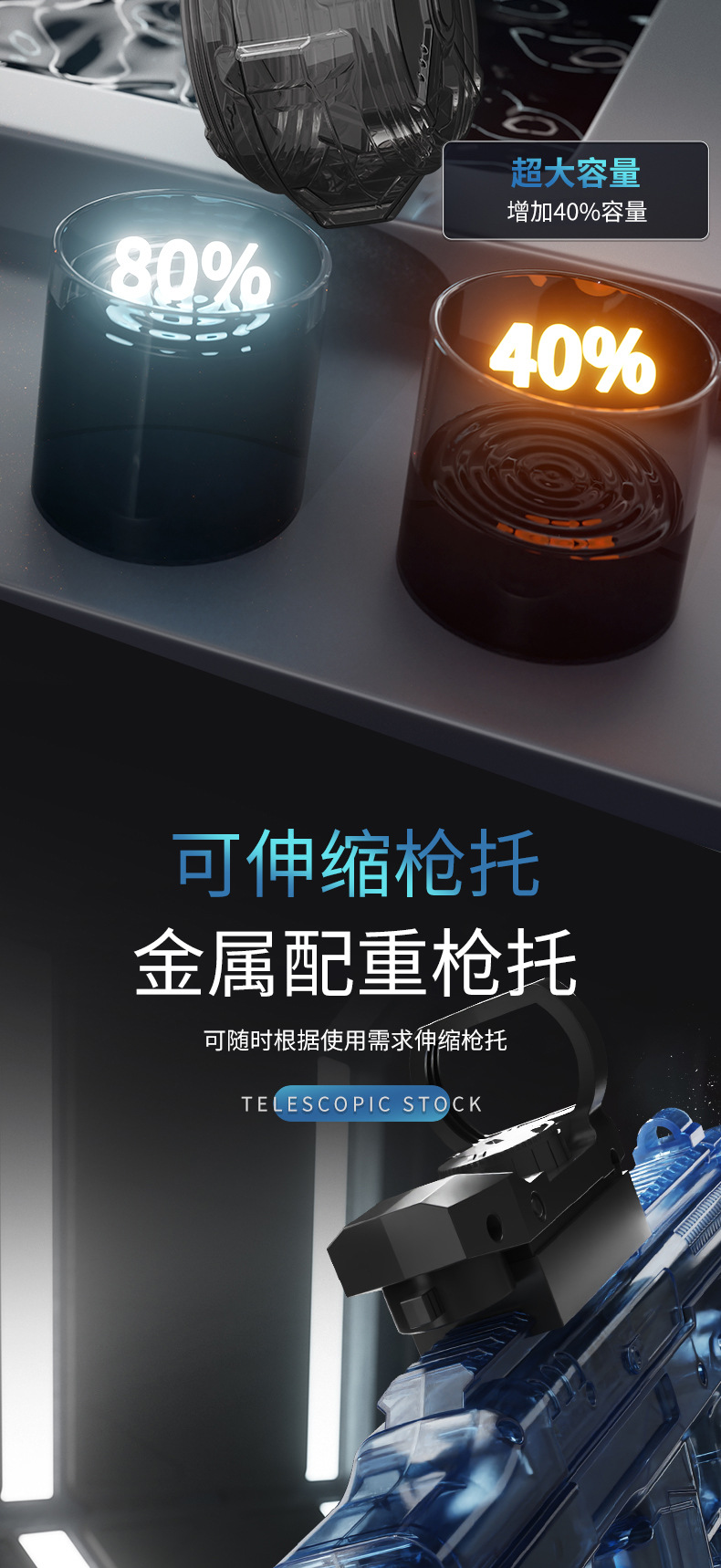 • Xiaohuowu MK3 전기 물총 [투명 검정색] + 고글이 기본으로 제공됩니다.