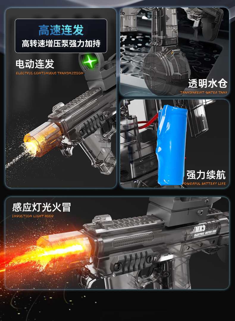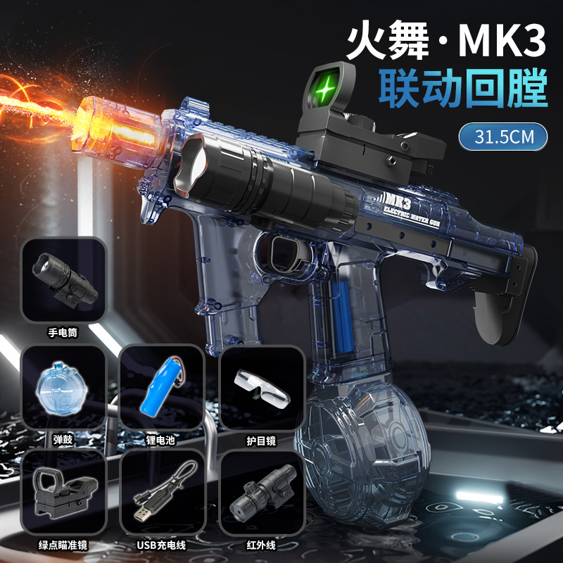 Douyin의 동일한 스타일의 플래시 MK3 전기 물총 고속 연속 발사 연결 대용량 물놀이 장난감