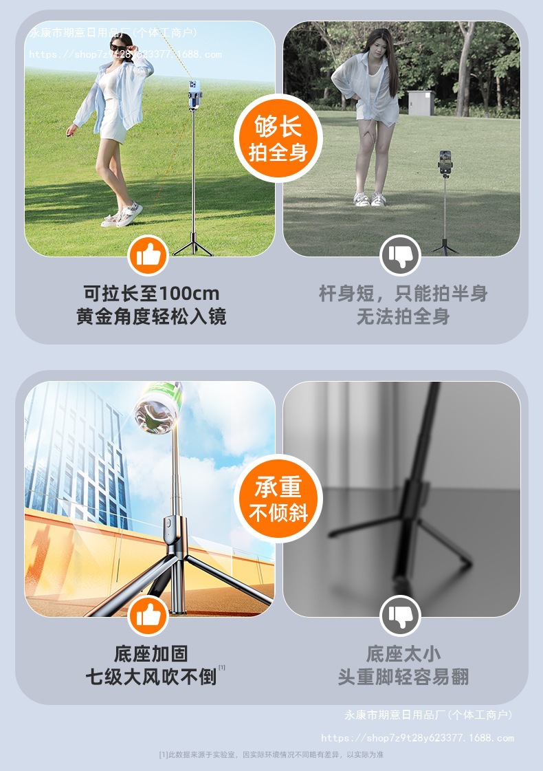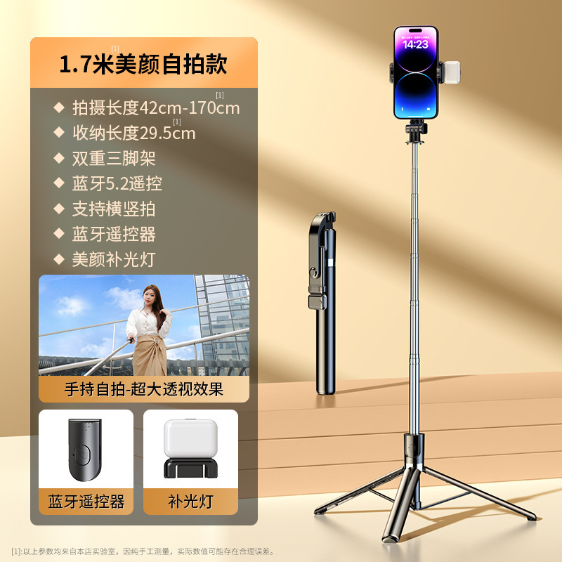 • [1.7m 확장 버전] 블랙 [일체형 접이식 듀플렉스 안정 삼각 지지대] + 15m 블루투스 리모컨