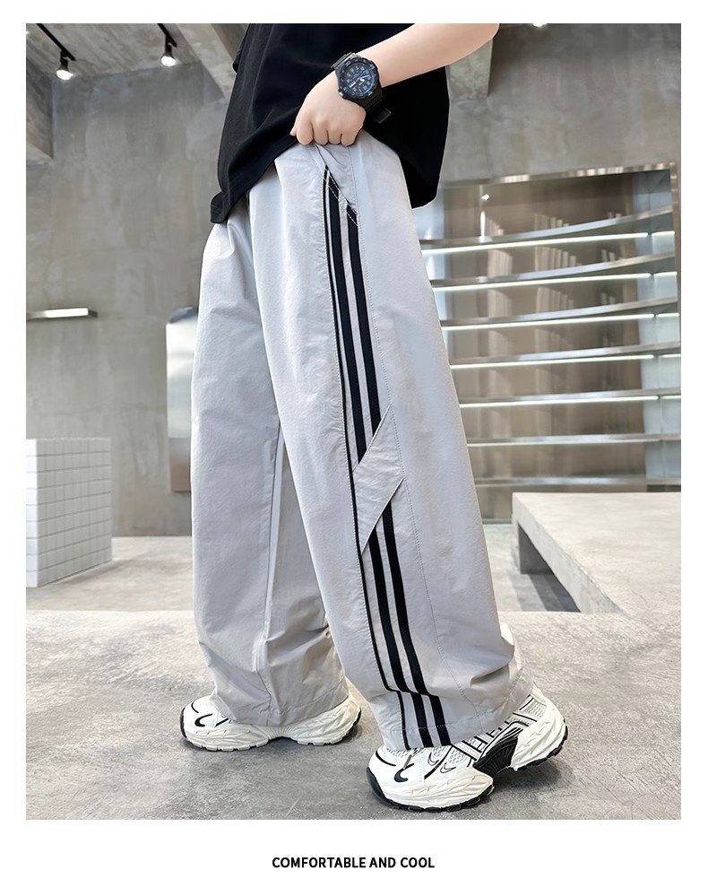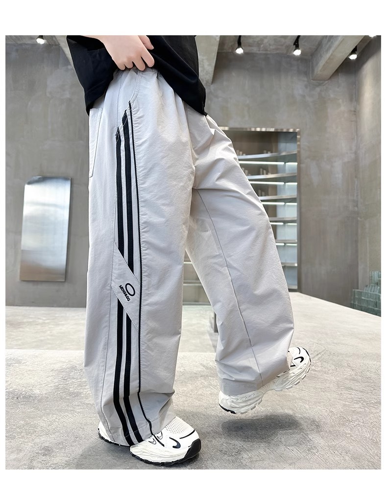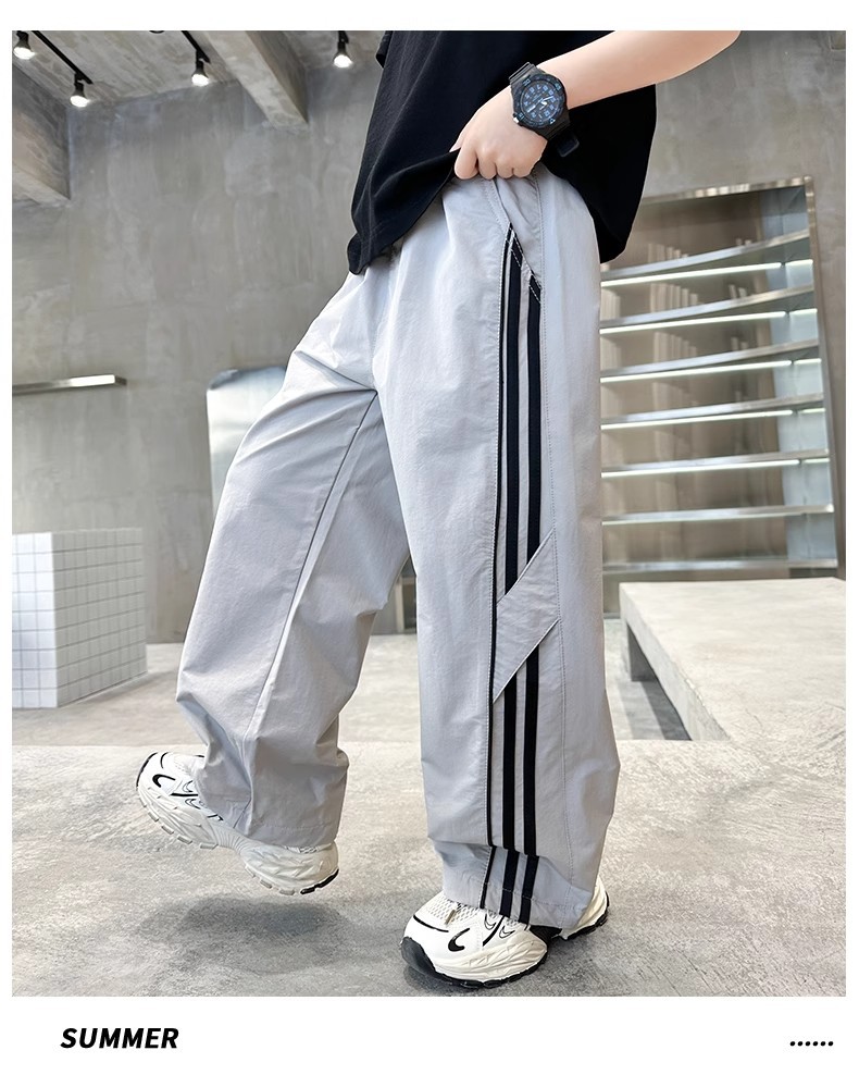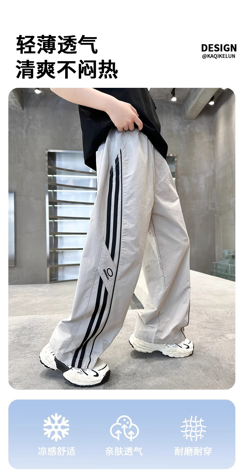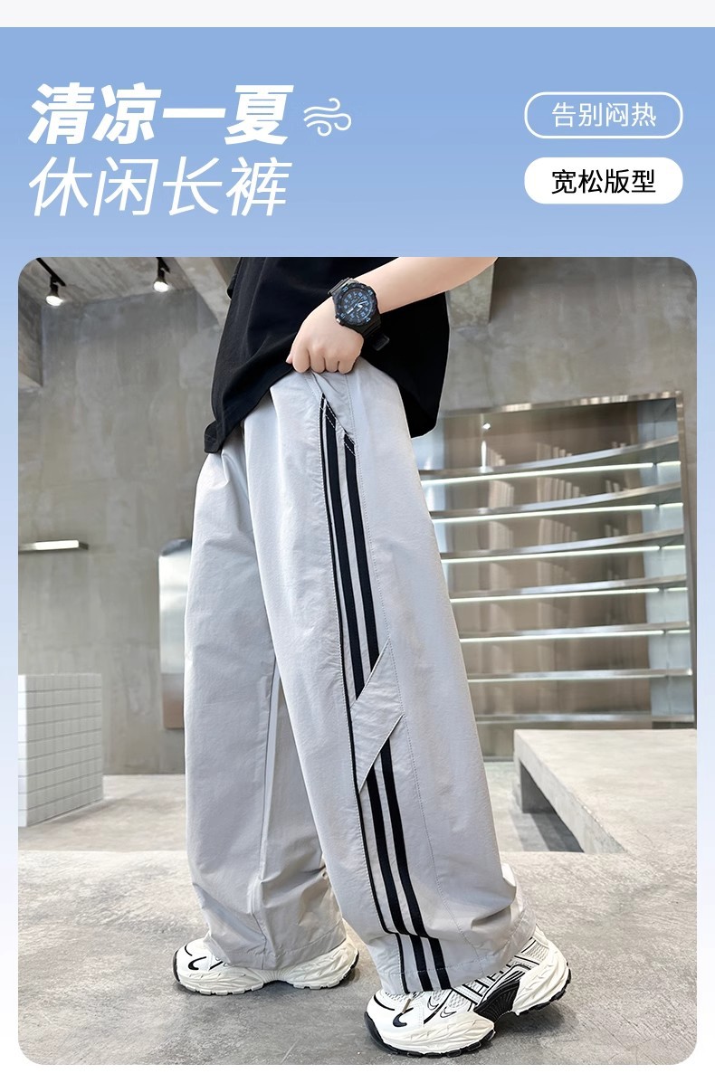 소년 여름 얇은 모기 방지 바지 2025 새로운 스타일 중대형 어린이 유행 줄무늬 캐주얼 바지 소년 느슨한 스트레이트 바지스토어 가기