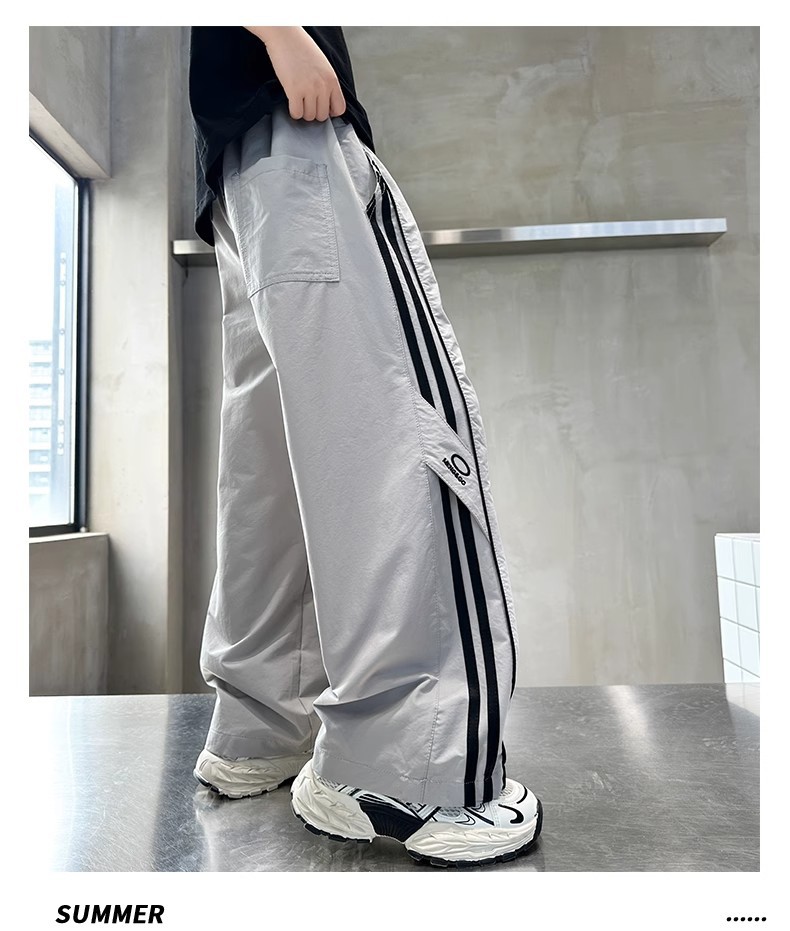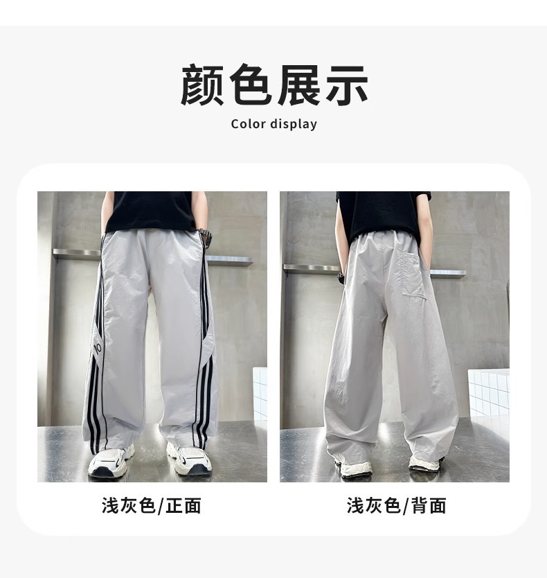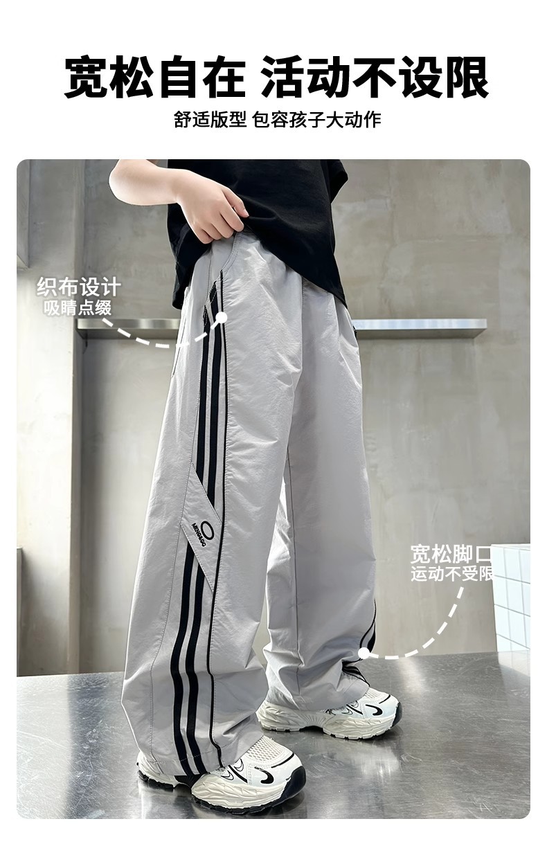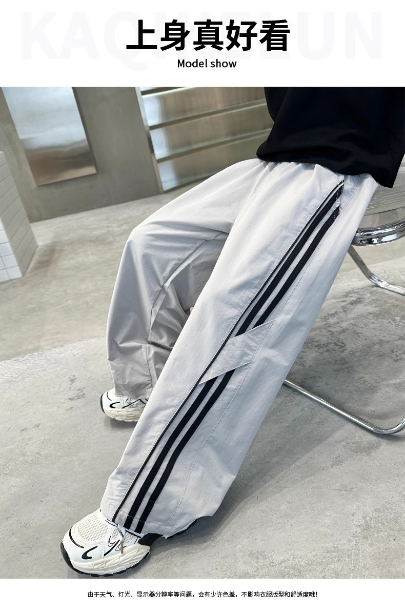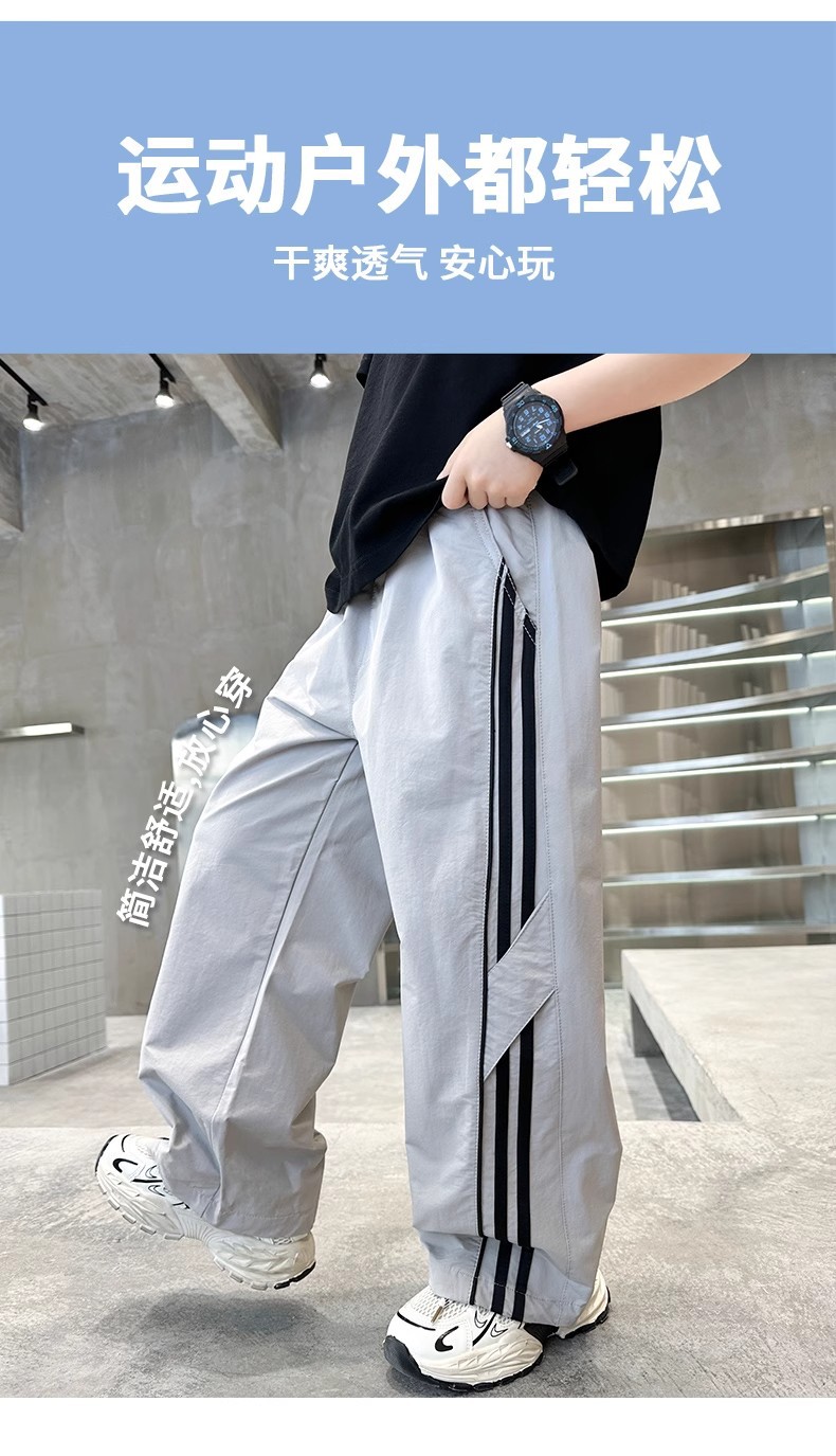 소년 여름 얇은 모기 방지 바지 2025 새로운 스타일 중대형 어린이 유행 줄무늬 캐주얼 바지 소년 느슨한 스트레이트 바지스토어 가기