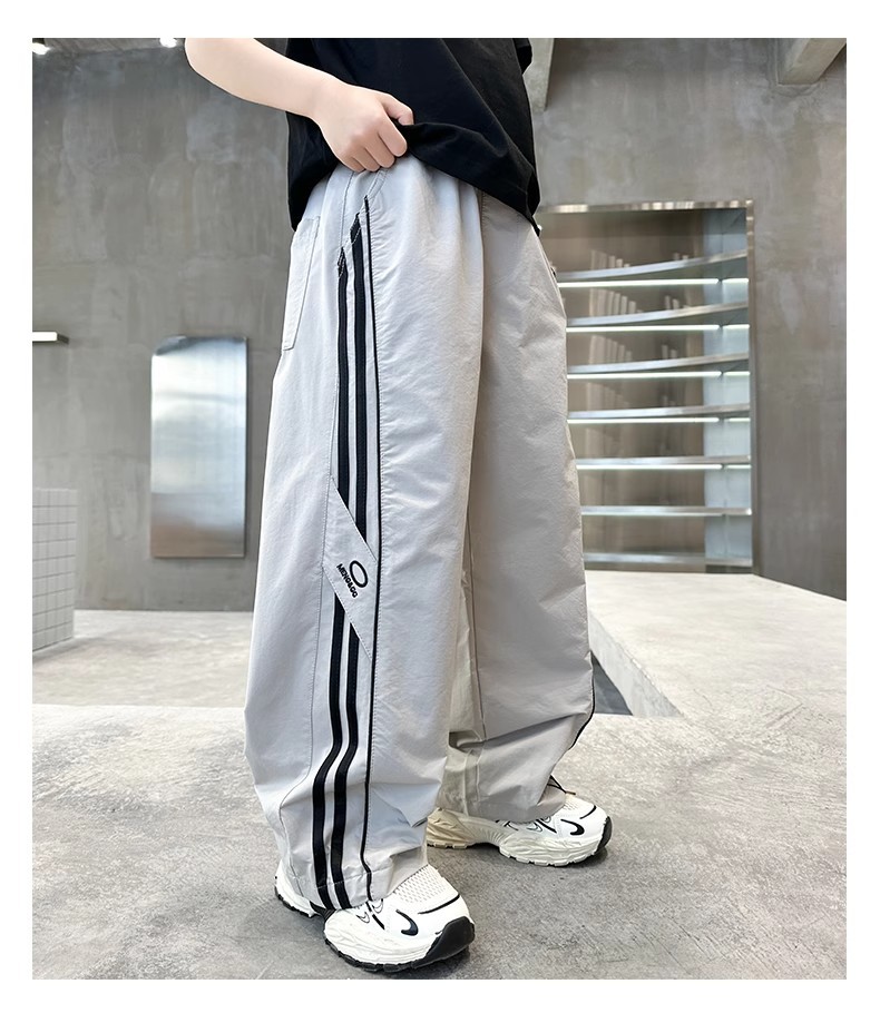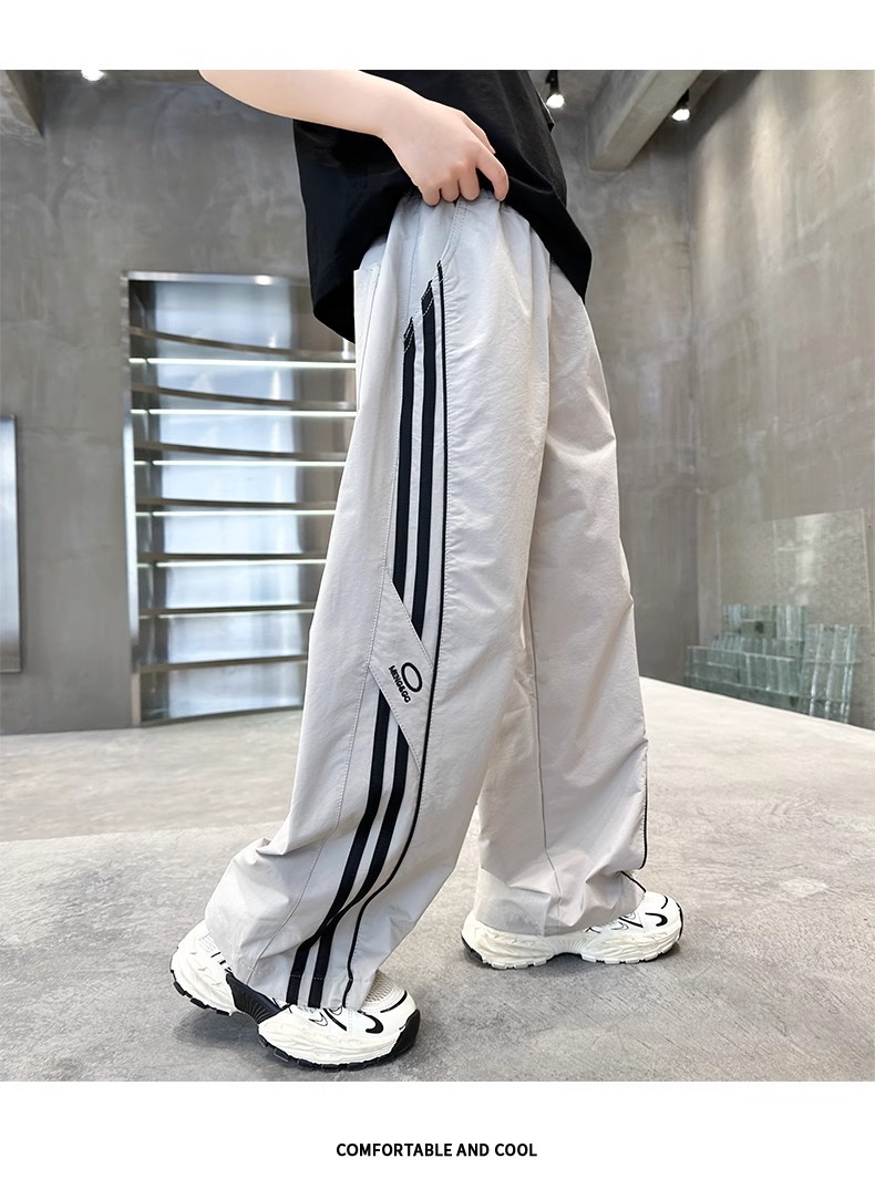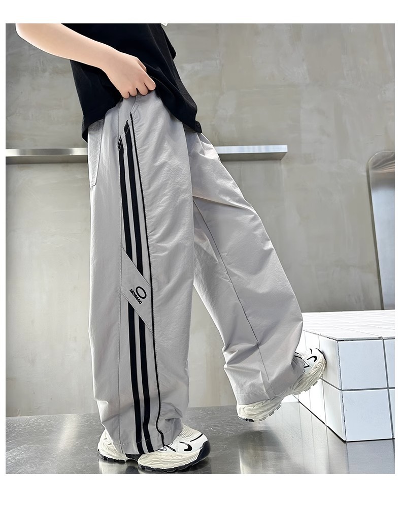 소년 여름 얇은 모기 방지 바지 2025 새로운 스타일 중대형 어린이 유행 줄무늬 캐주얼 바지 소년 느슨한 스트레이트 바지