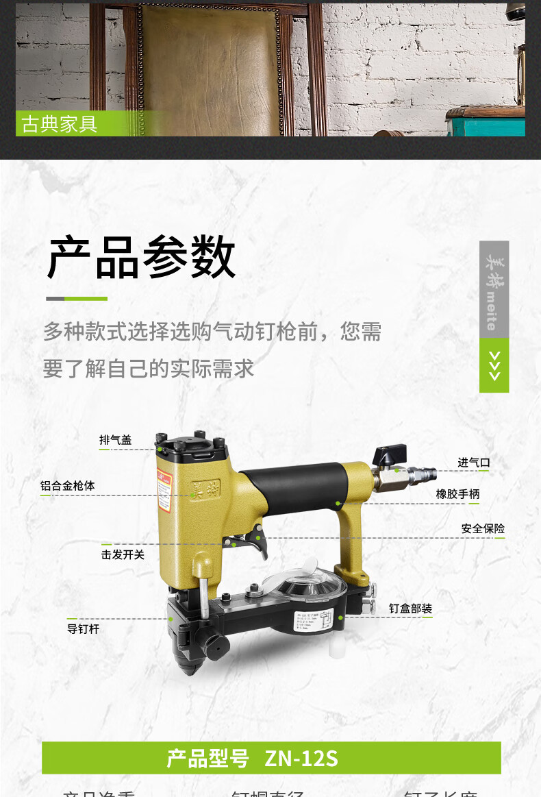 Meite 공압 못 박는 총, 완전 자동 못 박는 총, 구리 못 모자, 자동 못 박는 총