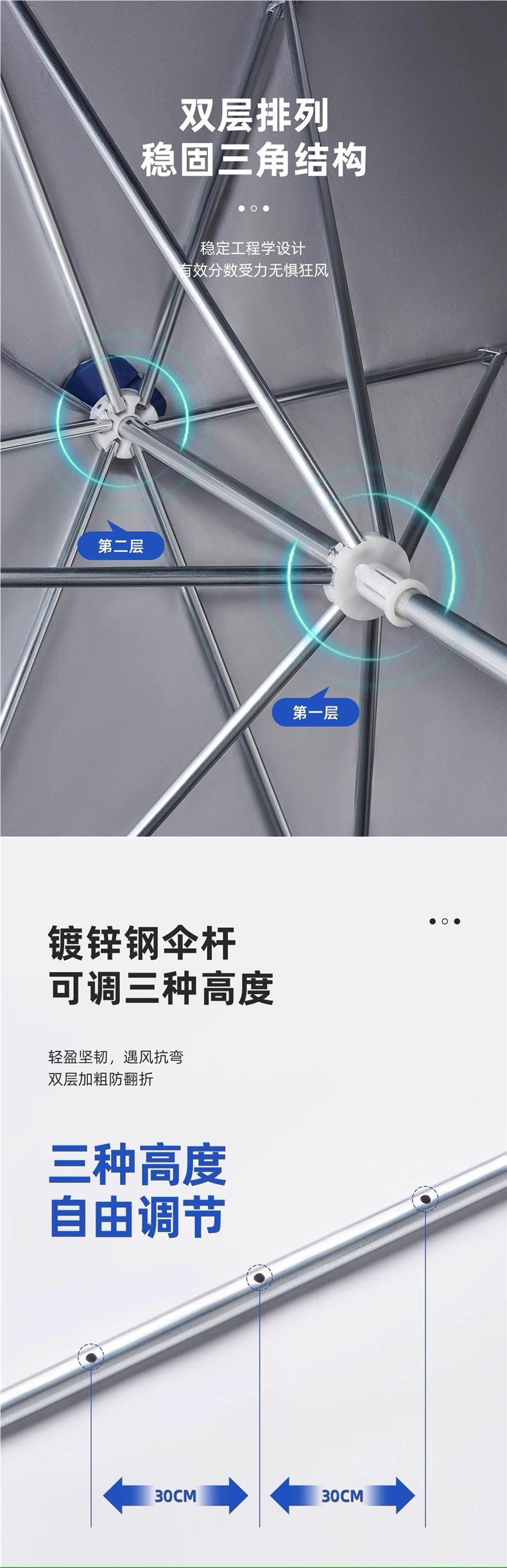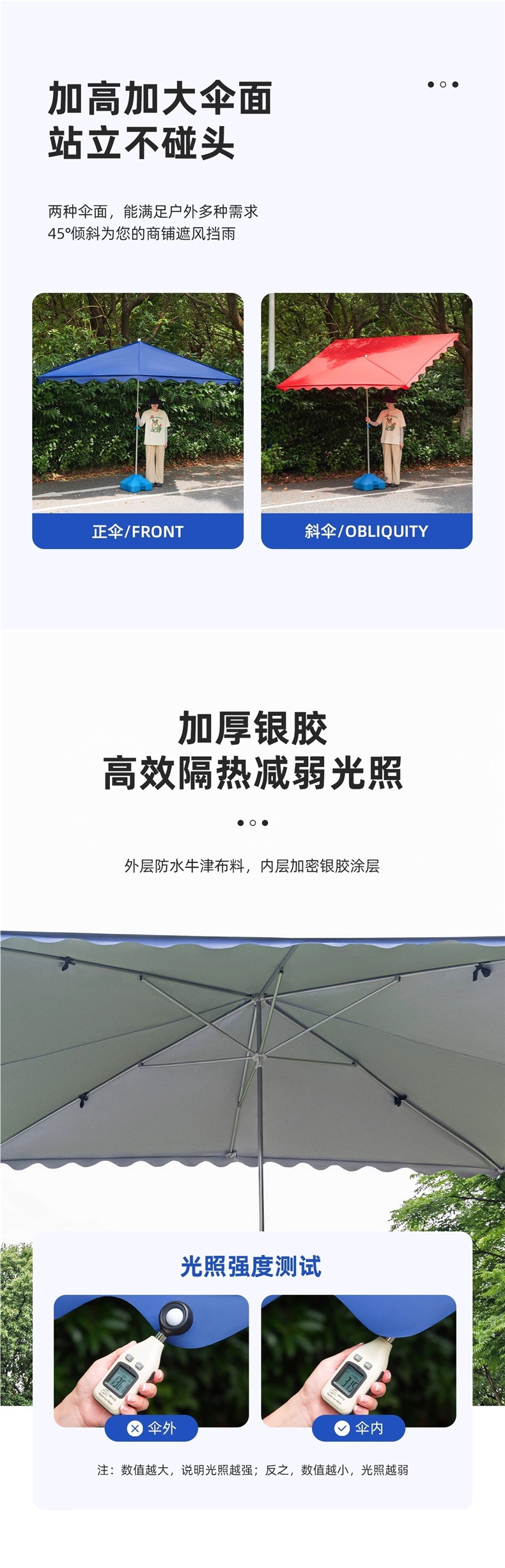 • 점장은 내구성을 높이기 위해 우산 갈비뼈를 두껍게 하는 것을 권장합니다.