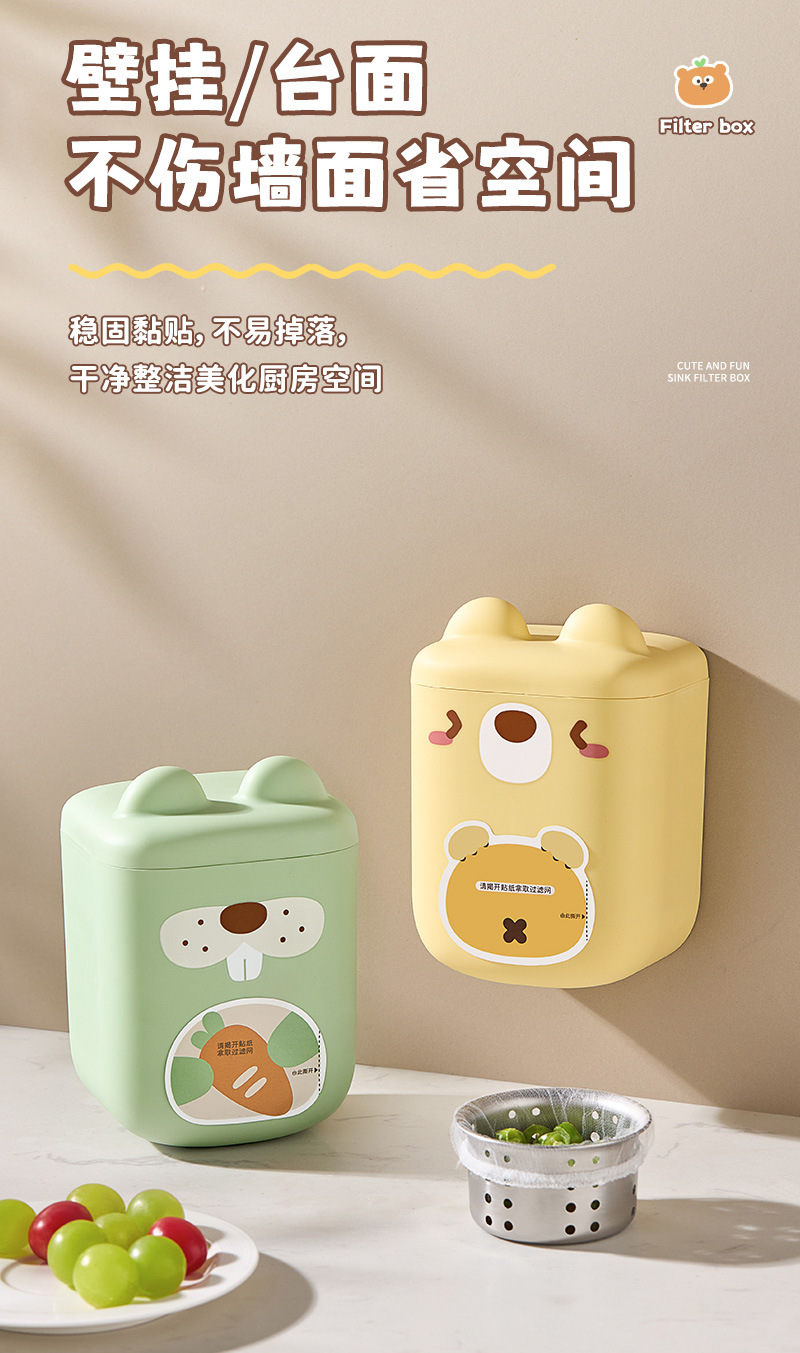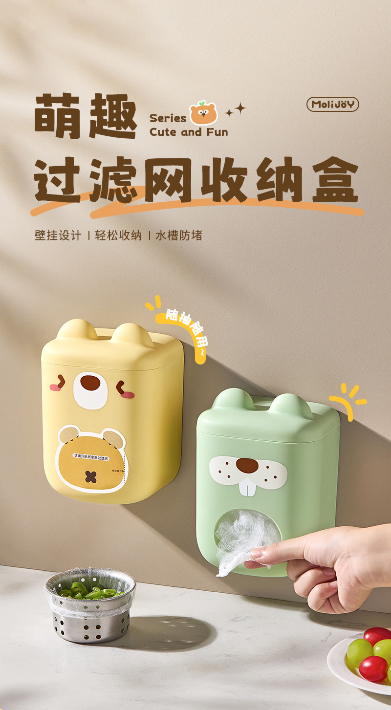 주방 일회용 싱크대 필터 보관함 벽걸이형 펀치 없는 탈착식 접착 필름 커버 보관 유물