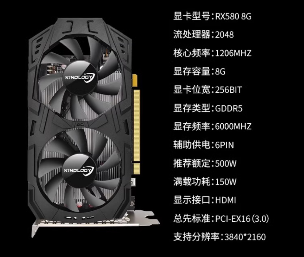 Kanogee RX580 RX590 8G 2048SP 단일 HDMI 인터페이스 하이엔드 그래픽 카드 치킨 그래픽 카드스토어 가기