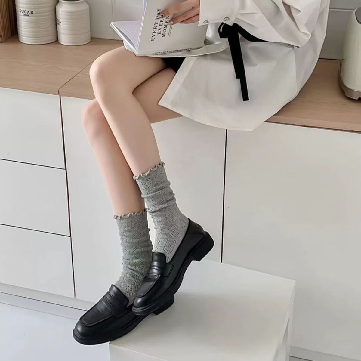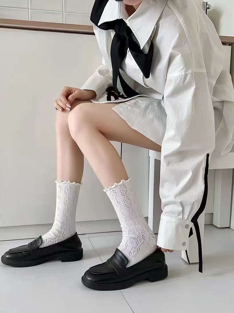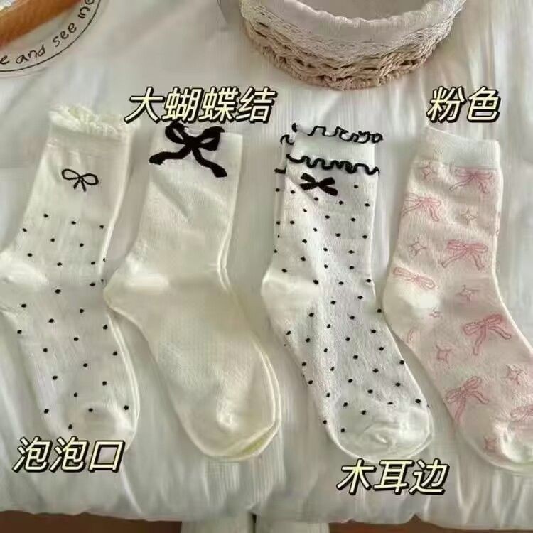 • 미드 종아리 양말 [레이스 보우 스타일]