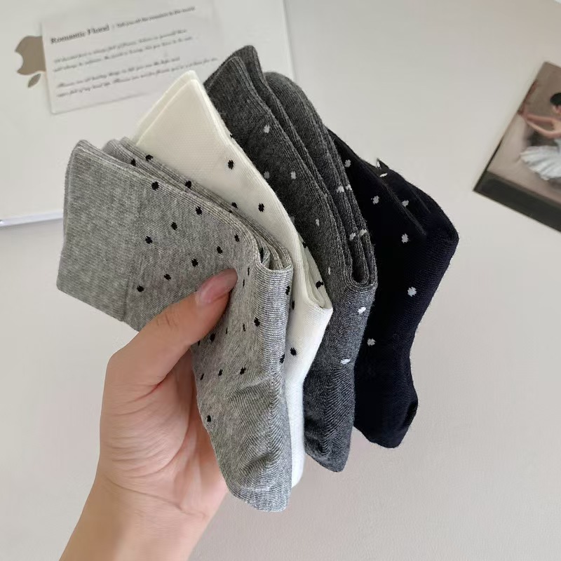 • 미드 종아리 양말 [솔리드 컬러 도트 양말]
