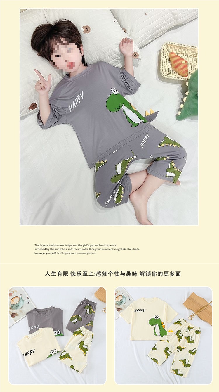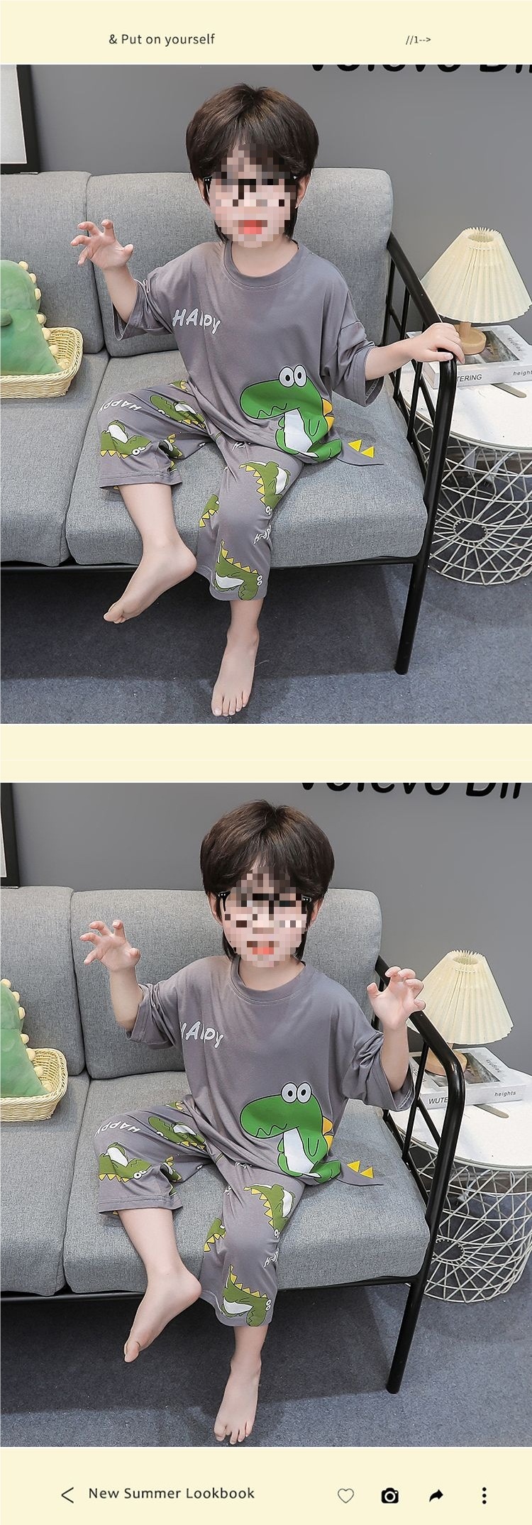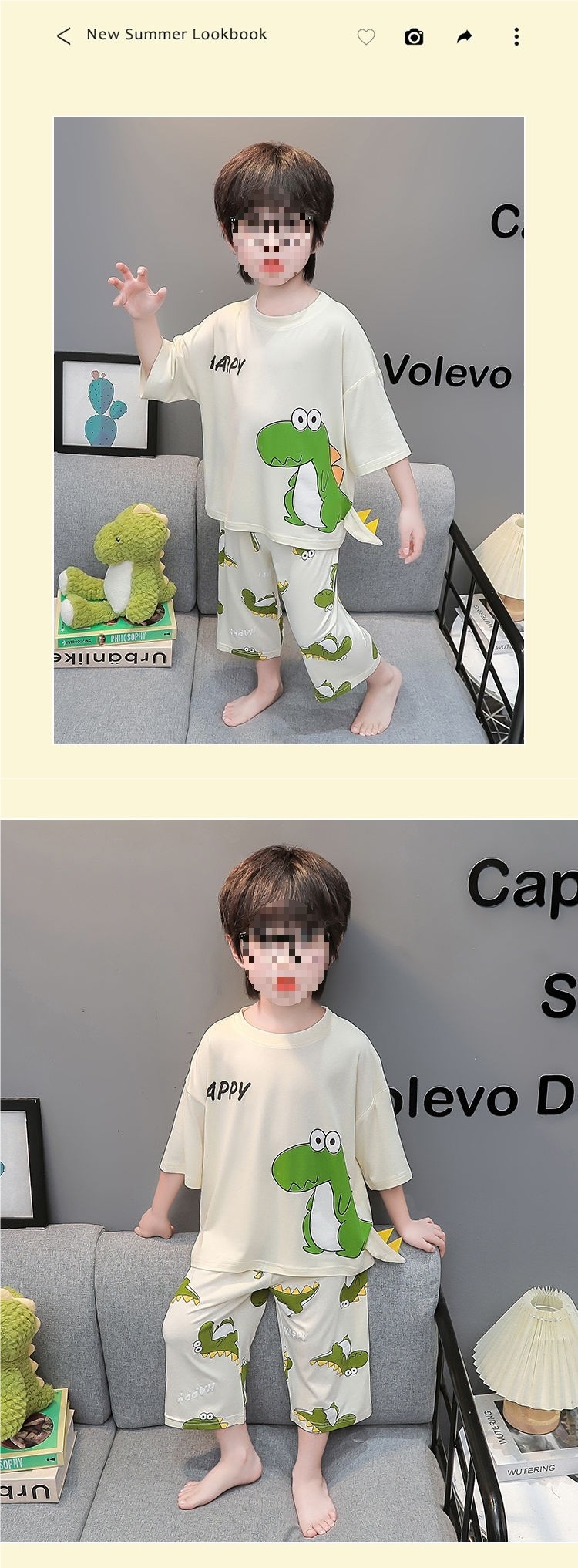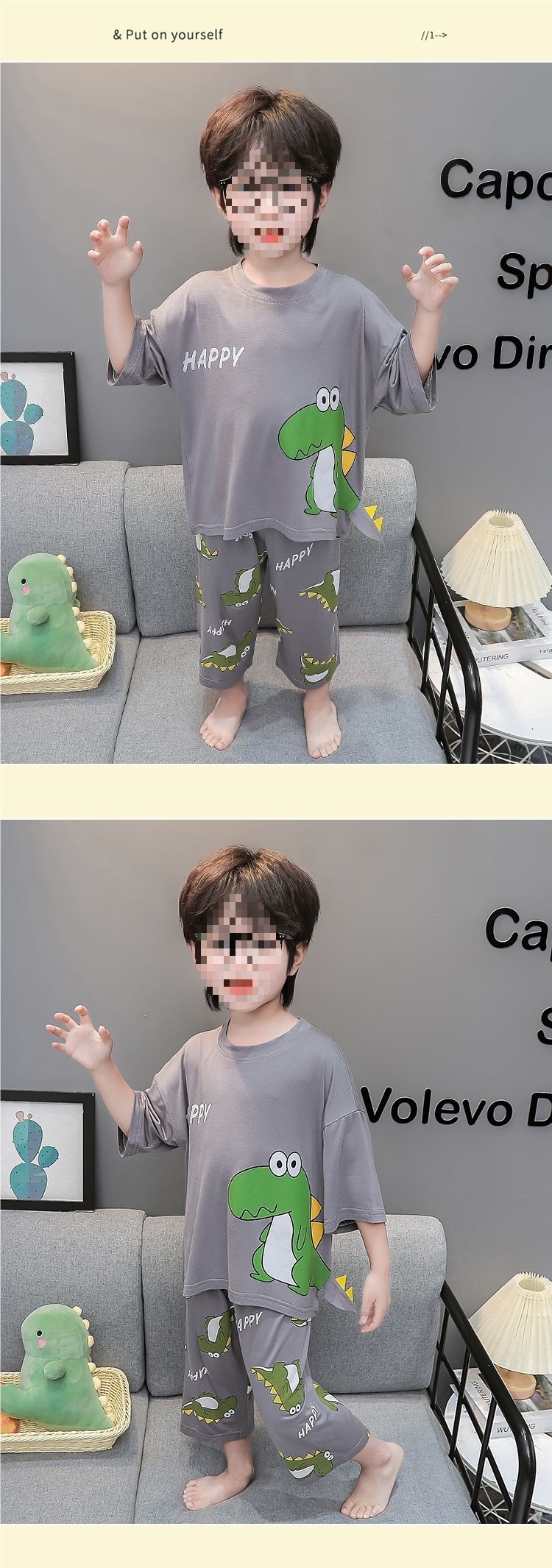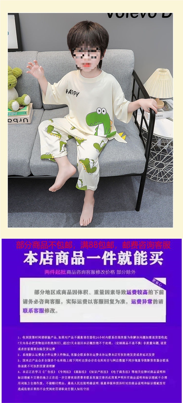 모달 어린이 잠옷 소년 에어컨 얇은 여름 7부 소매 만화 아기 소년 가정 의류 세트스토어 가기