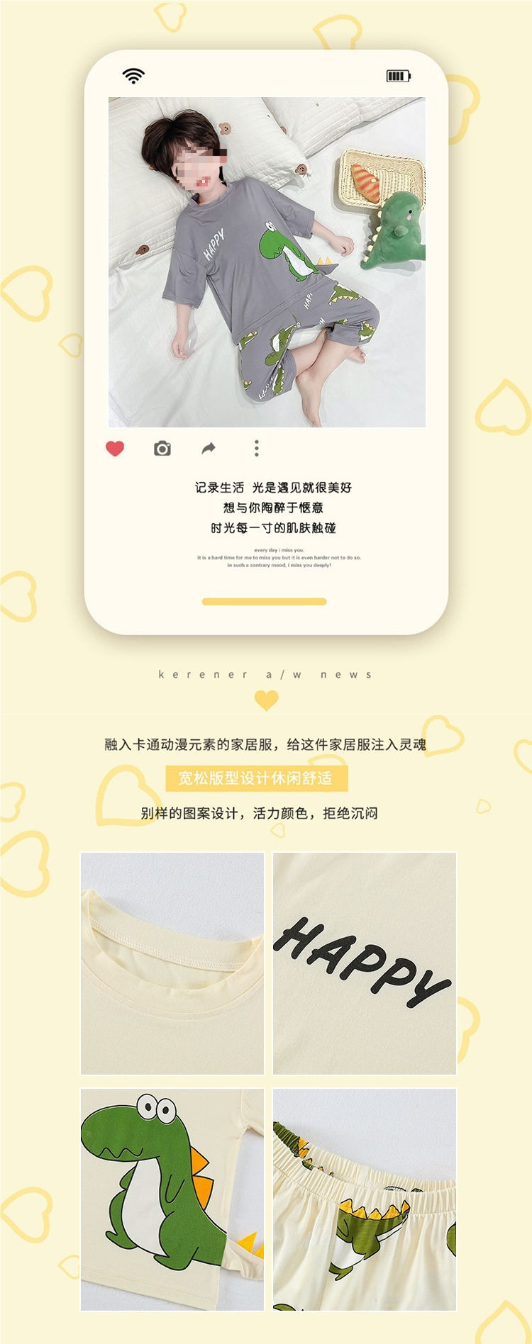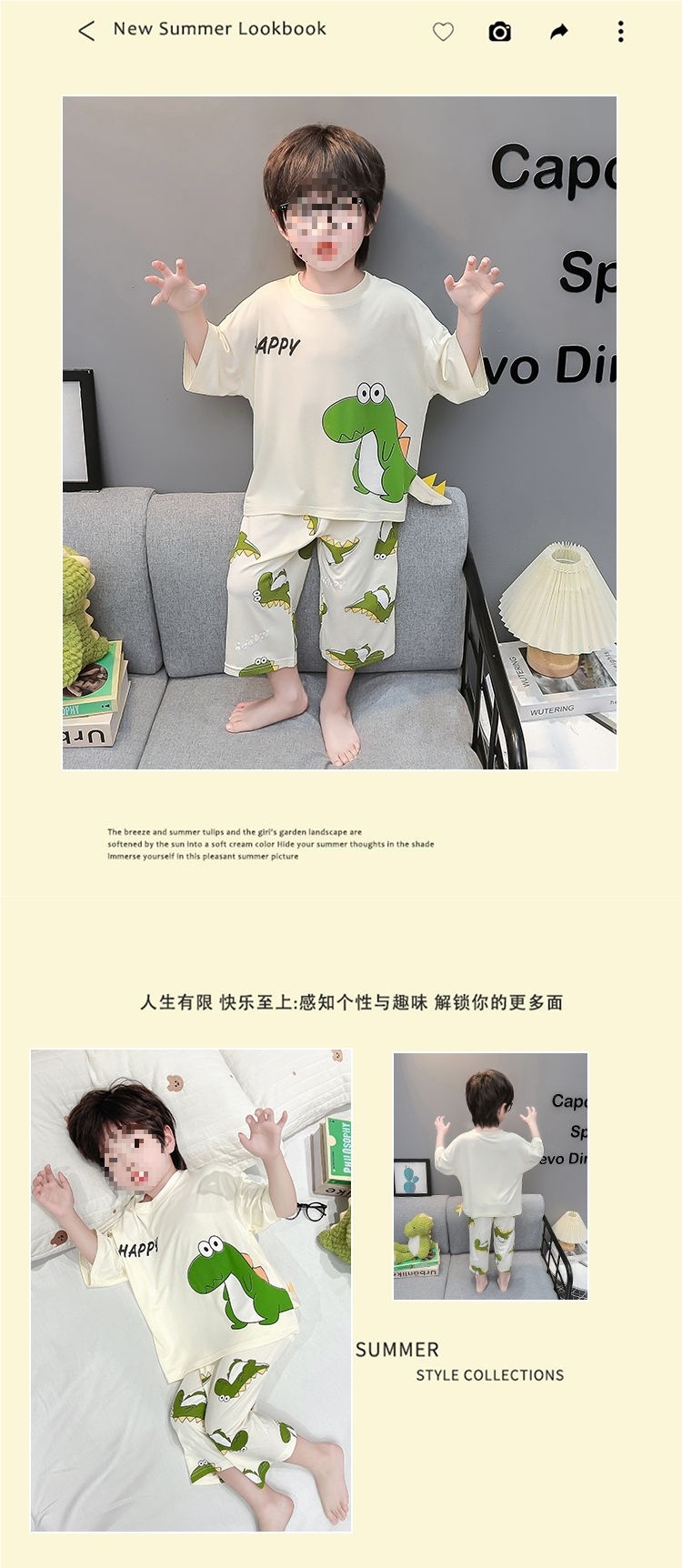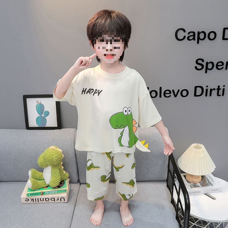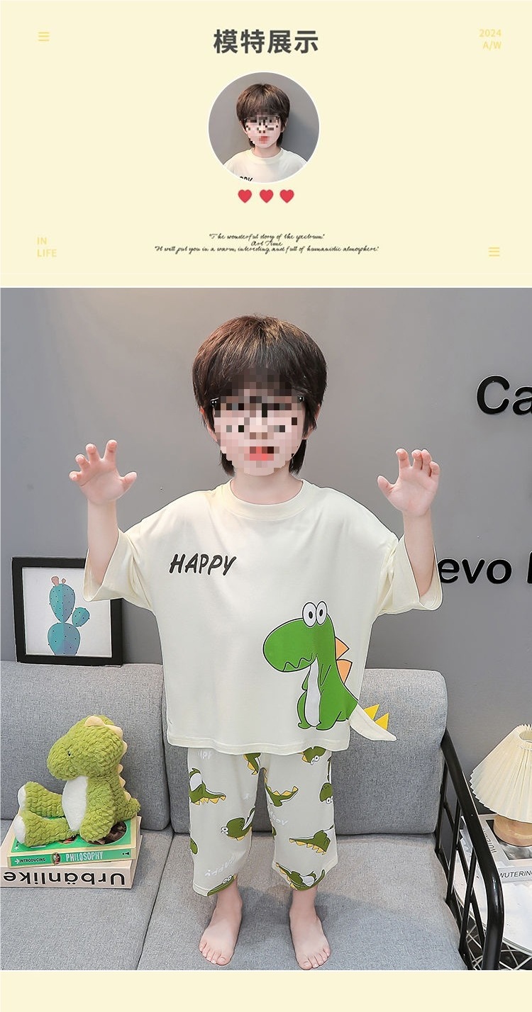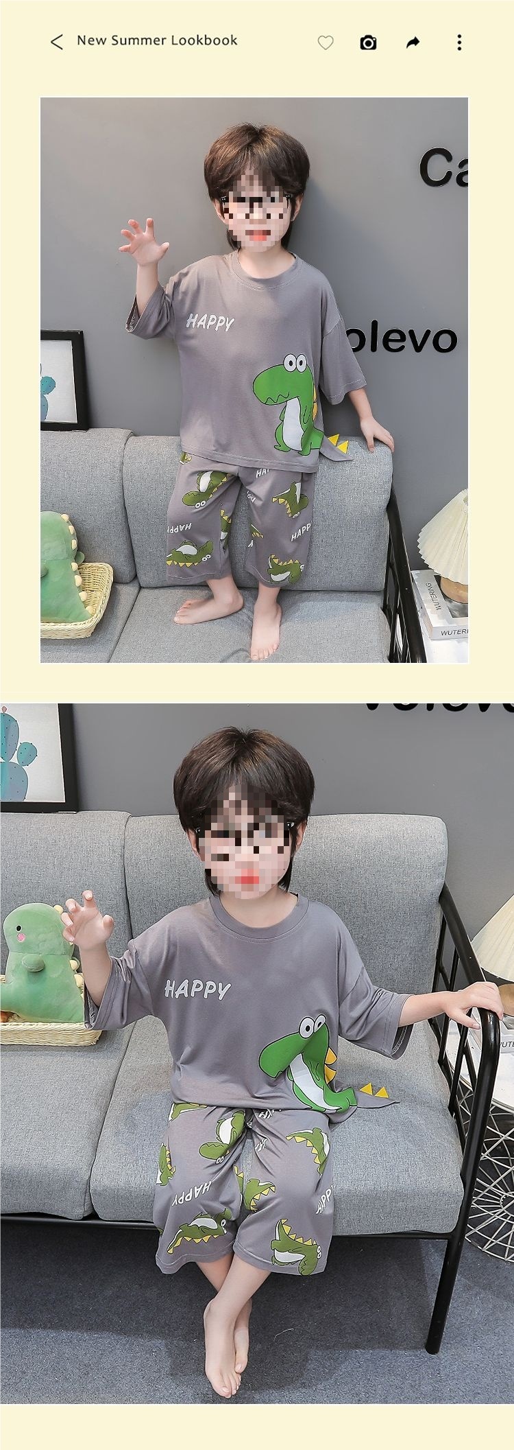 모달 어린이 잠옷 소년 에어컨 얇은 여름 7부 소매 만화 아기 소년 가정 의류 세트스토어 가기