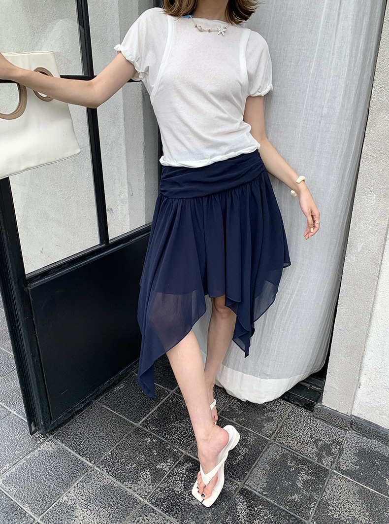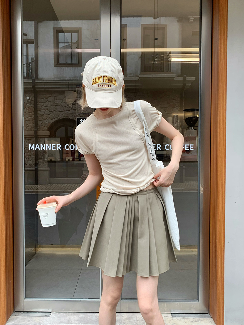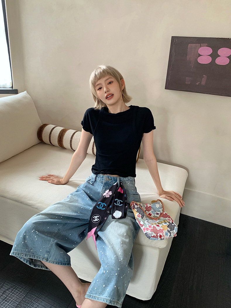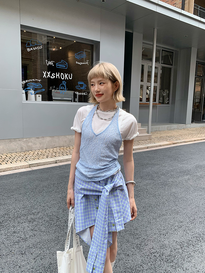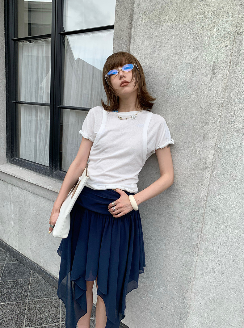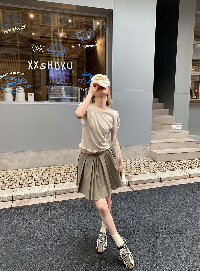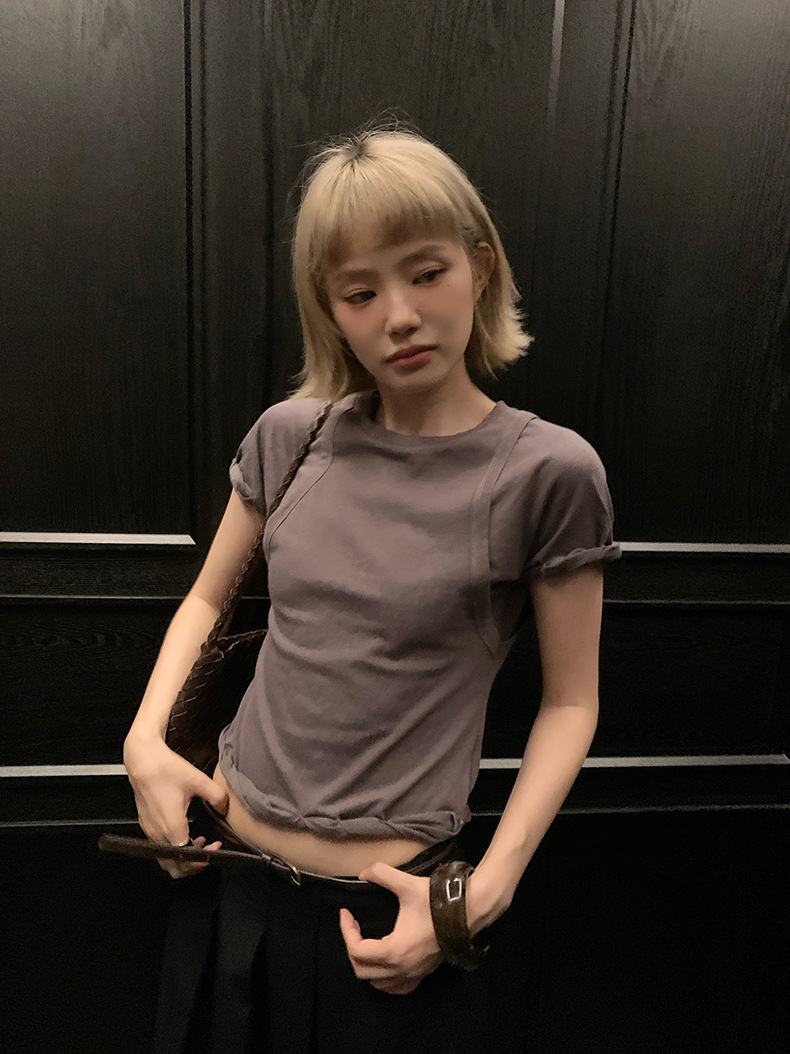 UNITY MODE 아메리칸 캐주얼 반팔 탑 슬리밍 여름 디자인 틈새 가짜 투피스 티셔츠 여성용스토어 가기