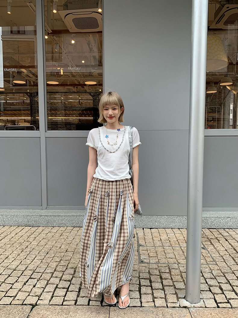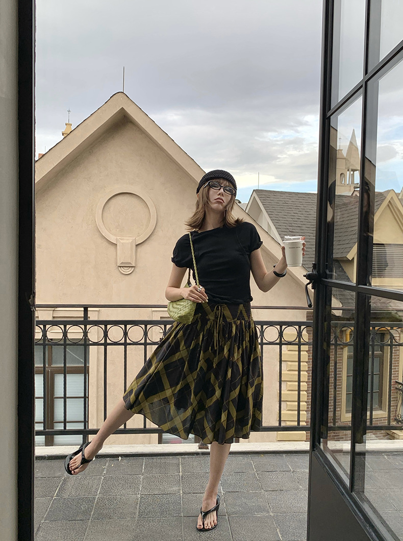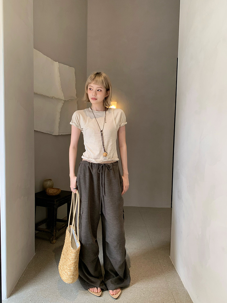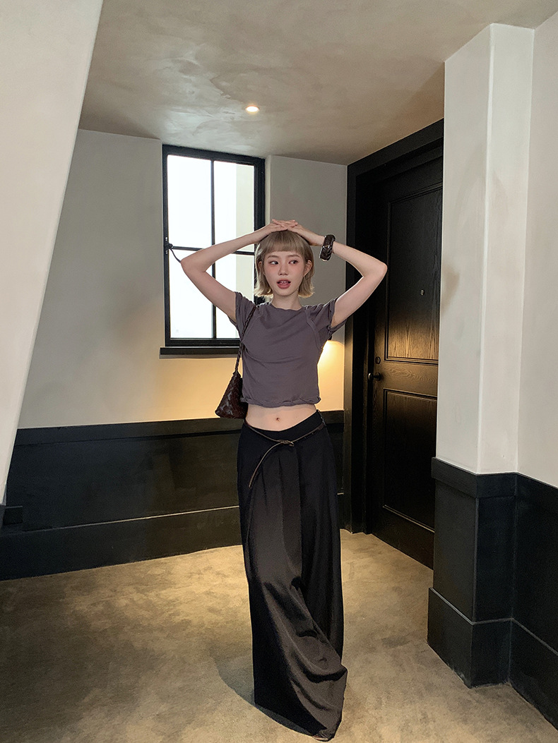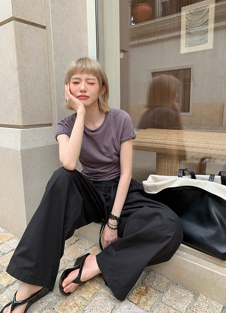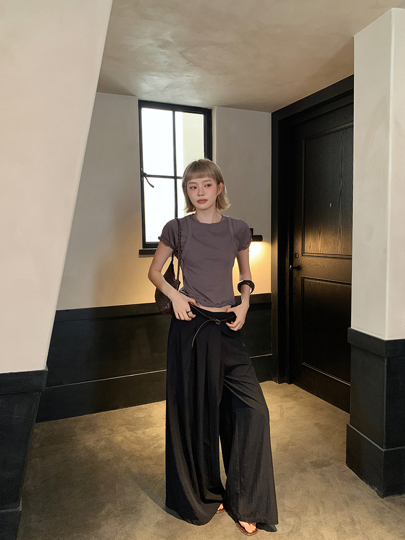 UNITY MODE 아메리칸 캐주얼 반팔 탑 슬리밍 여름 디자인 틈새 가짜 투피스 티셔츠 여성용스토어 가기