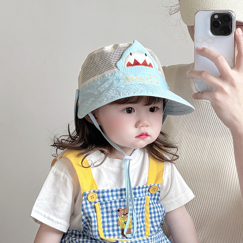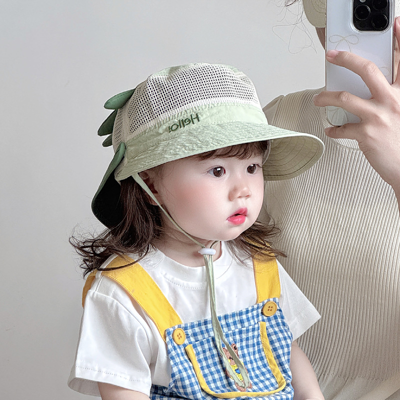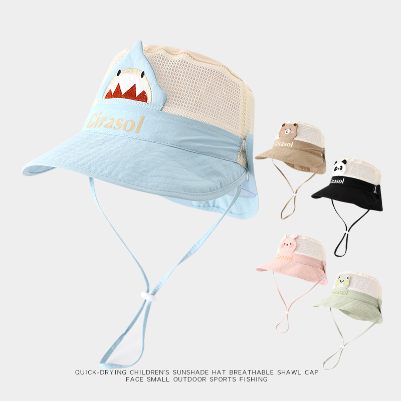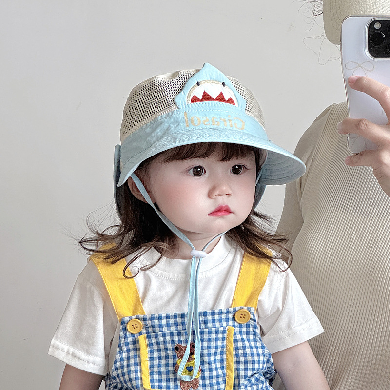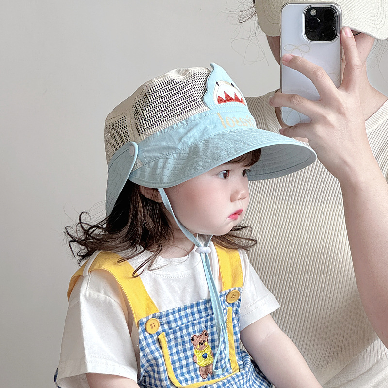 여름 아기 모자 얇은 통기성 태양 보호 태양 모자 만화 남성과 여성 어린이 야외 목도리 태양 어부 모자스토어 가기