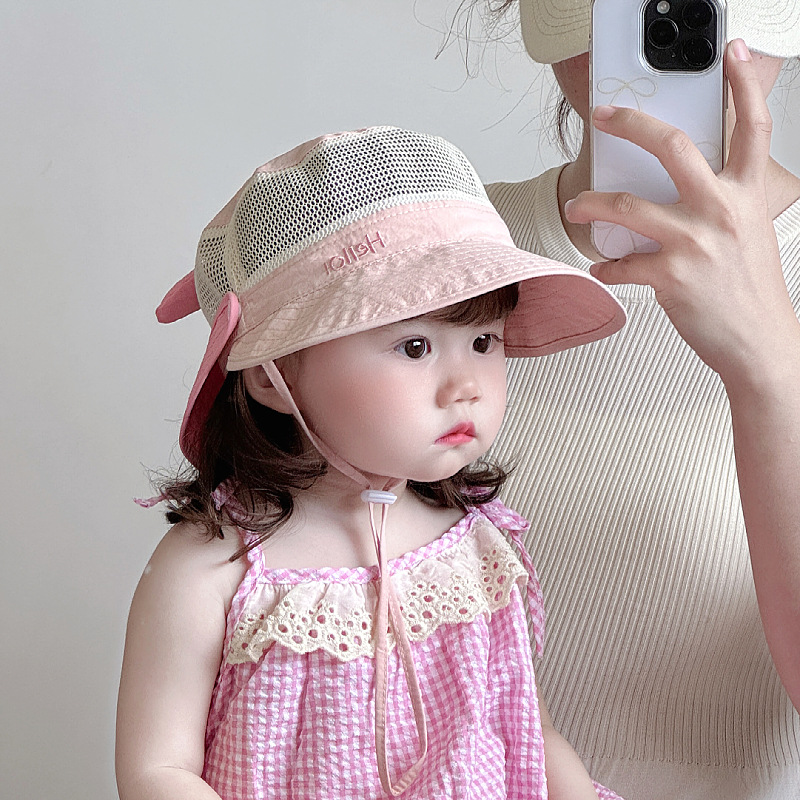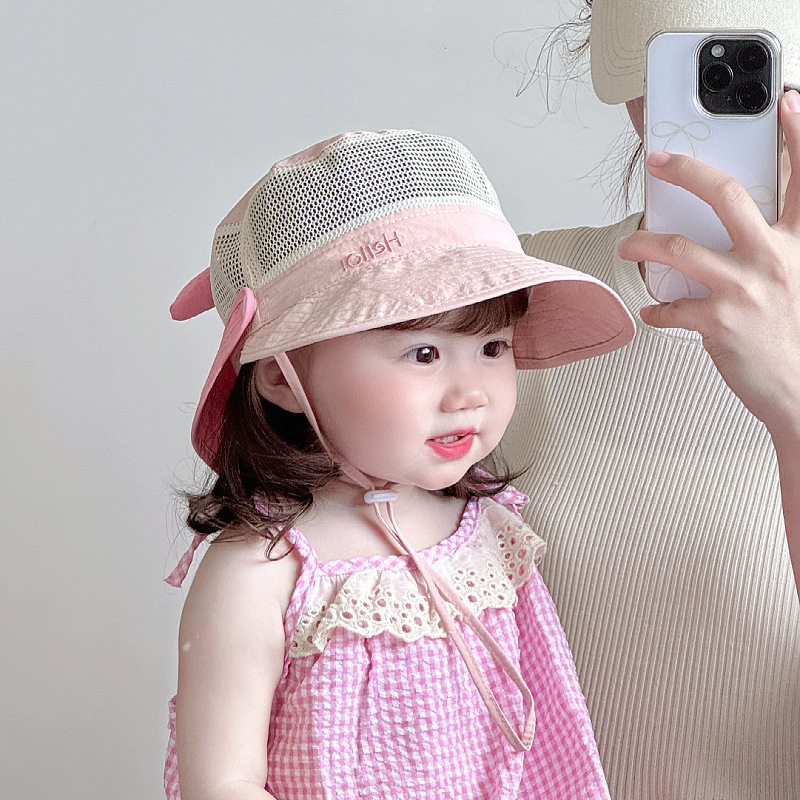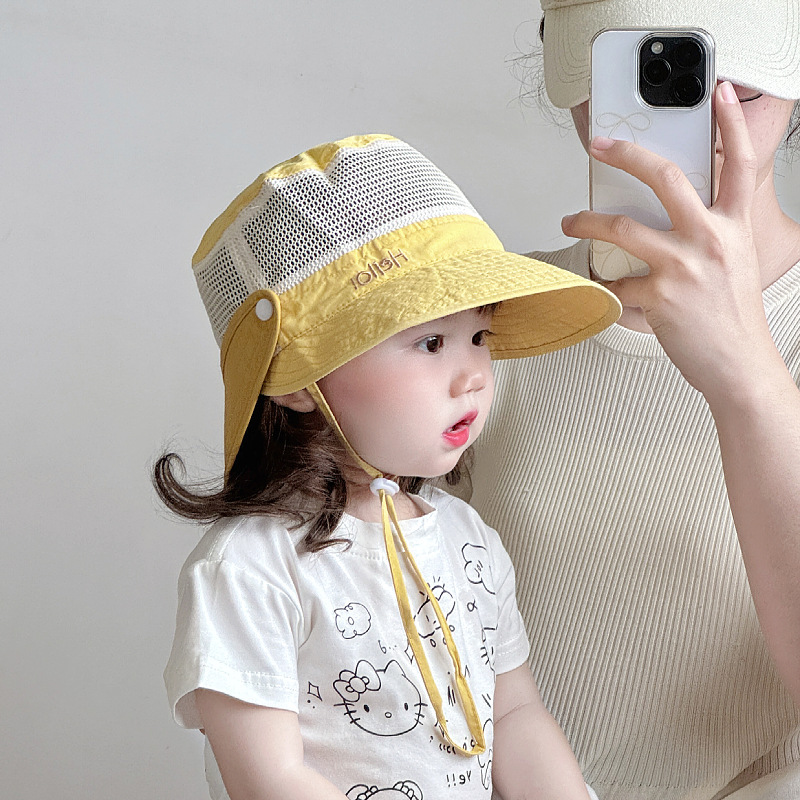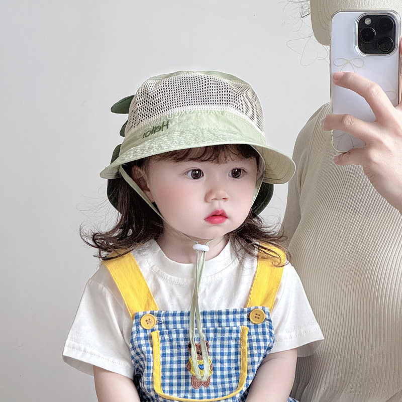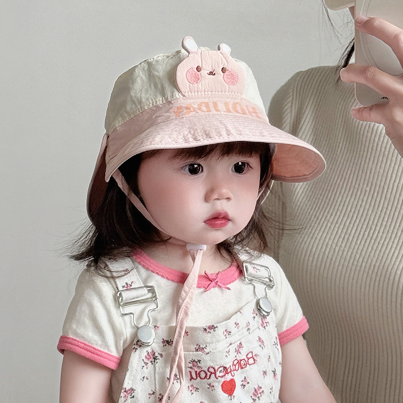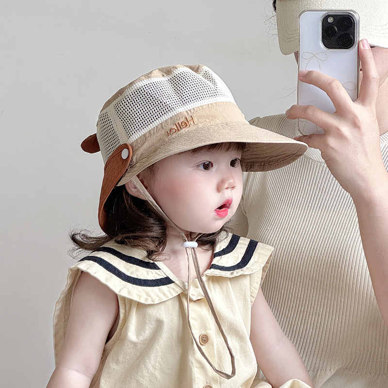 여름 아기 모자 얇은 통기성 태양 보호 태양 모자 만화 남성과 여성 어린이 야외 목도리 태양 어부 모자스토어 가기
