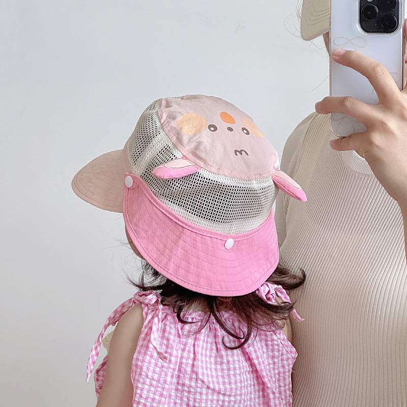 여름 아기 모자 얇은 통기성 태양 보호 태양 모자 만화 남성과 여성 어린이 야외 목도리 태양 어부 모자