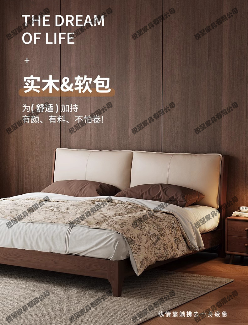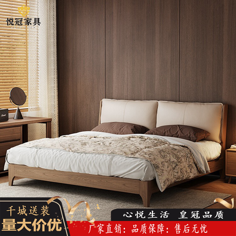 아스파라거스 원목 침대 호두색 더블 침대 소형 북유럽 모던 심플 1.8M 소프트백 대형 침대 수납 침대