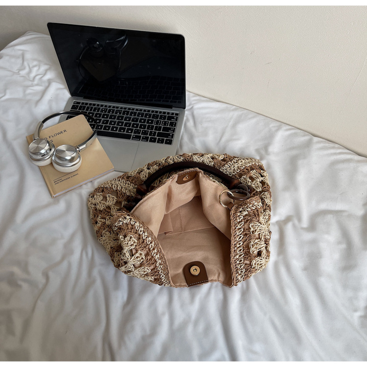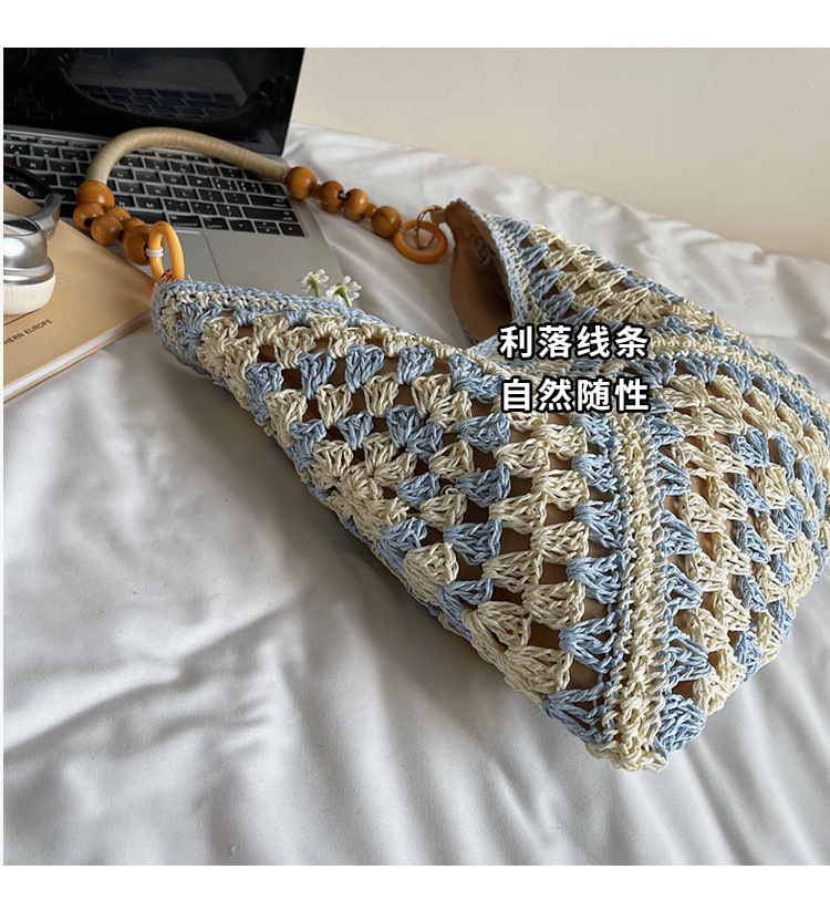여성을위한 여름 중공 밀짚 가방 2025 새로운 복고풍 나무 구슬 어깨 겨드랑이 가방 해변 휴가 스타일 비치 가방스토어 가기