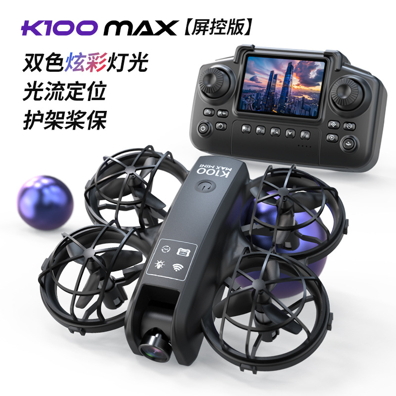 신제품 k100max 미니 항공 사진 화면 제어 드론 광학 흐름 위치 조명 완전 보호 쿼드콥터 크로스