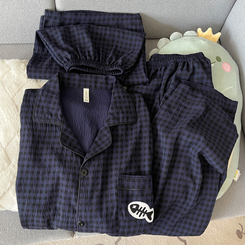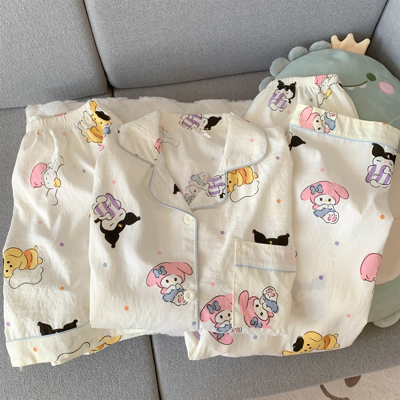 일본 helloKitty 클라우드 순수 코튼 거즈 커플 잠옷 여성 여름 반팔 남성 3 피스 홈웨어