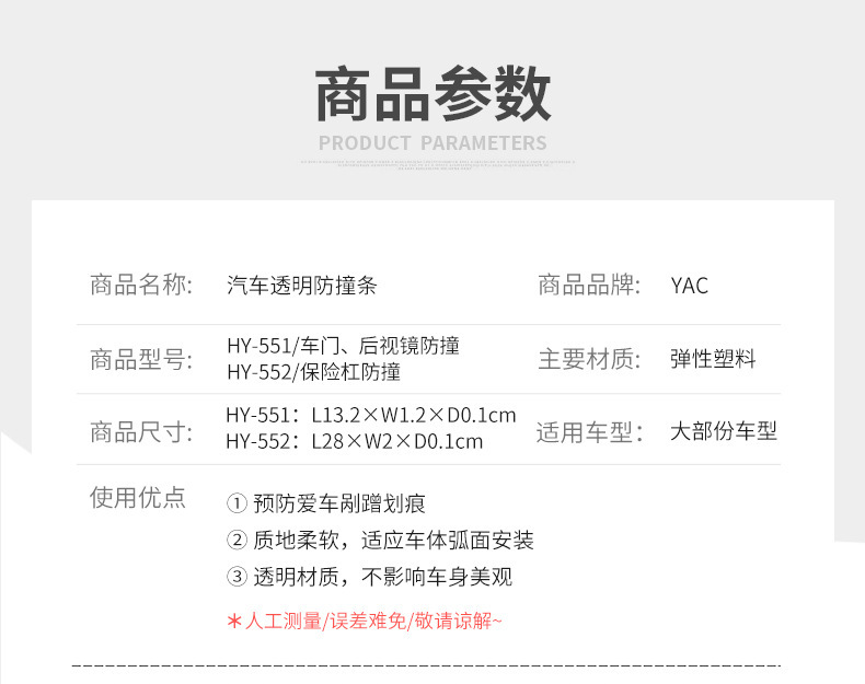 일본 YAC 자동차 도어 충돌 방지 스트립 범퍼 백미러 도어 가장자리 긁힘 방지 투명 보이지 않는 보호 스티커