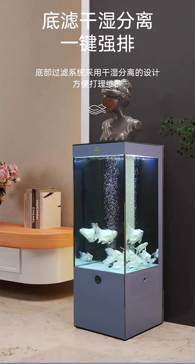 거실용 세련된 바닥에서 천장까지 물을 갈아들이지 않는 초백색 유리 필터 건식 및 습식 분리 가정용 어류 양식 스마트 수조