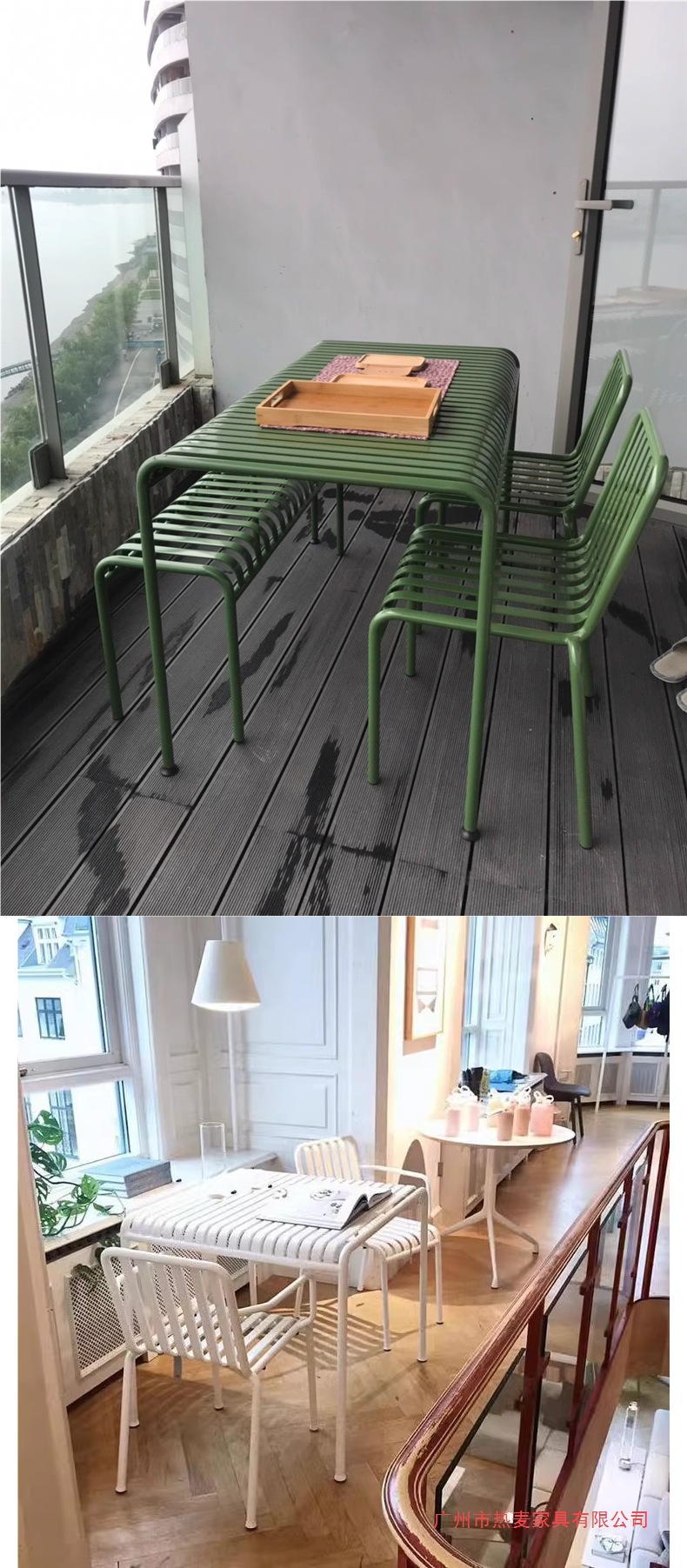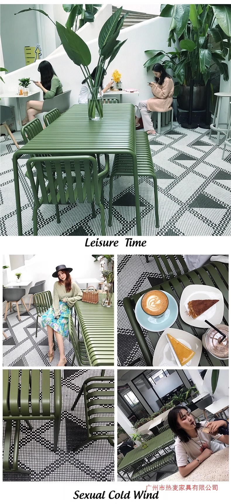 현대적인 간단한 레저 안뜰 발코니 야외 테이블과 의자 야외 밀크 티 숍 카페 컬러 철 테이블과 의자 조합
