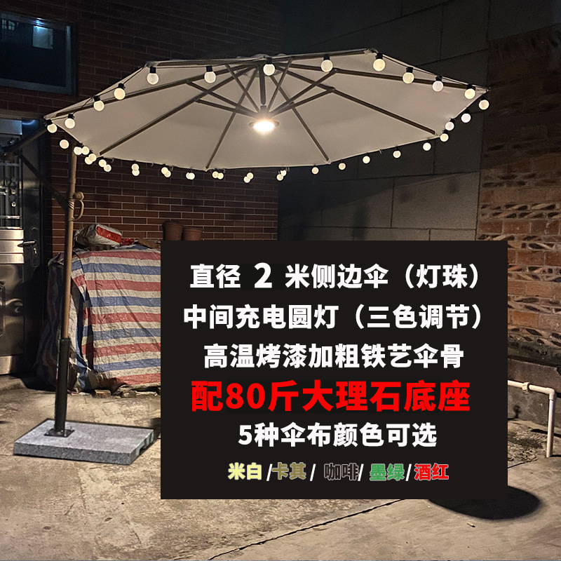 • [라이트 포함, 기본 모델] 직경 측면 2.7m 더블 상단(오프화이트) + 40kg 대리석 베이스