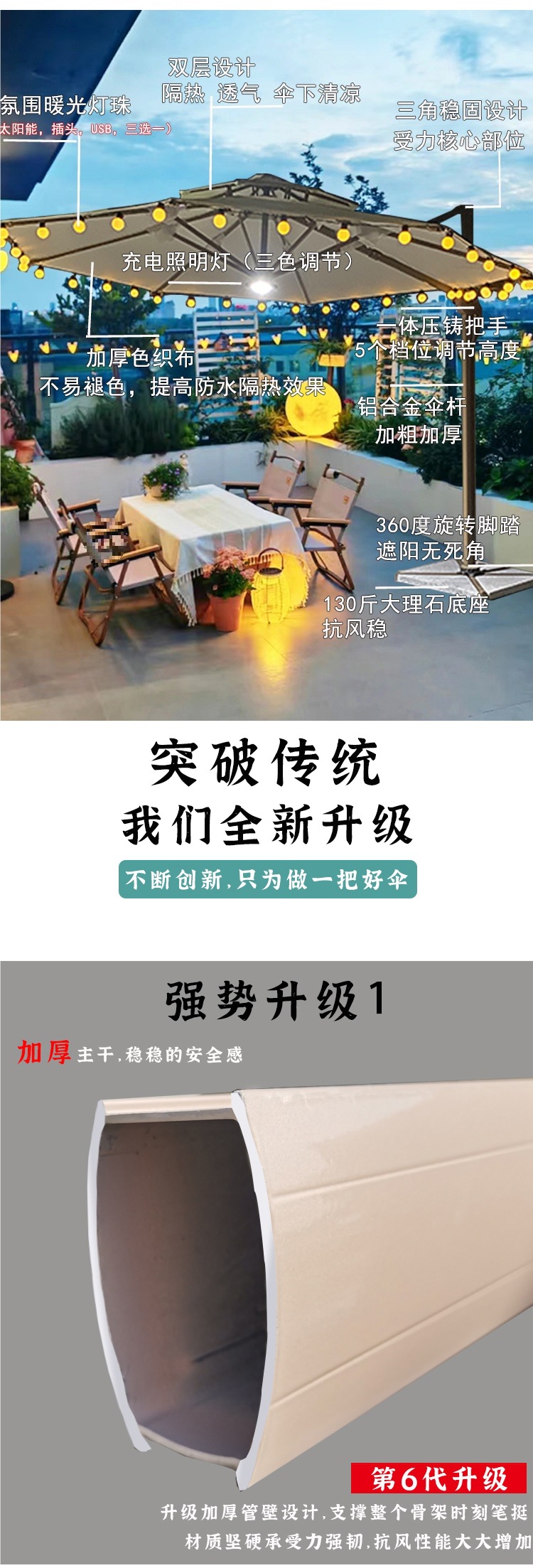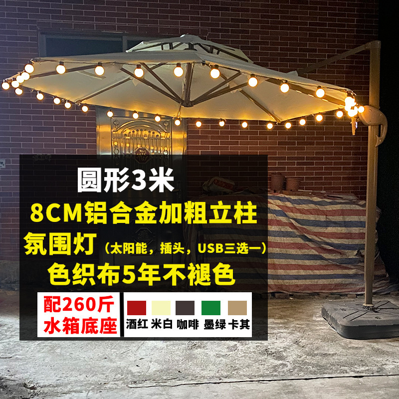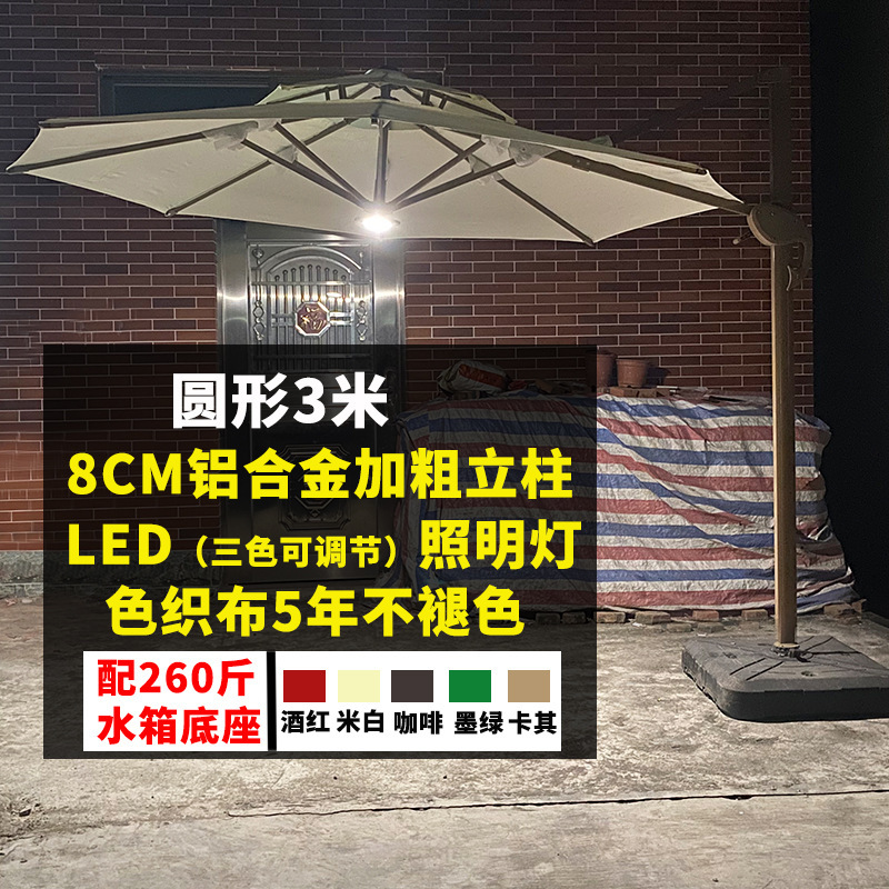 • [베이스 없음] [라이트 포함 + 기본 모델] 직경 2.7m 싱글 탑 센터 컬럼 우산