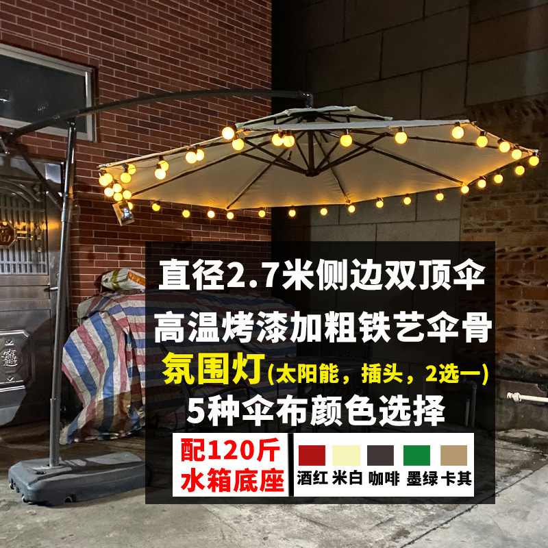 • [라이트 포함, 기본 모델] 직경 2.7m 더블 탑 센터 컬럼 우산(오프화이트) + 22KG 물탱크 베이스