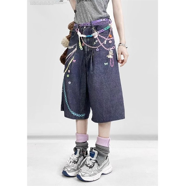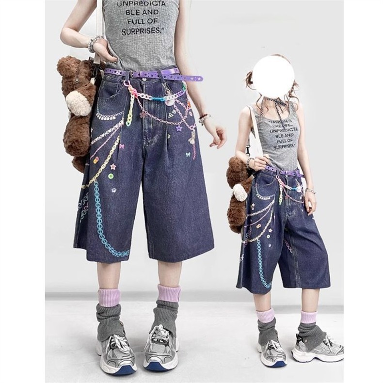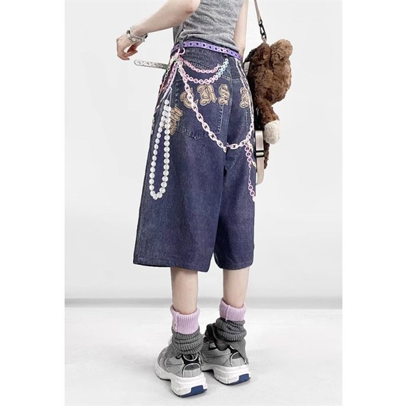 미국 복고풍 y2k 데님 크롭 팬츠 여성 밀레니엄 애비 루즈 와이드 레그 무릎 위 컬러 핫 소녀 캐주얼 다용도스토어 가기