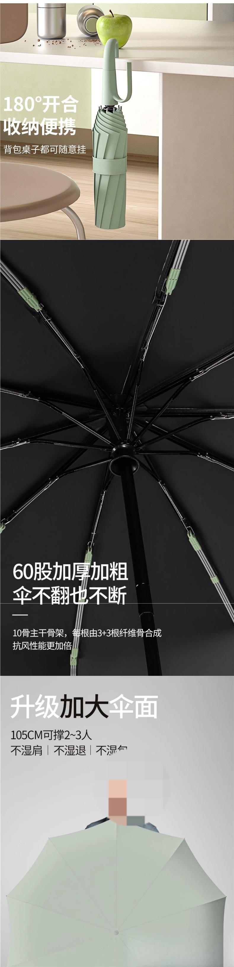 • 24개 뼈 - 말차 그린 방풍 + 나노 소수성 + 확대된 강화 우산 프레임