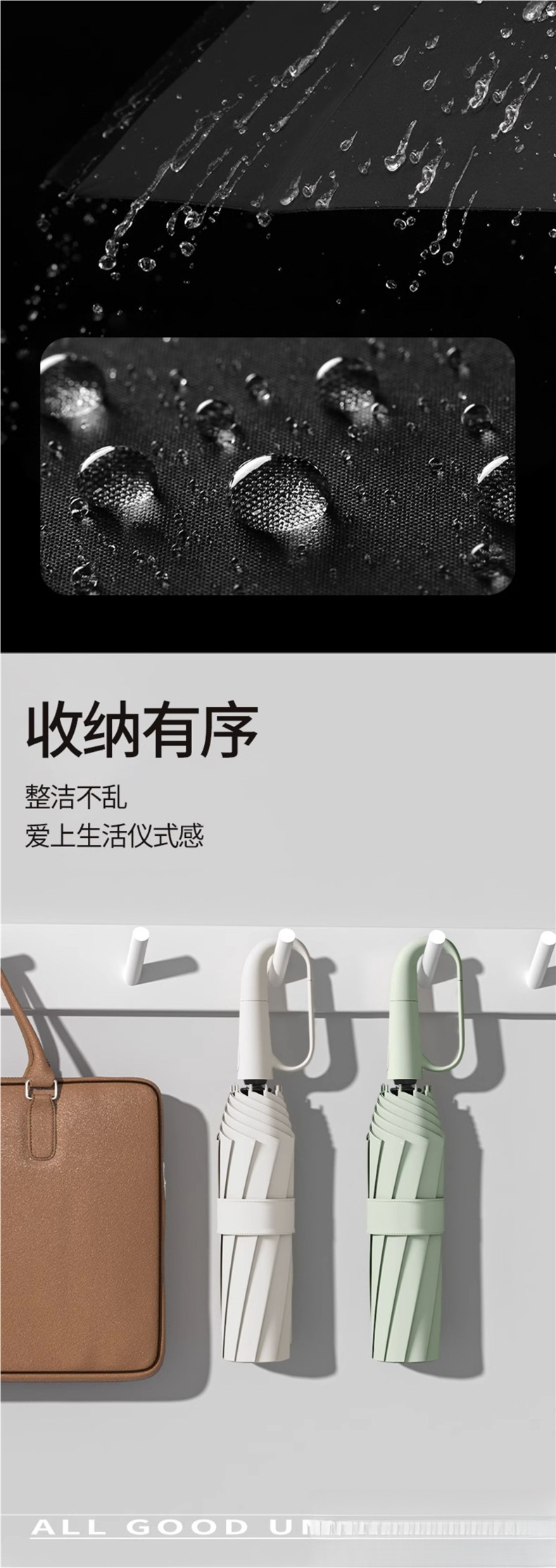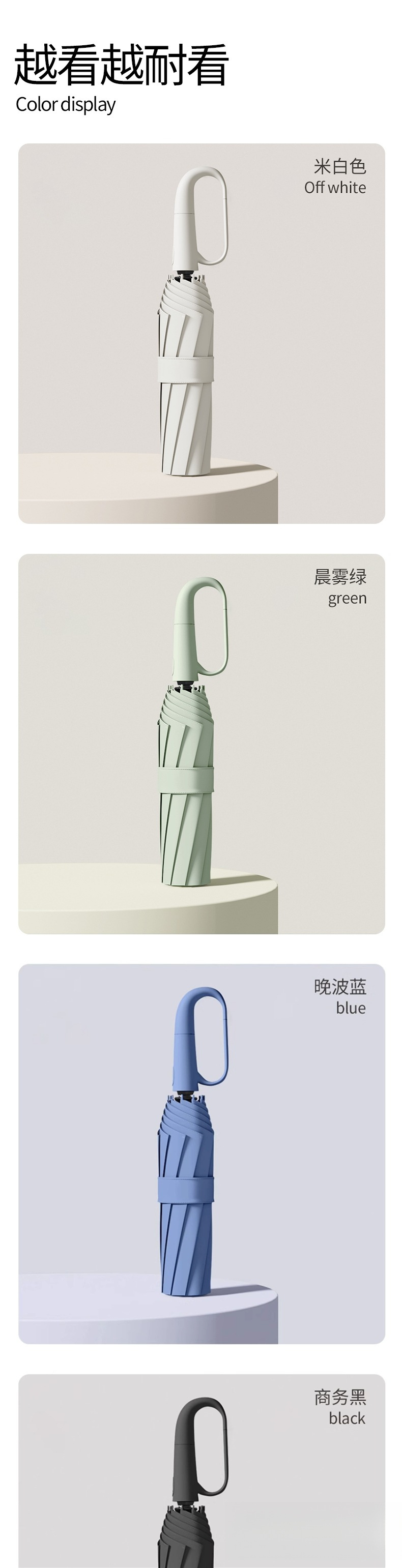 • 24개 뼈 - 빙복숭아 가루로 폭풍우에도 견딜 수 있음 + 나노 소수성 + 확대 및 강화된 우산 프레임