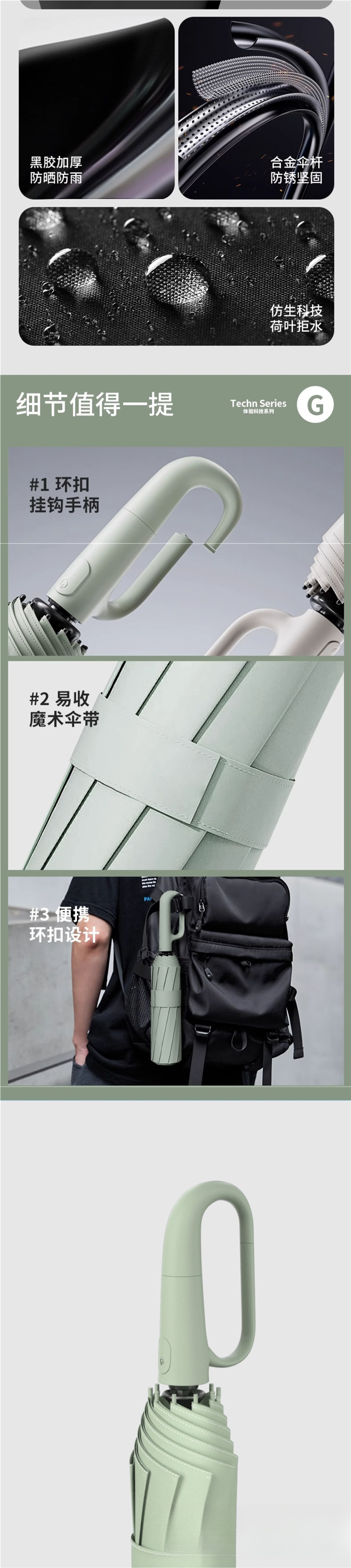 • 리버스 모닝 미스트 그린 [휴대용 링 버클 + 리버스 비습식 + 향상된 바람 저항]