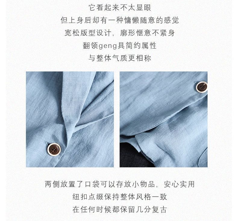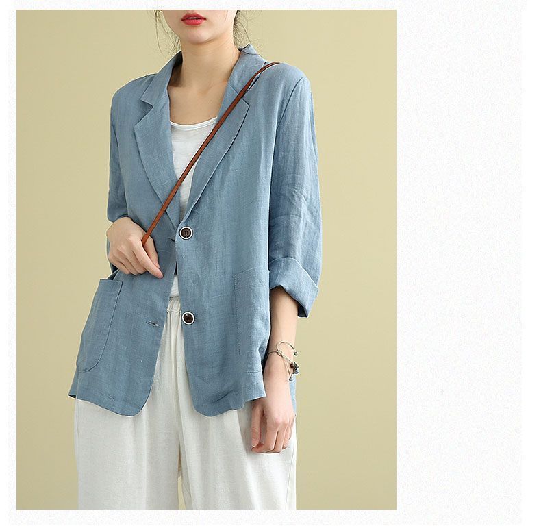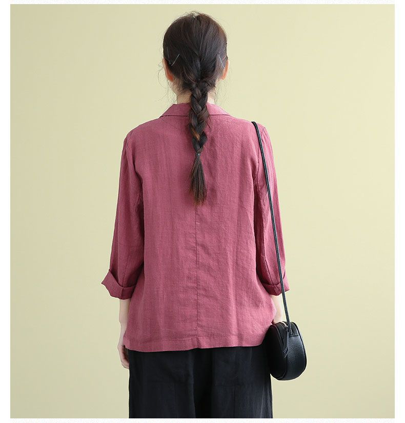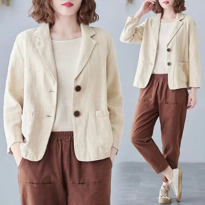 여성을위한 면화 및 린넨 정장 짧은 재킷 2025 봄, 가을 새로운 스타일 예술적 대형 루즈 캐주얼 긴팔 작은 정장 탑