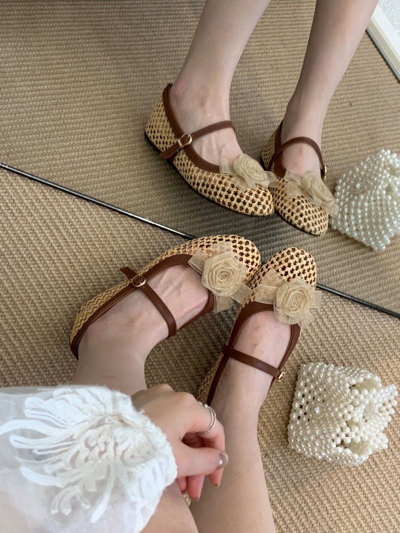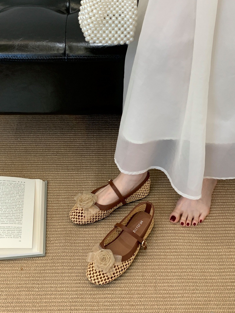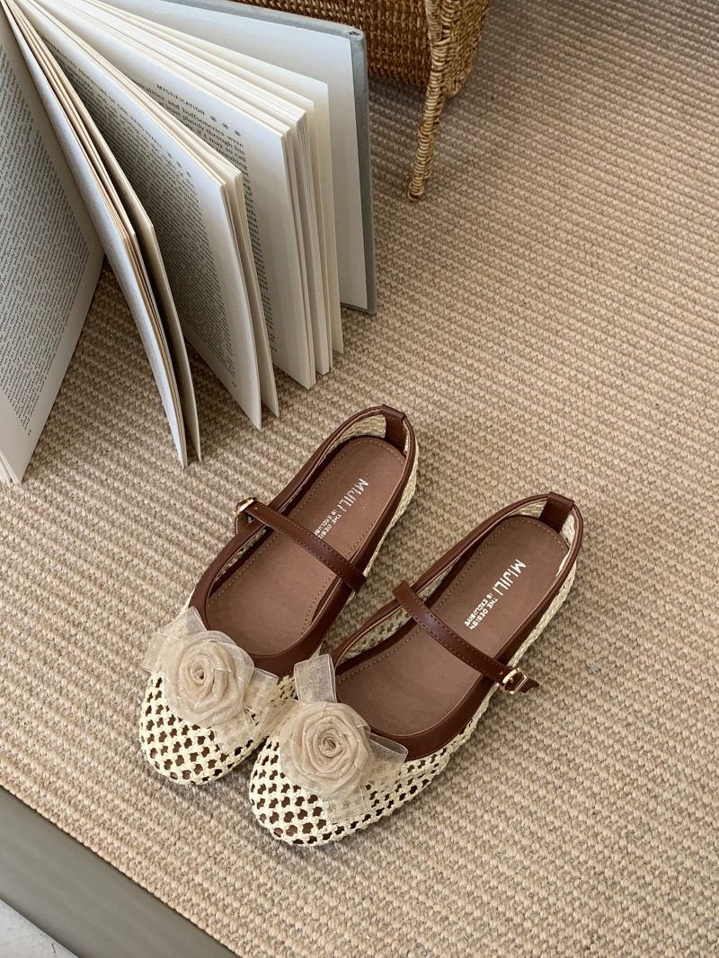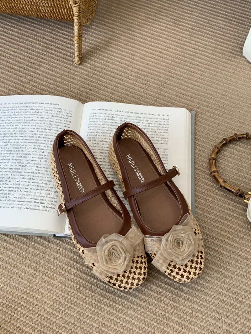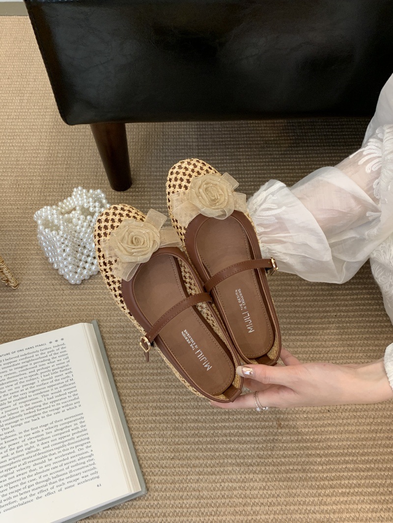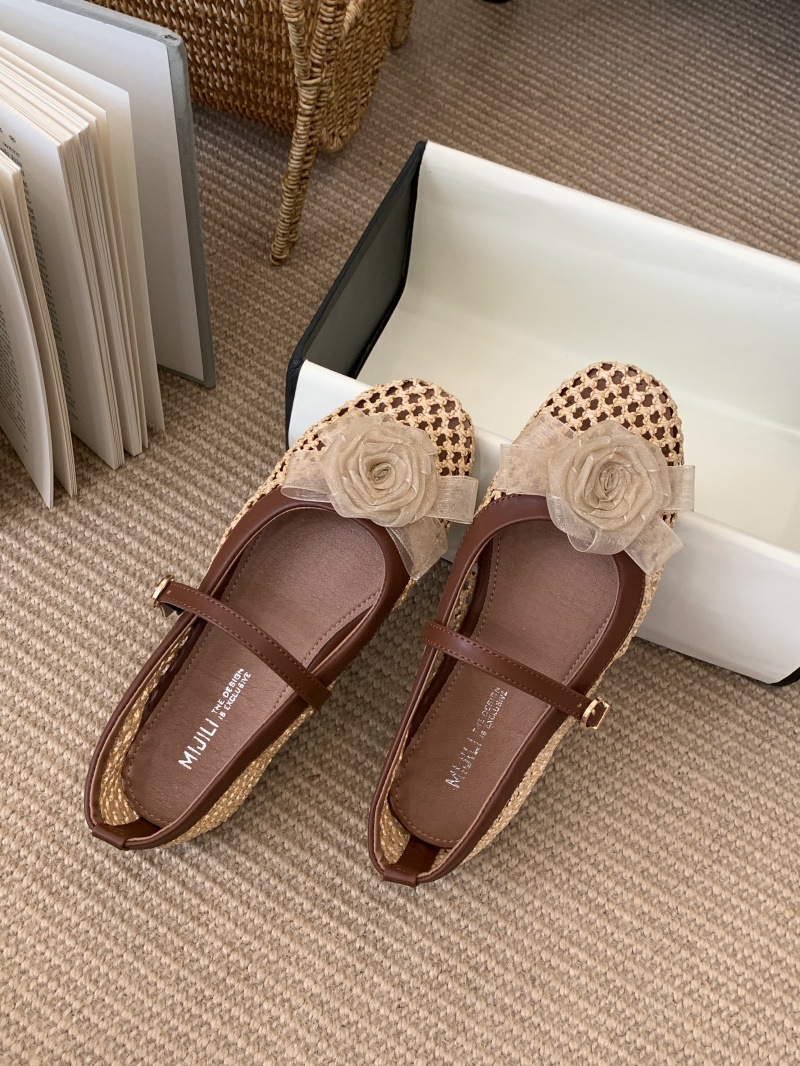 2025년 여름 신상 니치 스타일 여성용 밀짚 소프트솔 슈즈, 원라인 버클 스트랩, 메리제인 슈즈, 플랫슈즈, 다용도스토어 가기