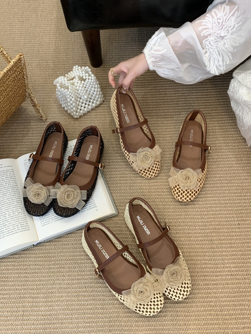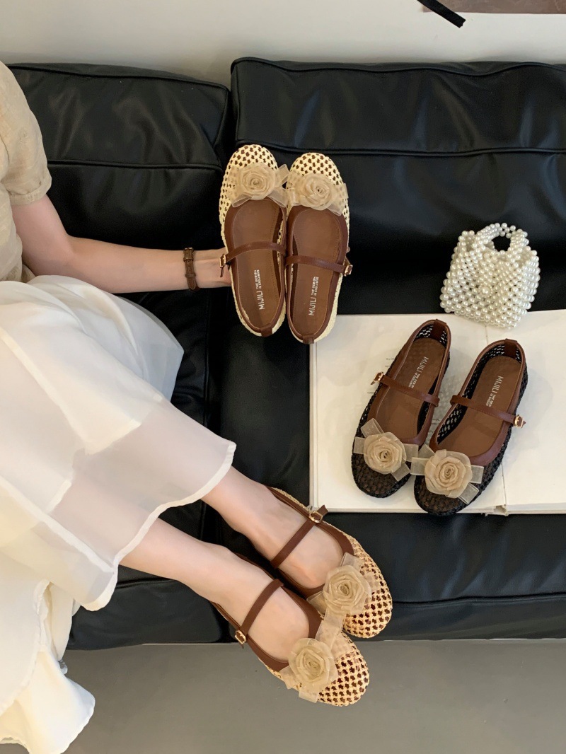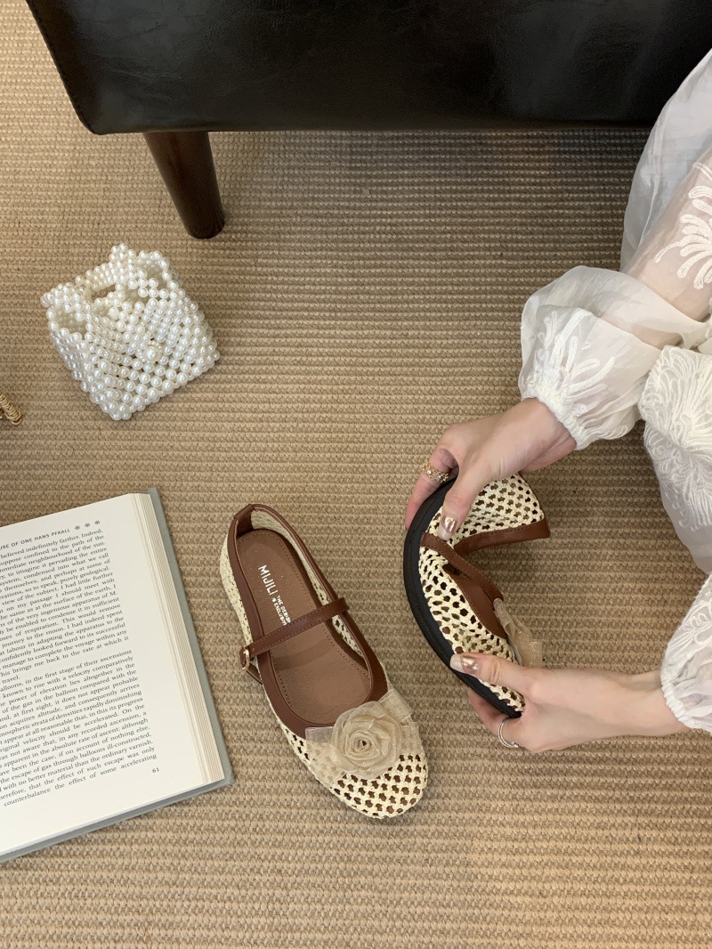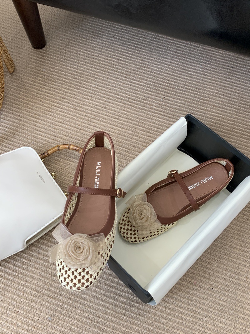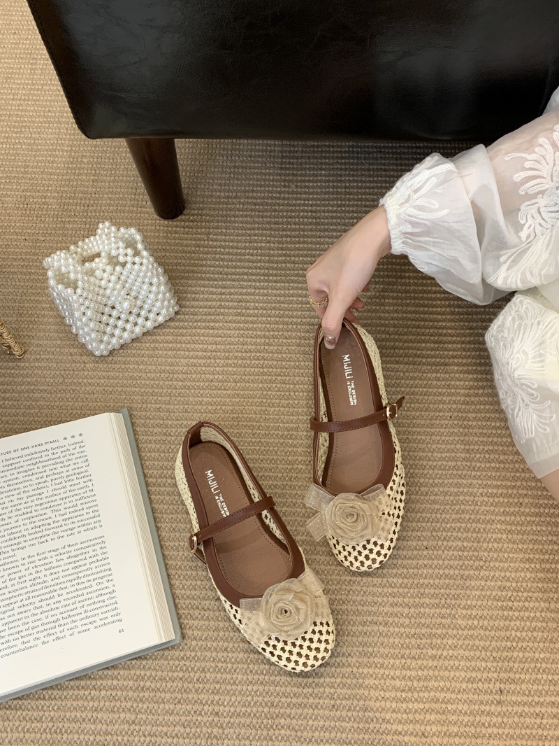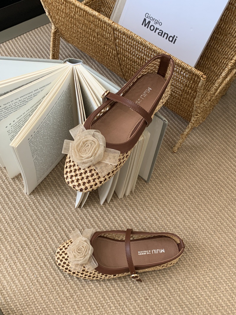 2025년 여름 신상 니치 스타일 여성용 밀짚 소프트솔 슈즈, 원라인 버클 스트랩, 메리제인 슈즈, 플랫슈즈, 다용도스토어 가기