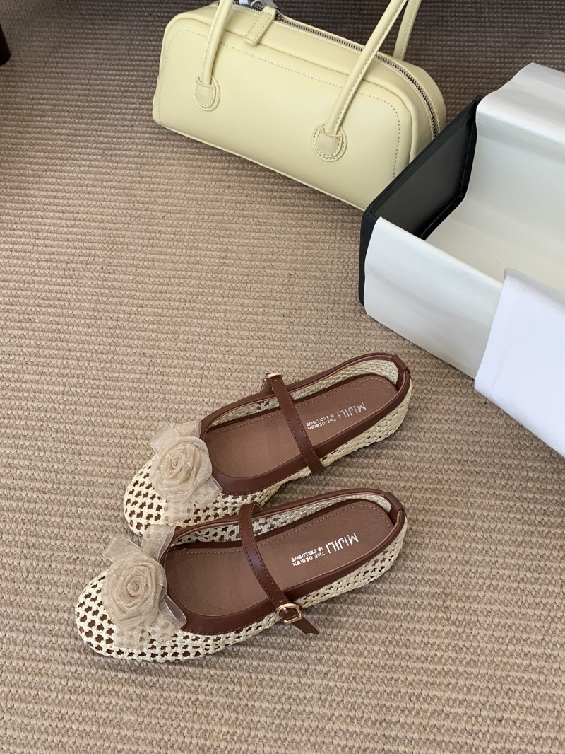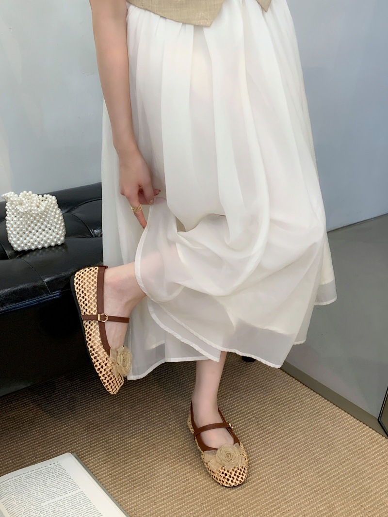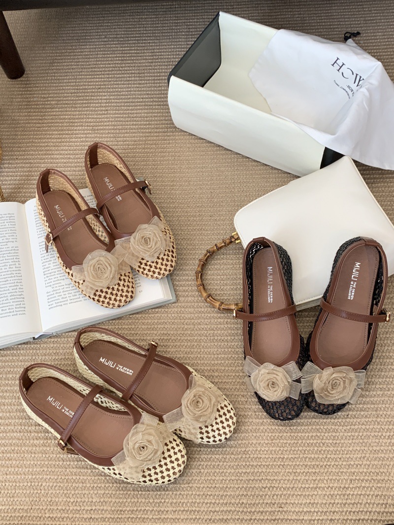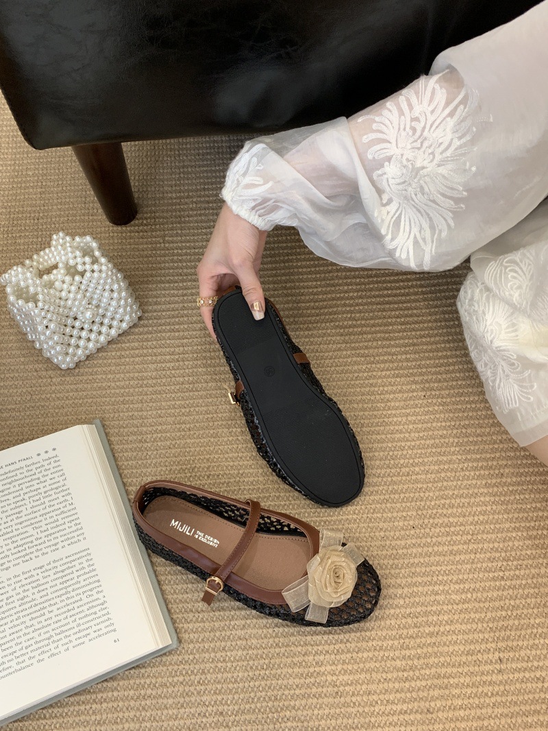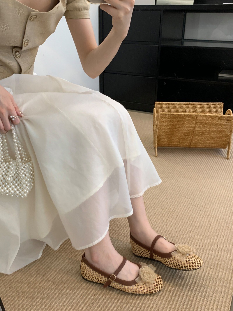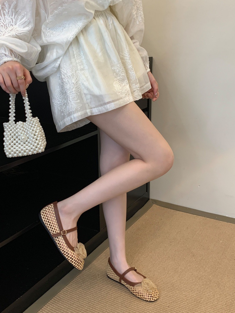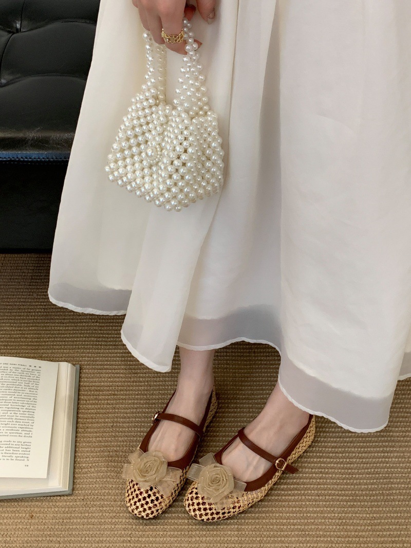 2025년 여름 신상 니치 스타일 여성용 밀짚 소프트솔 슈즈, 원라인 버클 스트랩, 메리제인 슈즈, 플랫슈즈, 다용도스토어 가기